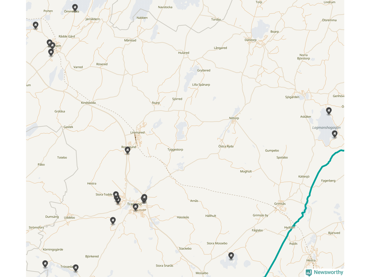 57Tranemo Gudarp 3:5Molanders Väg 12 miljoner7 243 m²Visa