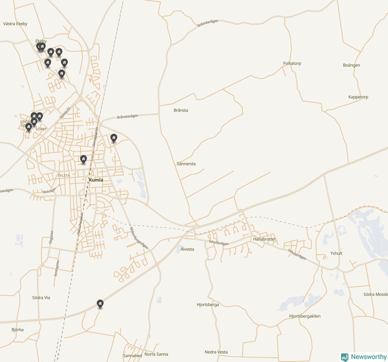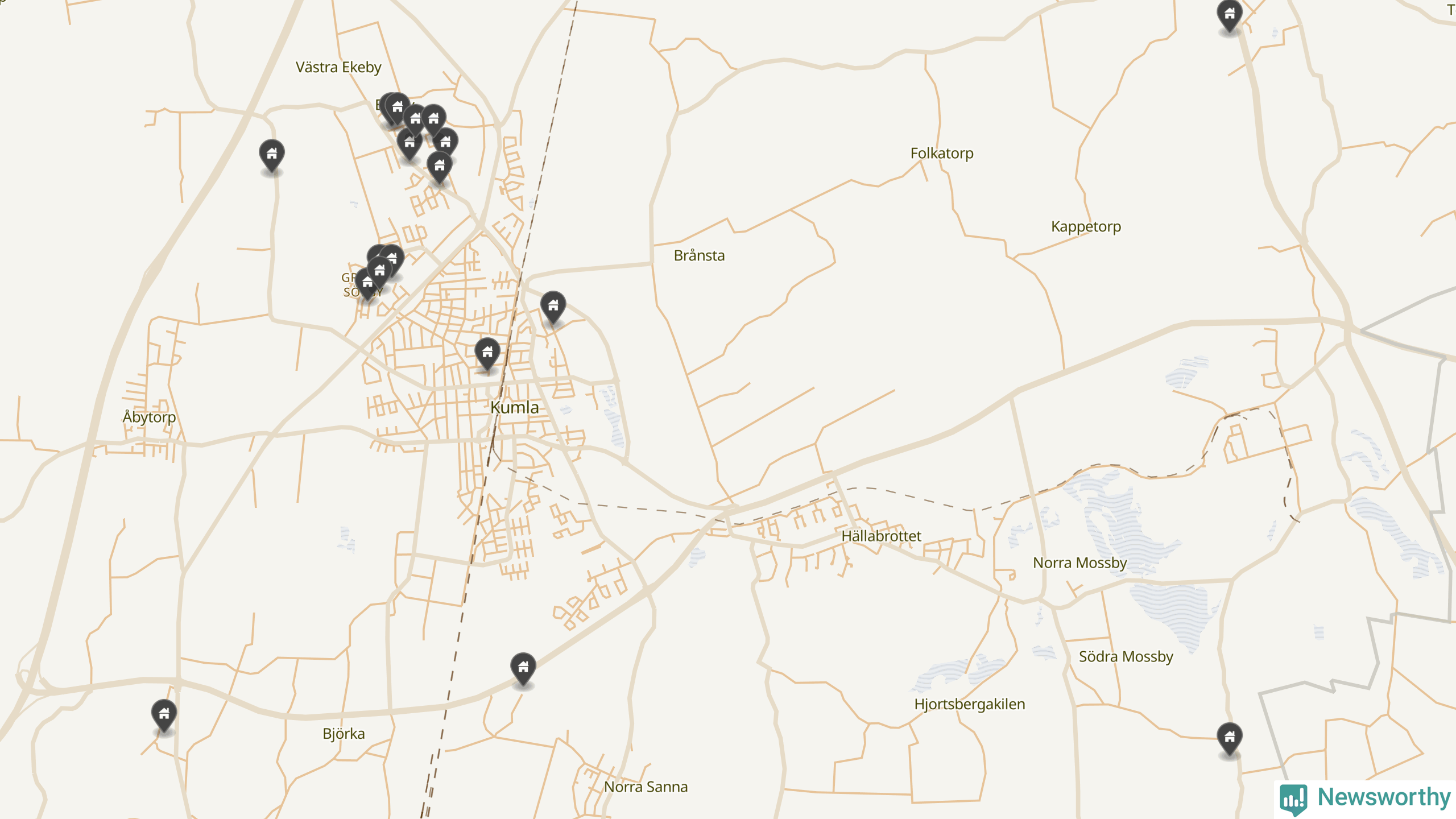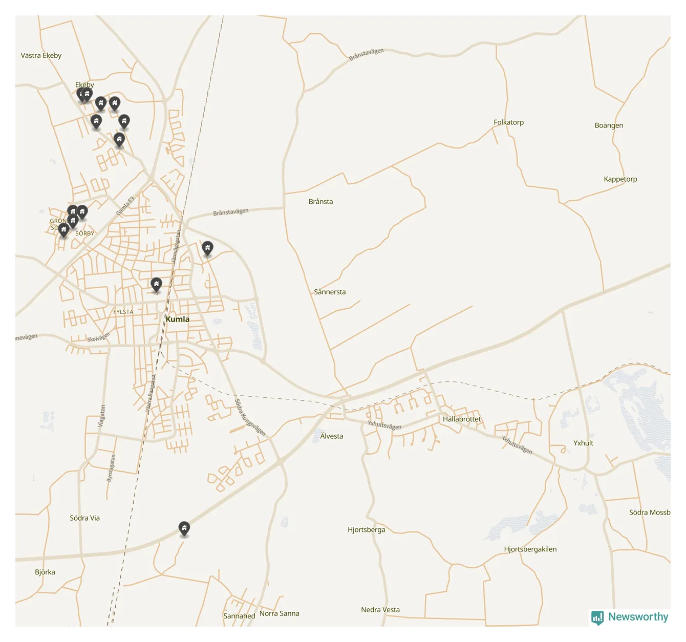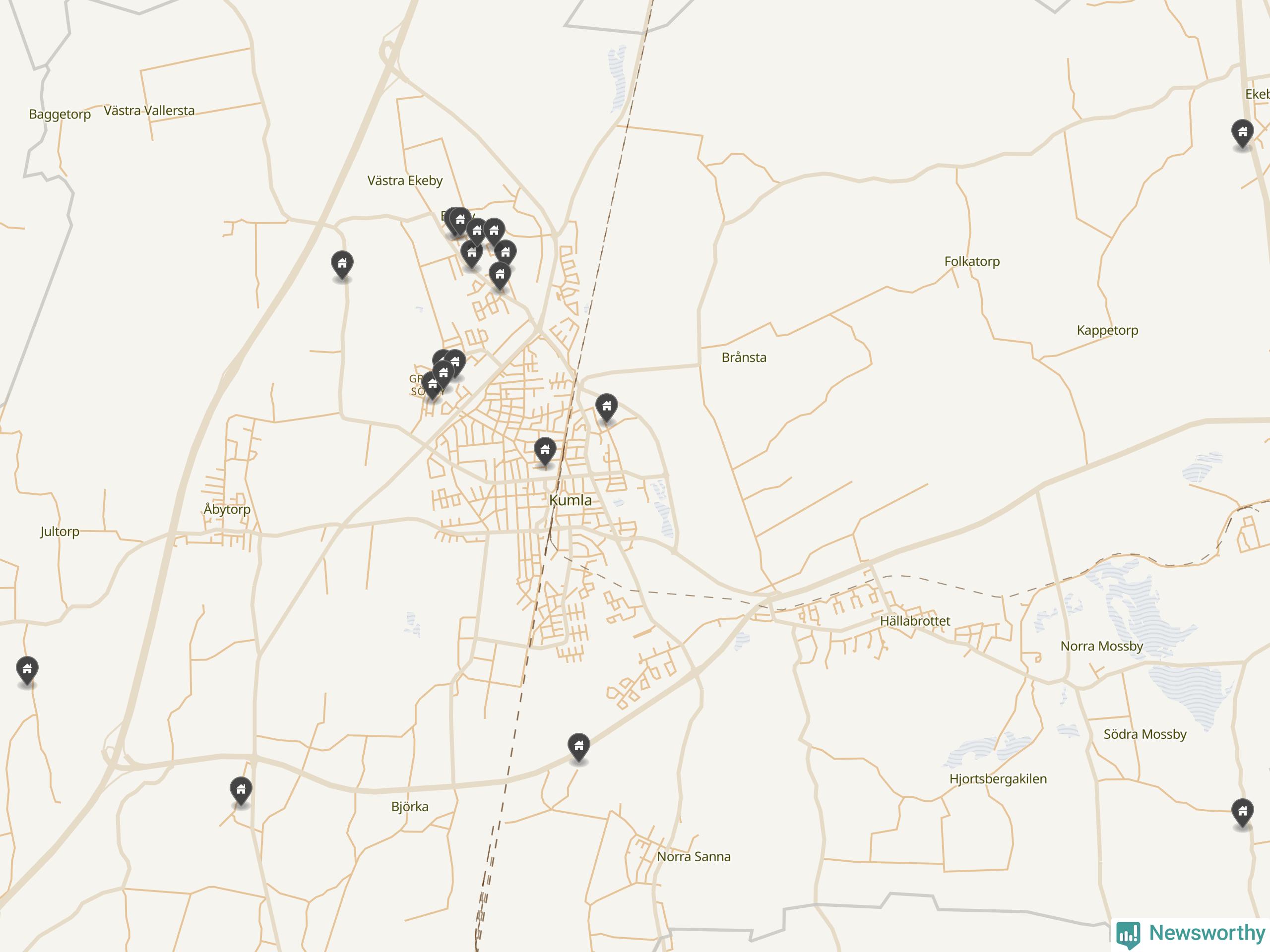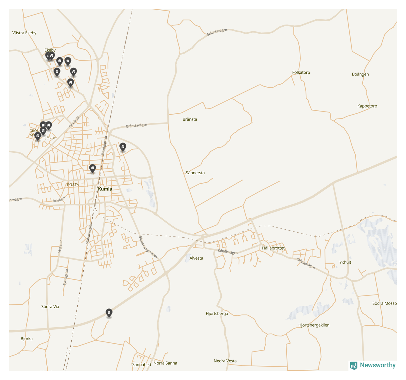 13 | Kumla Äpplet 15 | Knekt Eklöfs Gata 1 | 5,8 miljoner | 1 353 m² | Visa |