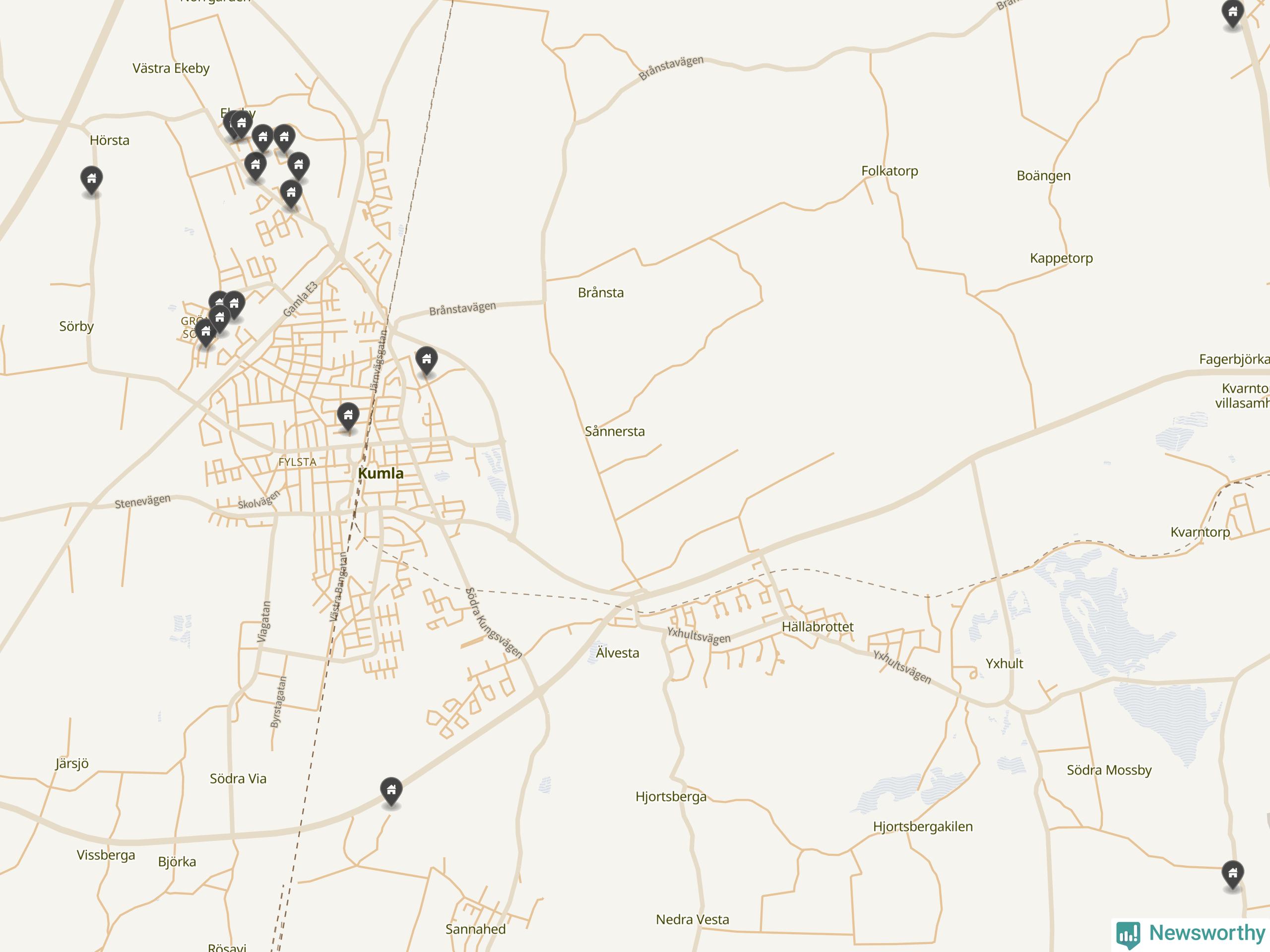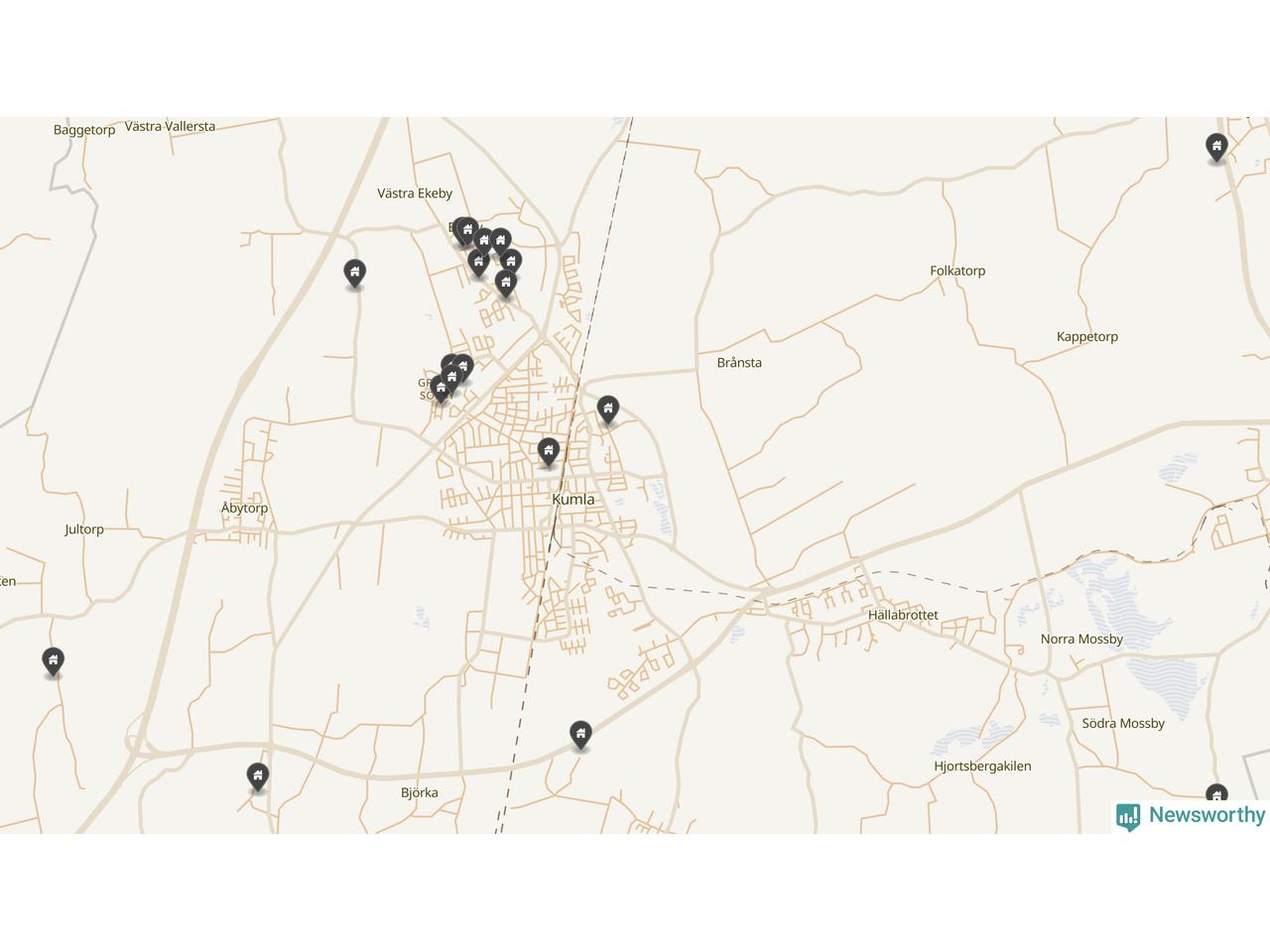 De 100 högst taxerade småhusfastigheterna i Kumla har ett snittvärde på 5,2 miljoner kronor, vilket är något lägre än snittet för alla kommuners 100 högst taxerade småhus. Det visar Newsworthys genomgång av kommunernas högst taxerade småhusfastigheter, som sammanställts med hjälp av data från The intelligence company.