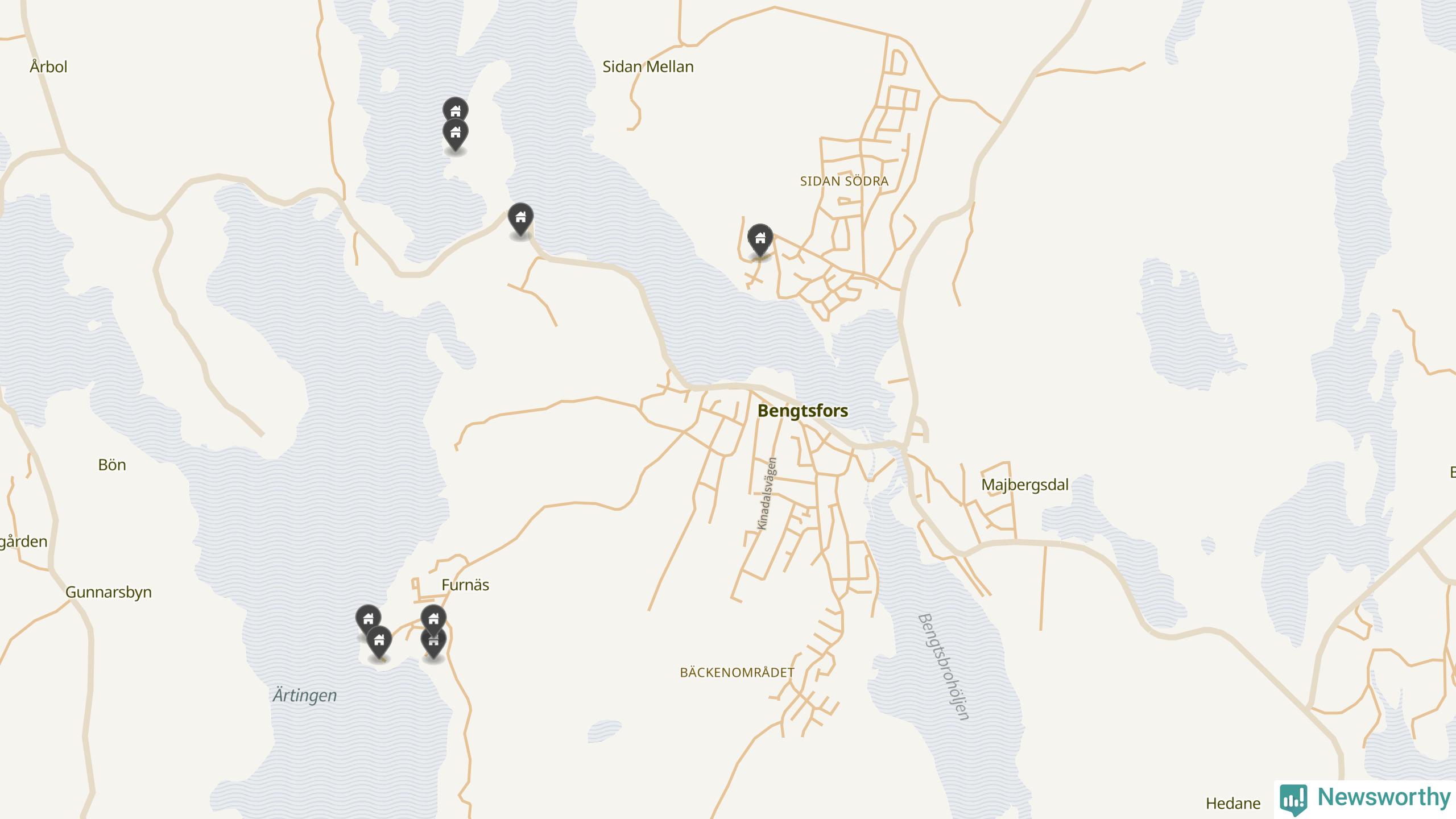 De 100 högst taxerade småhusfastigheterna i Bengtsfors har ett snittvärde på 2,2 miljoner kronor, vilket är omkring fyra miljoner lägre än snittet för alla kommuners 100 högst taxerade småhus. Det visar Newsworthys genomgång av kommunernas högst taxerade småhusfastigheter, som sammanställts med hjälp av data från The intelligence company.