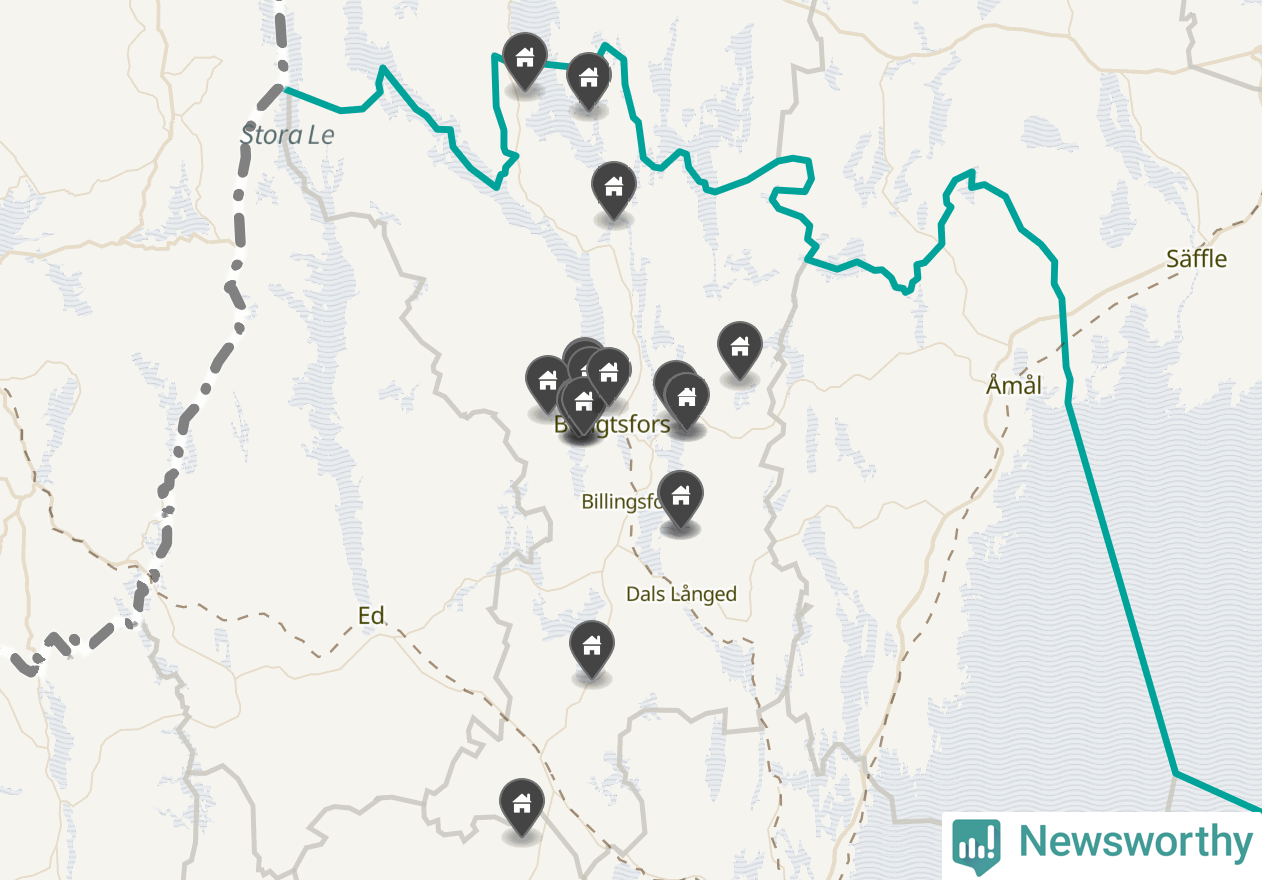 22 | Bengtsfors Kråkviken 1:74 | Skifors 33 | 2,5 miljoner | 2 922 m² | Visa |
