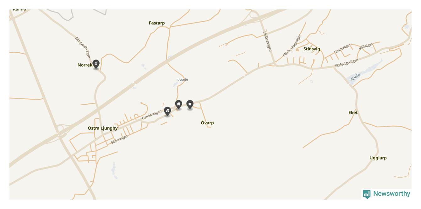 | 82 | Klippan Östra Ljungby 9:3 | Byvägen 7 | 2,9 miljoner | 1 511 m² | Visa |