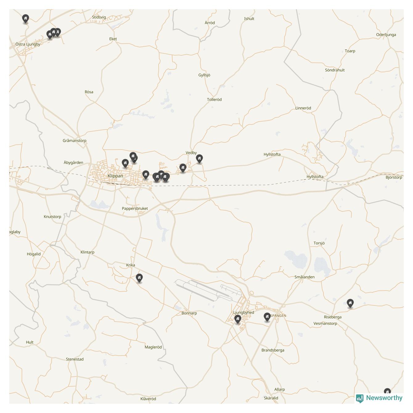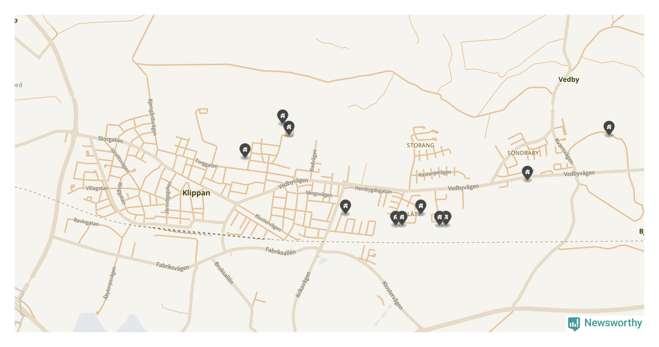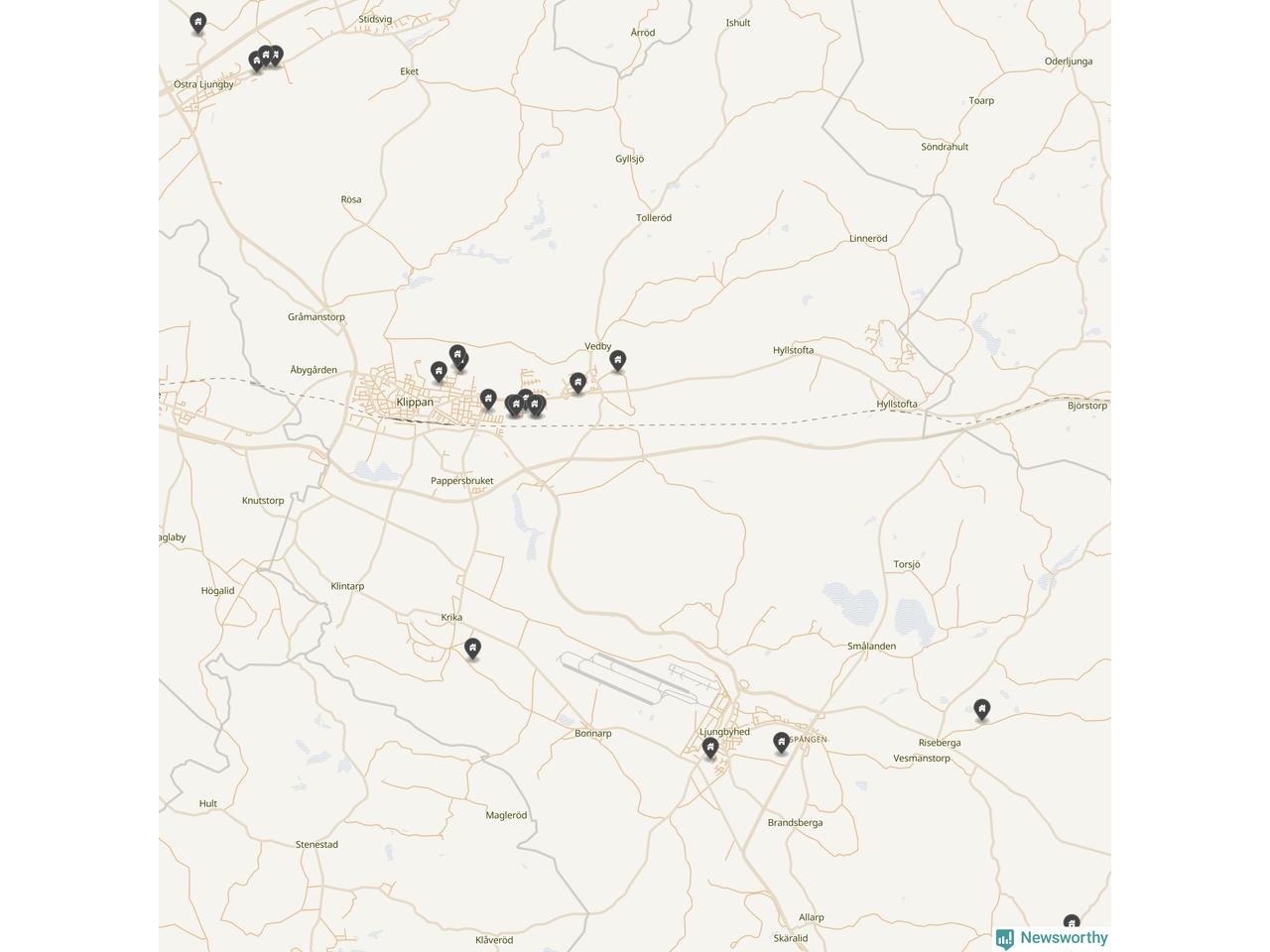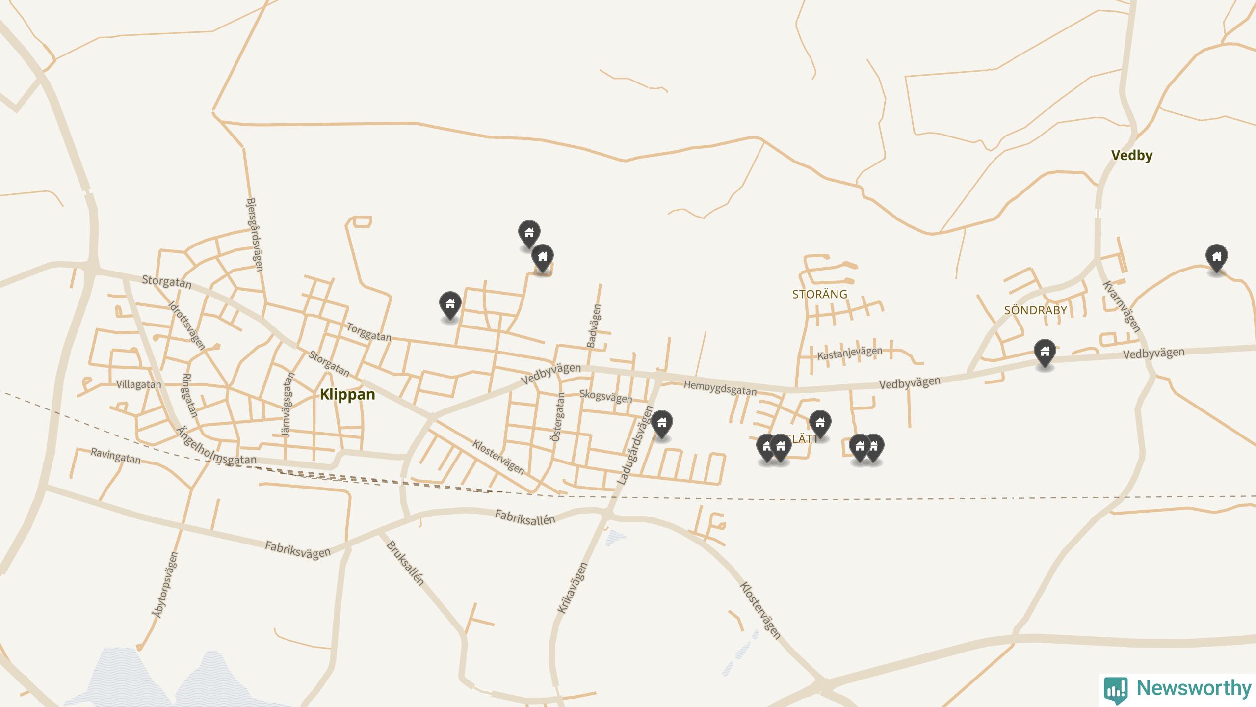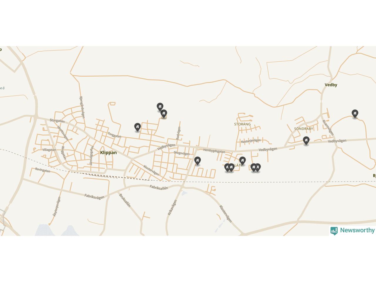 | 96 | Klippan Klippan 3:339 | Lövgatan 6 | 2,7 miljoner | 1 330 m² | Visa |