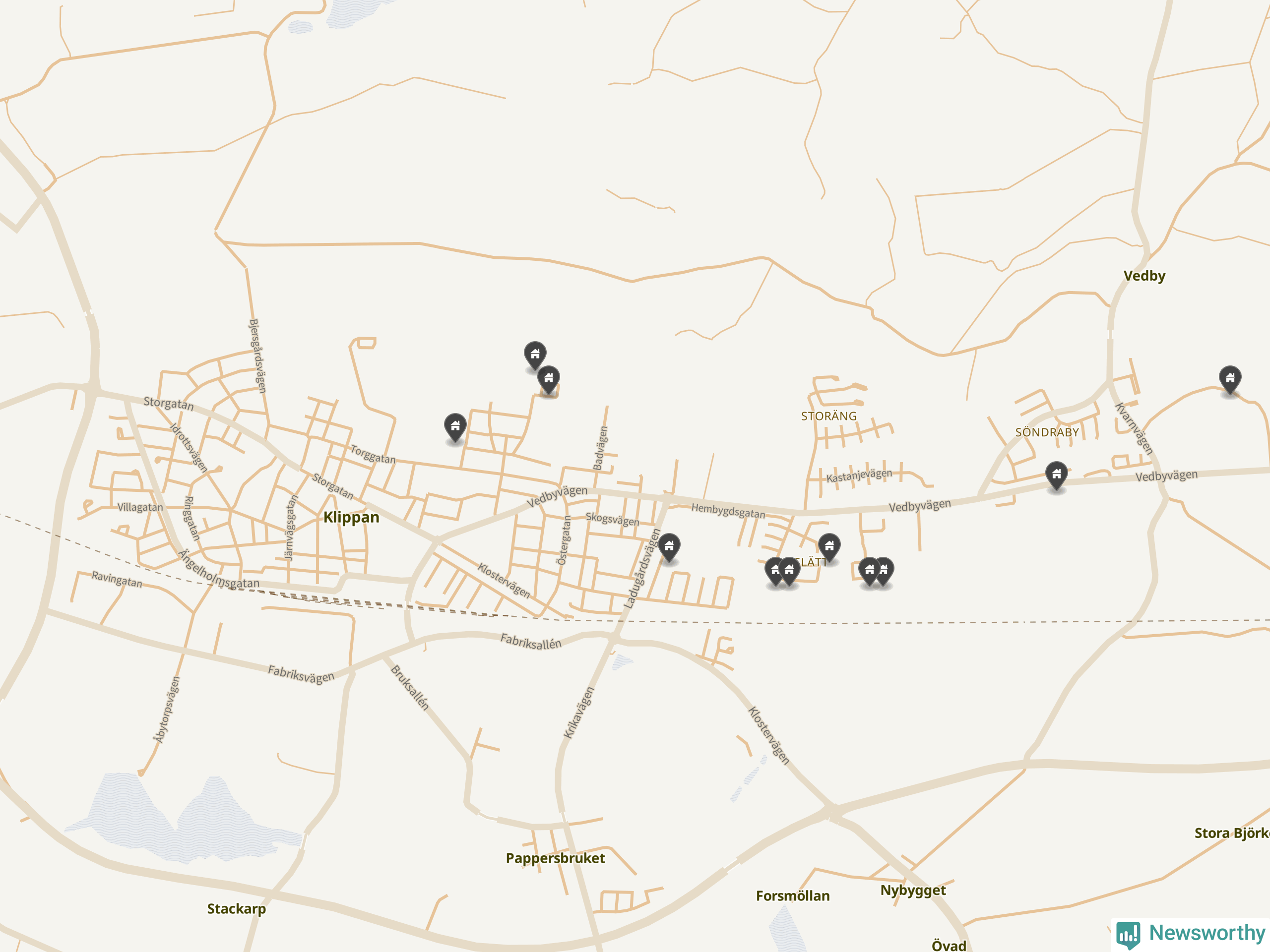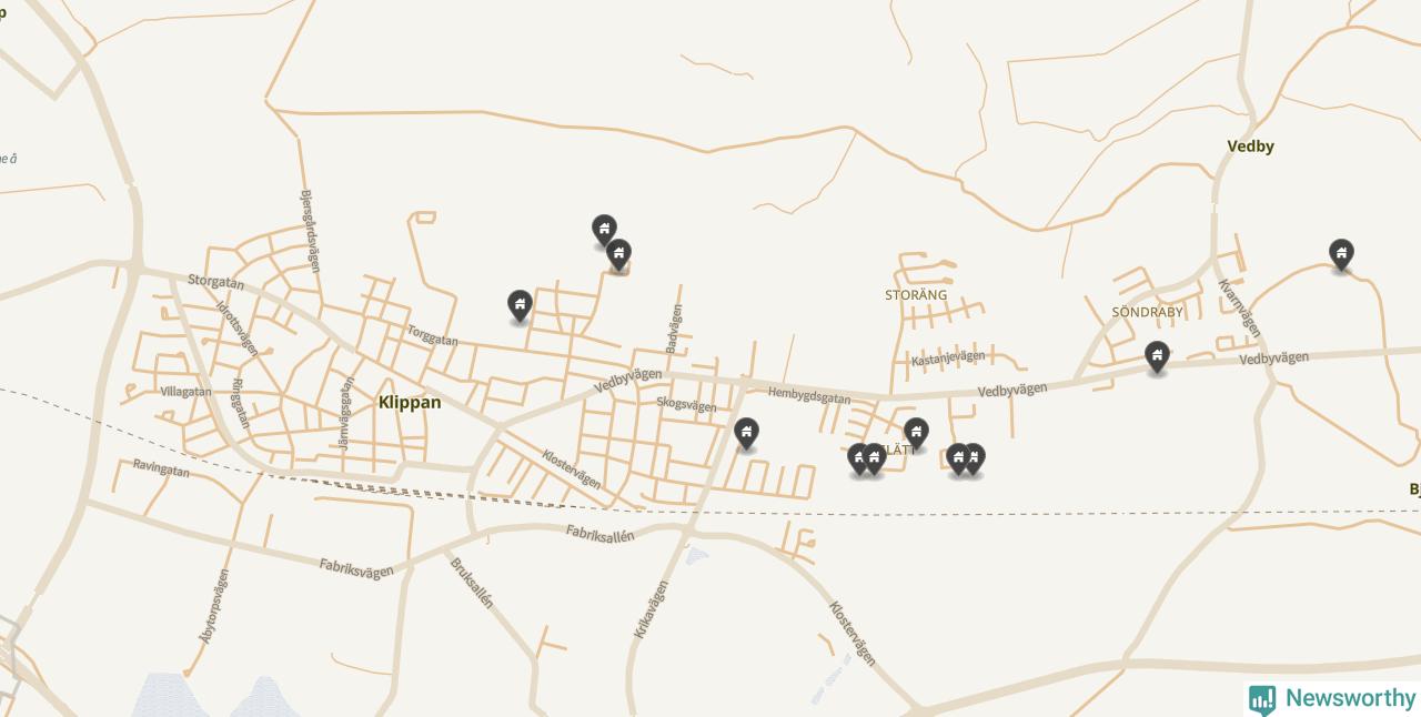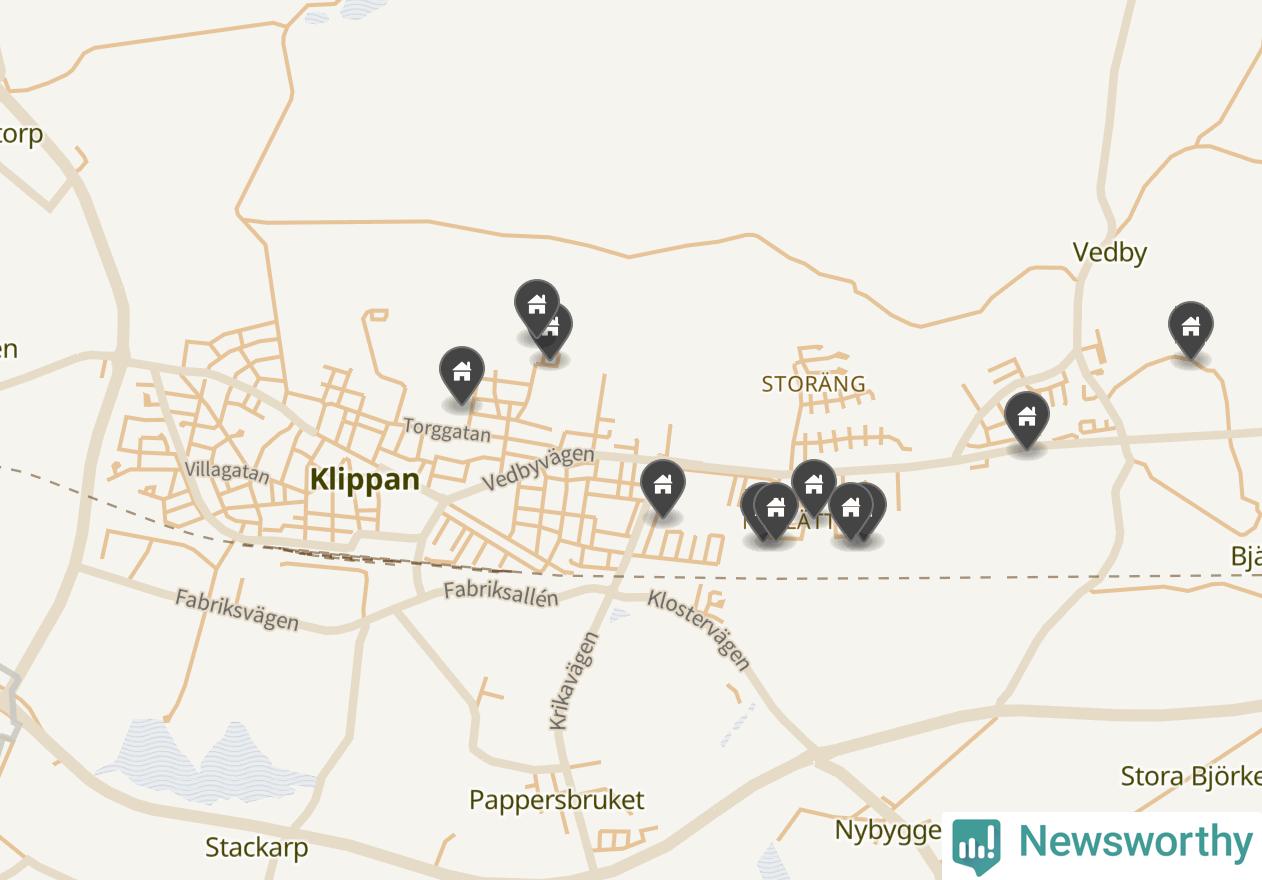 | 55 | Klippan Nyslätt 11 | Bladgatan 23 | 3 miljoner | 920 m² | Visa |