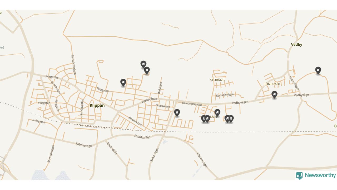 | 28 | Klippan Sjöborg 1:26 | Vedbyvägen 68a m.fl. | 3,3 miljoner | 5 889 m² | Visa |