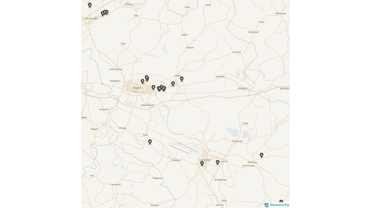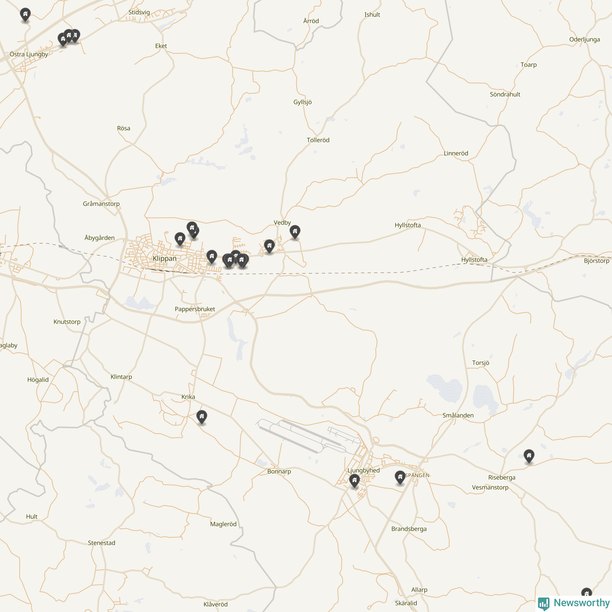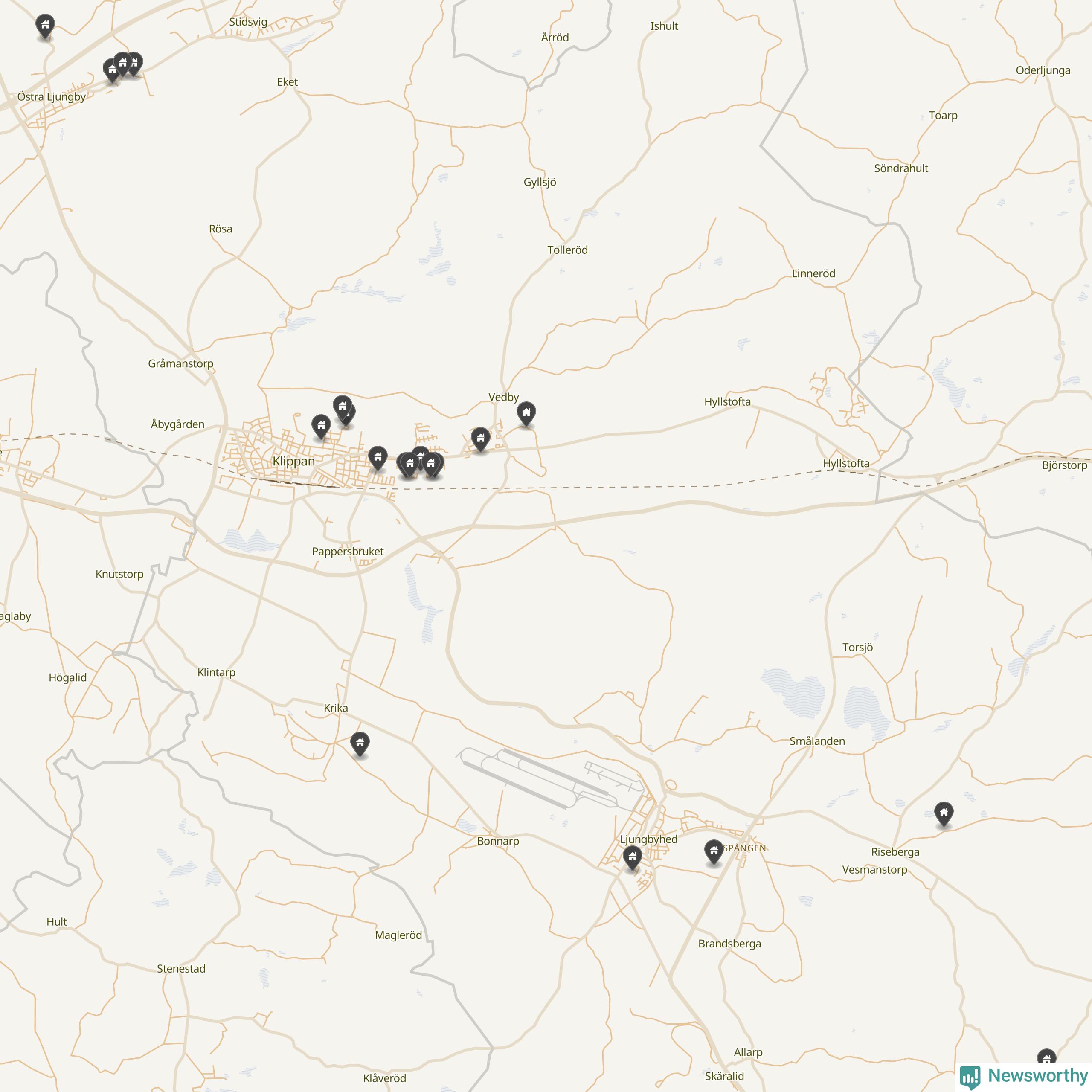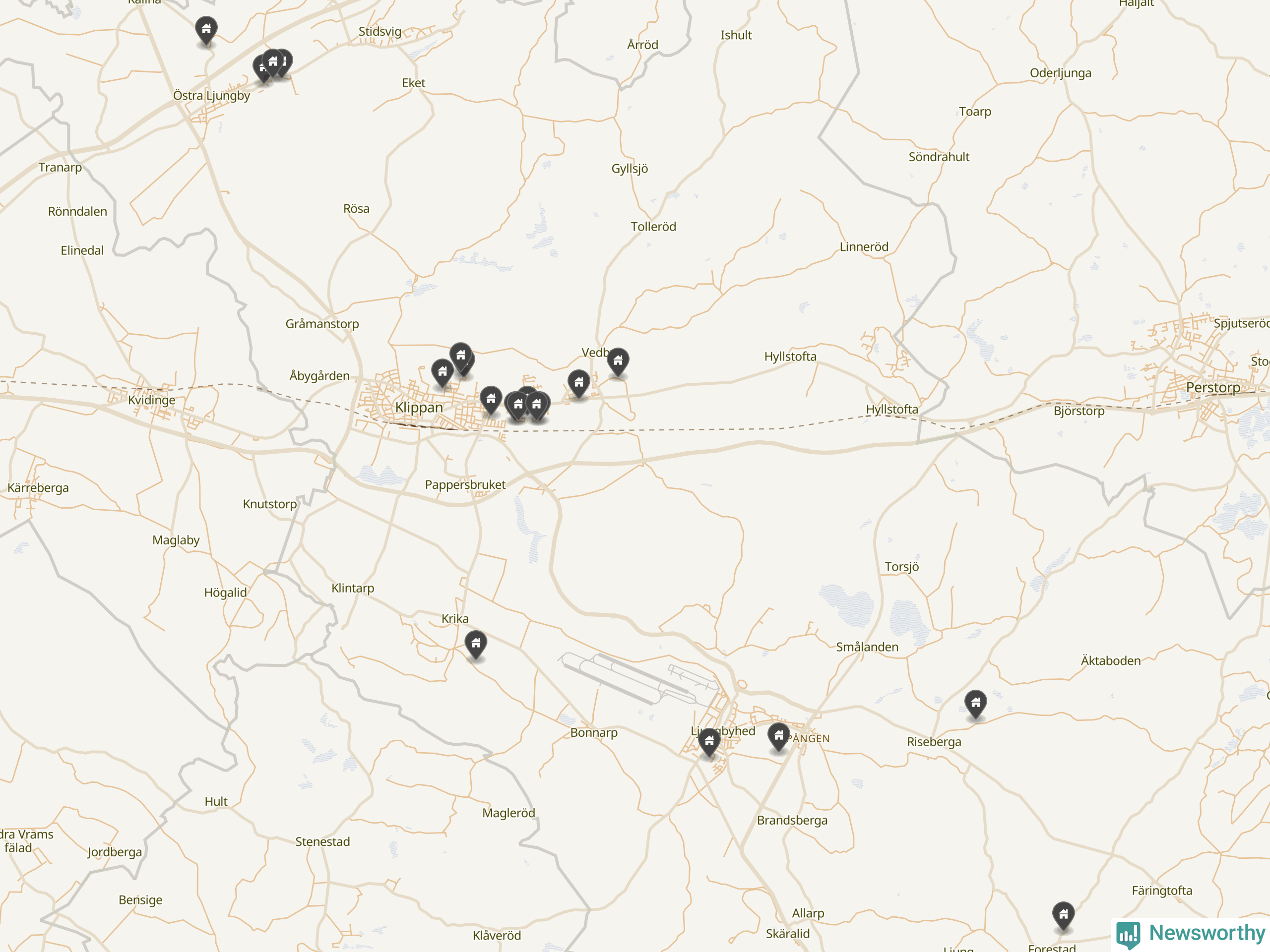 | 53 | Klippan Klippan 3:373 | Åhällans Väg 17 | 3 miljoner | 1 460 m² | Visa |