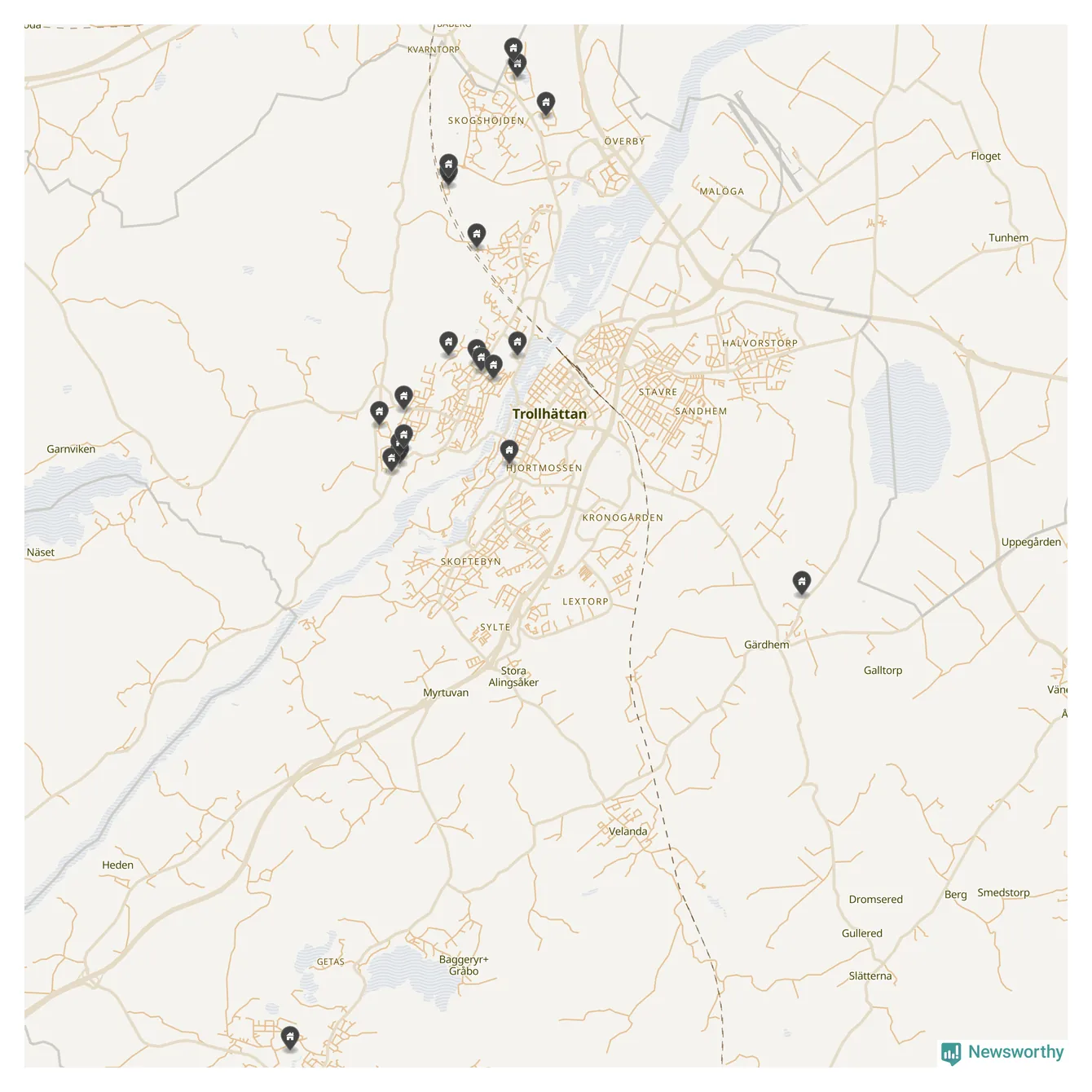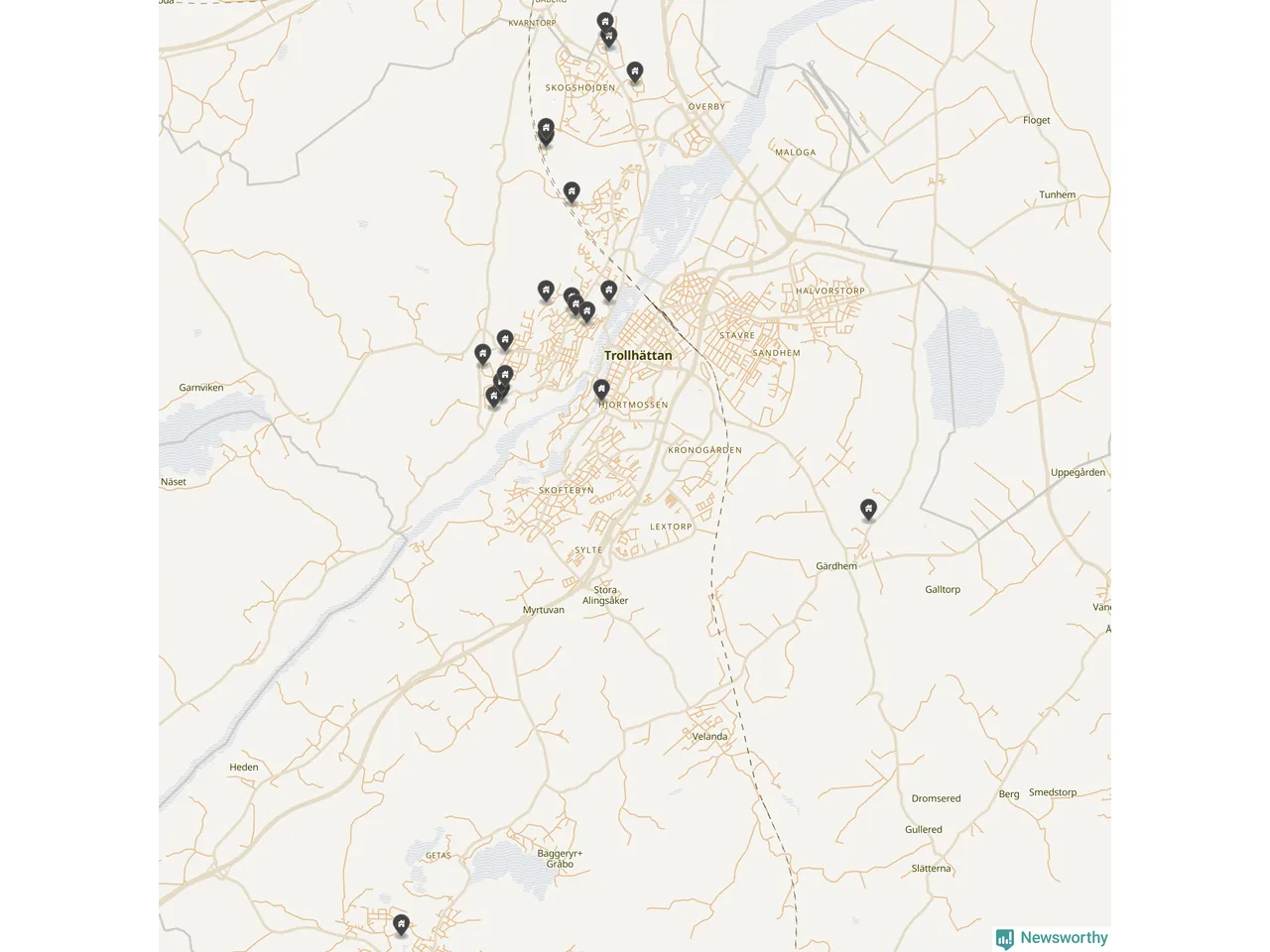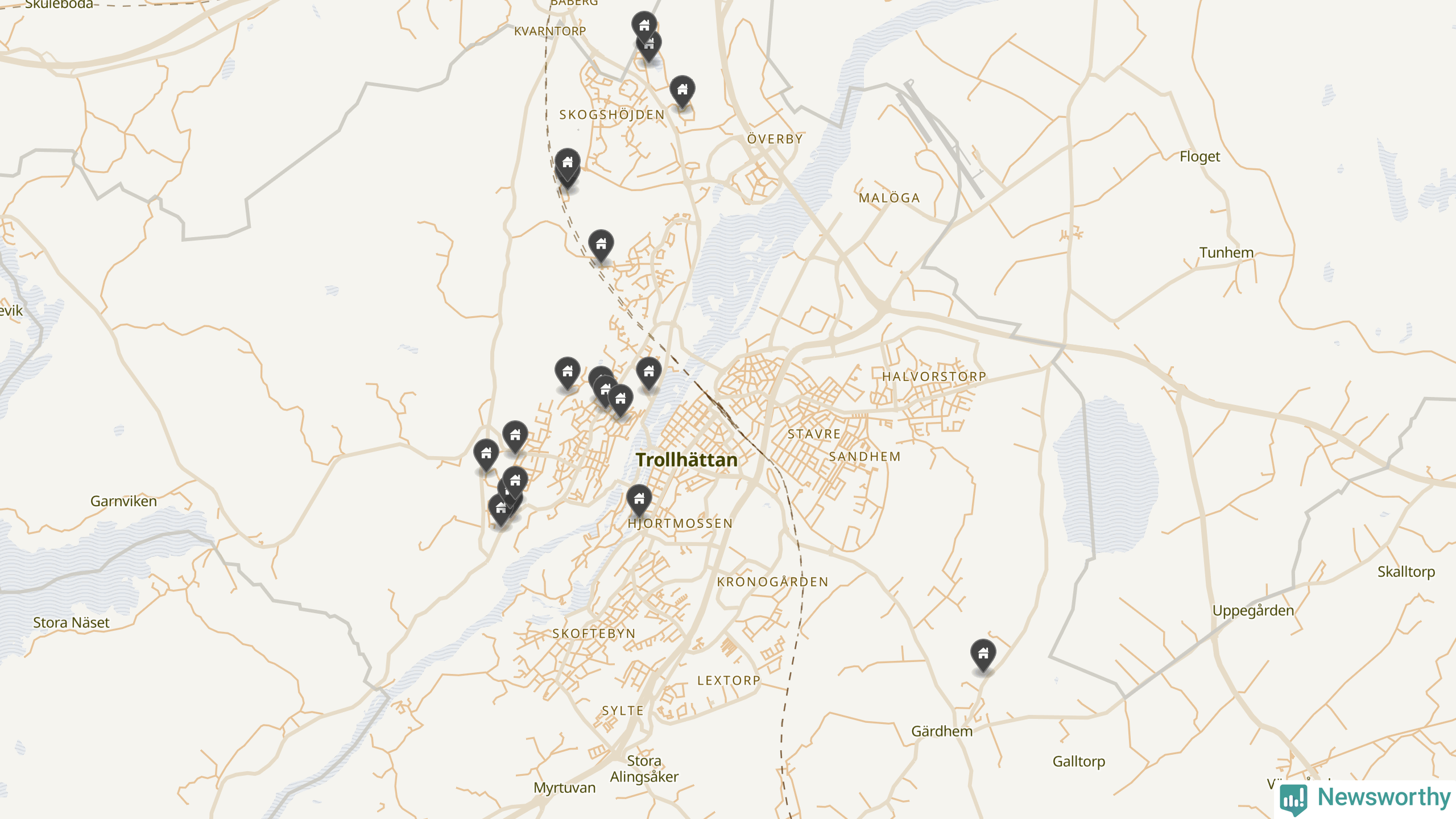 De 100 högst taxerade småhusfastigheterna i Trollhättan har ett snittvärde på 5,2 miljoner kronor, vilket är något lägre än snittet för alla kommuners 100 högst taxerade småhus. Det visar Newsworthys genomgång av kommunernas högst taxerade småhusfastigheter, som sammanställts med hjälp av data från The intelligence company.