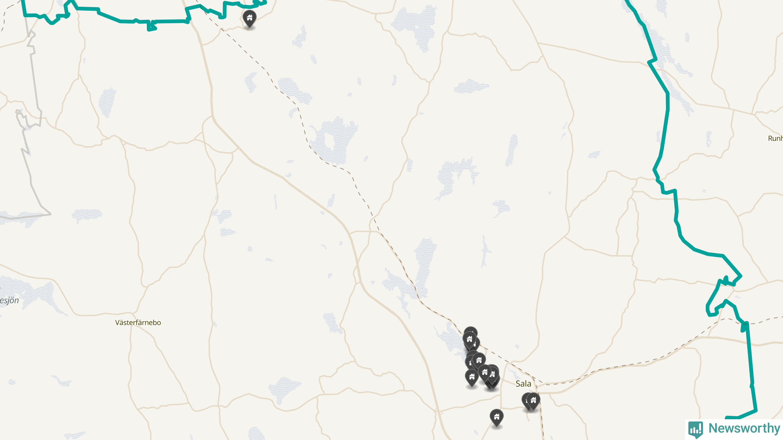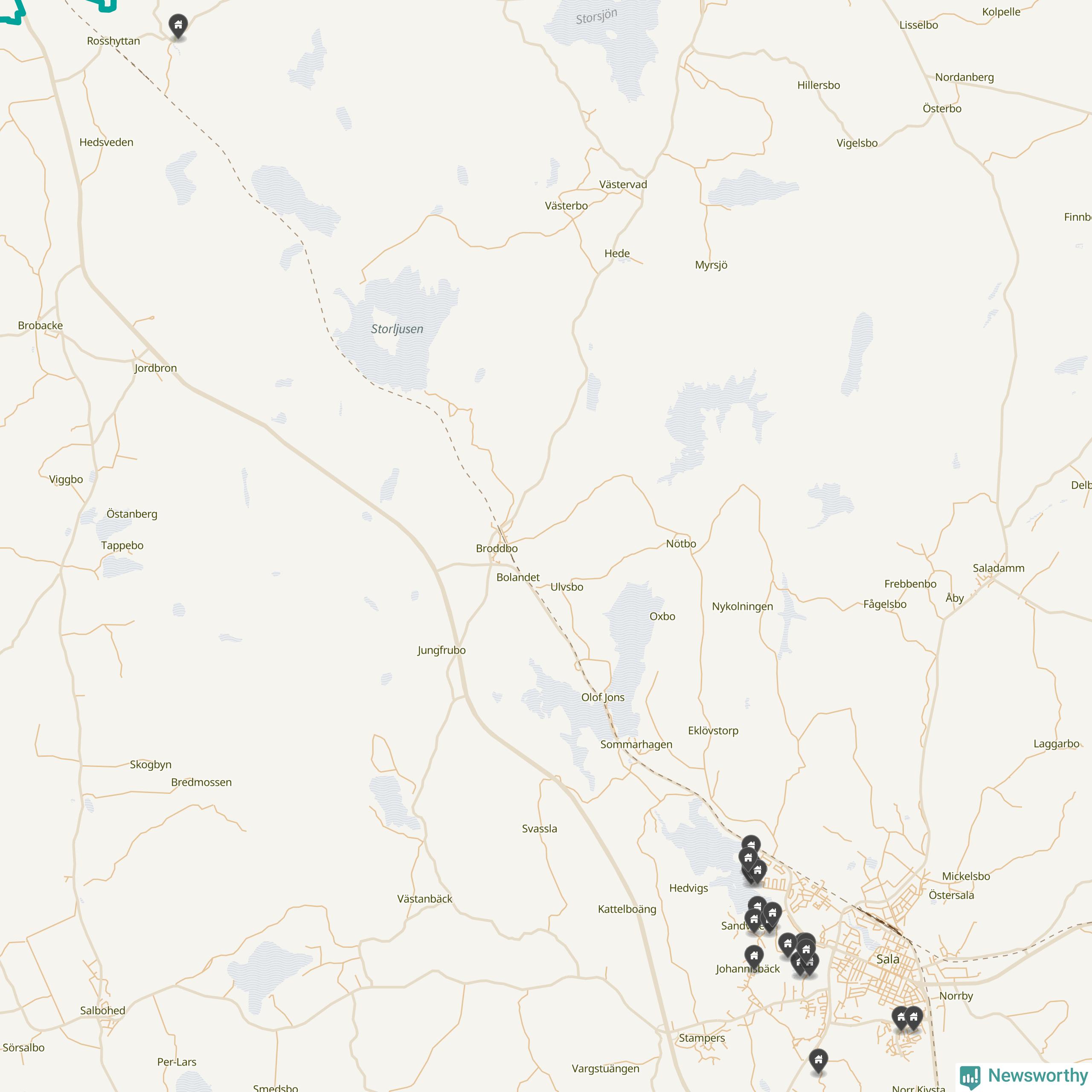 77 | Sala Silvergruvan 1:908 | Ingen uppgift | 4 miljoner | 1 496 m² | Visa |