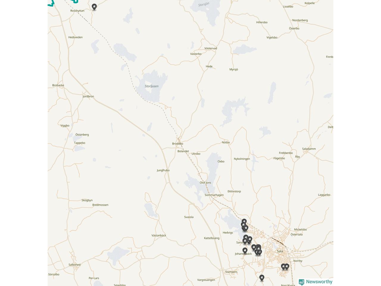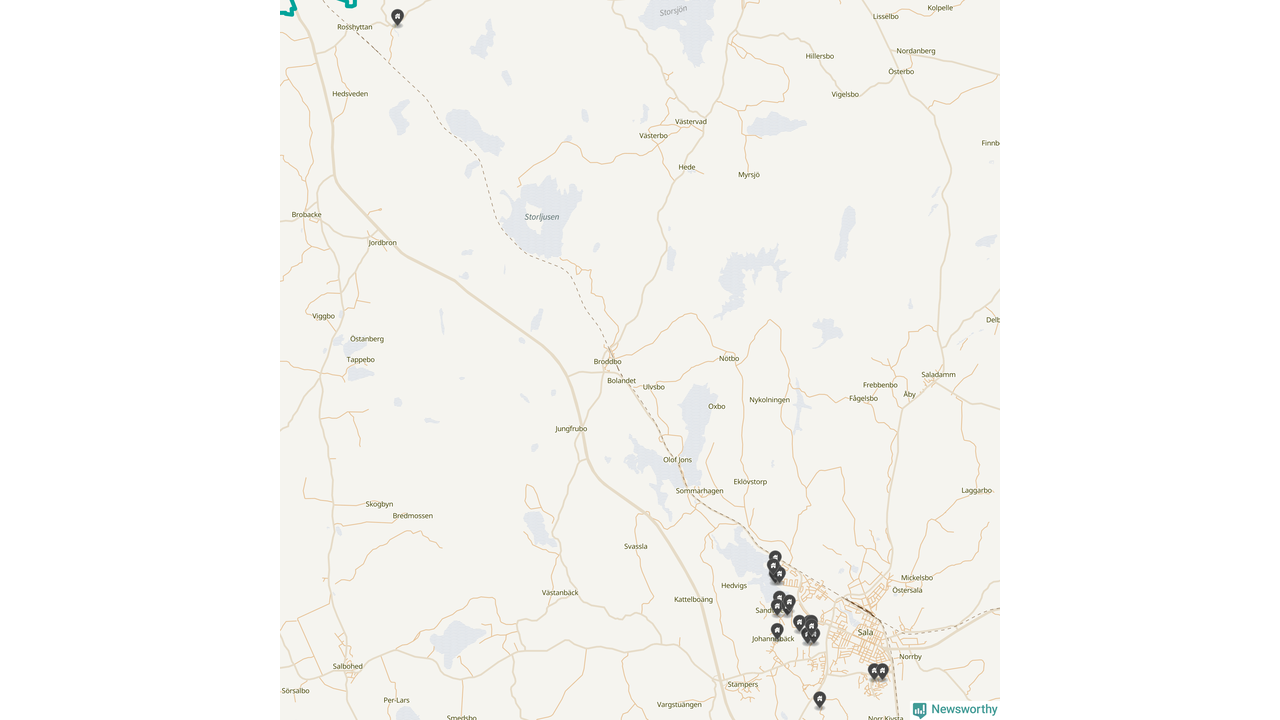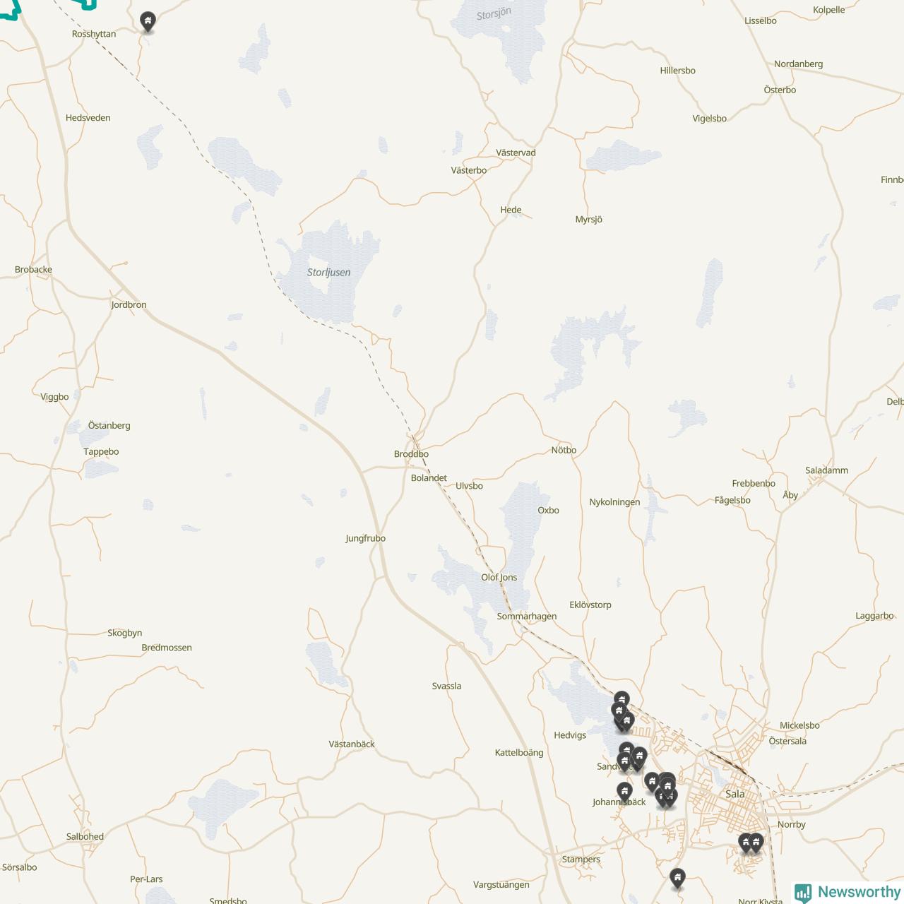 23 | Sala Silvergruvan 1:910 | Ingen uppgift | 4,8 miljoner | 1 374 m² | Visa |