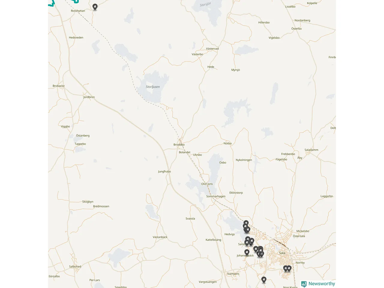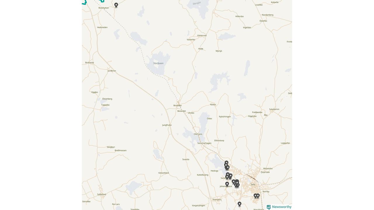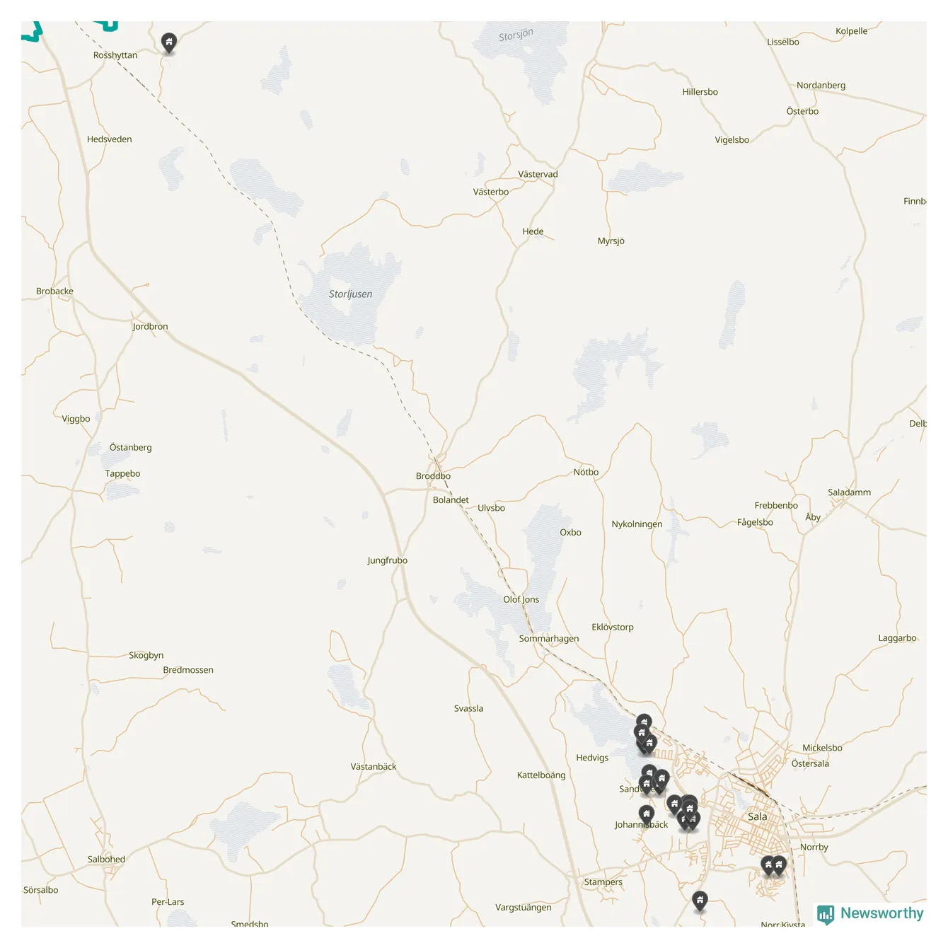 23 | Sala Silvergruvan 1:910 | Ingen uppgift | 4,8 miljoner | 1 374 m² | Visa |