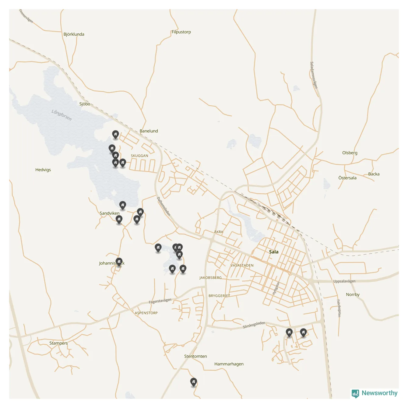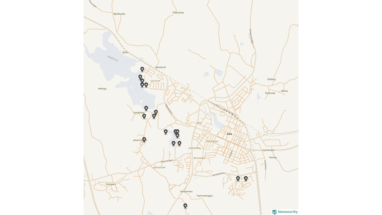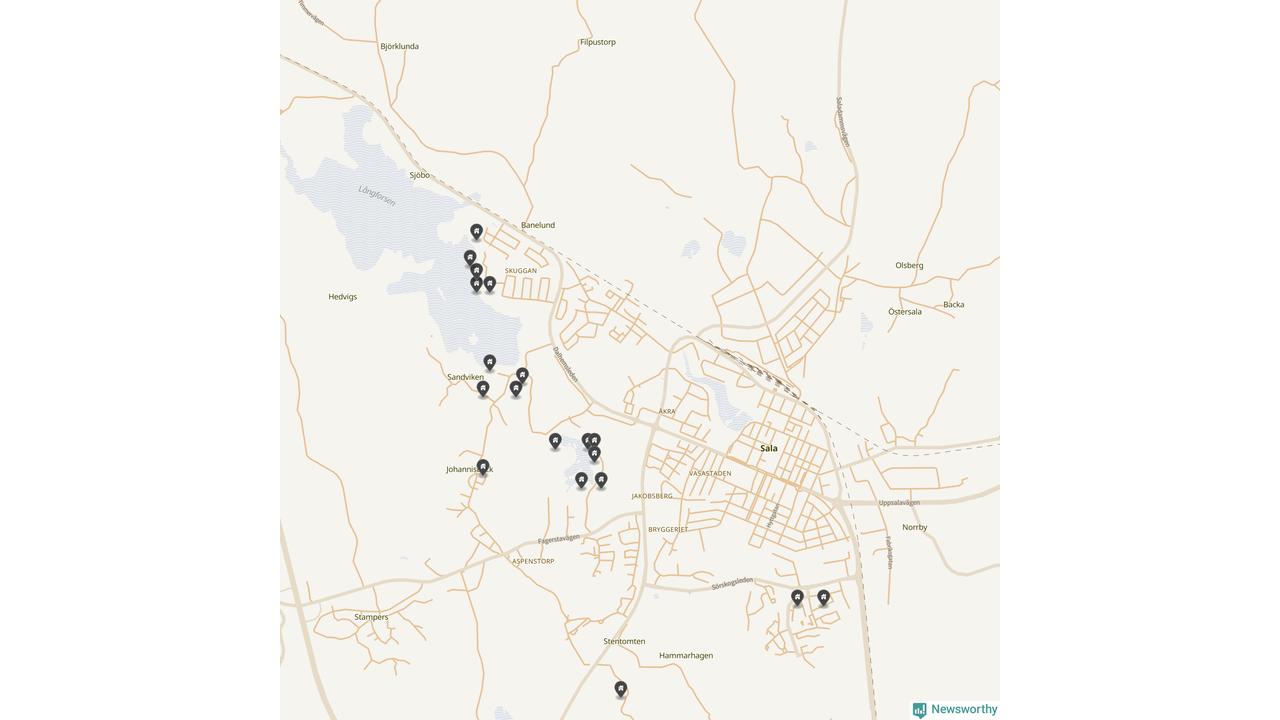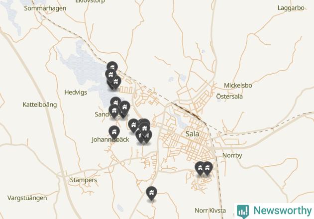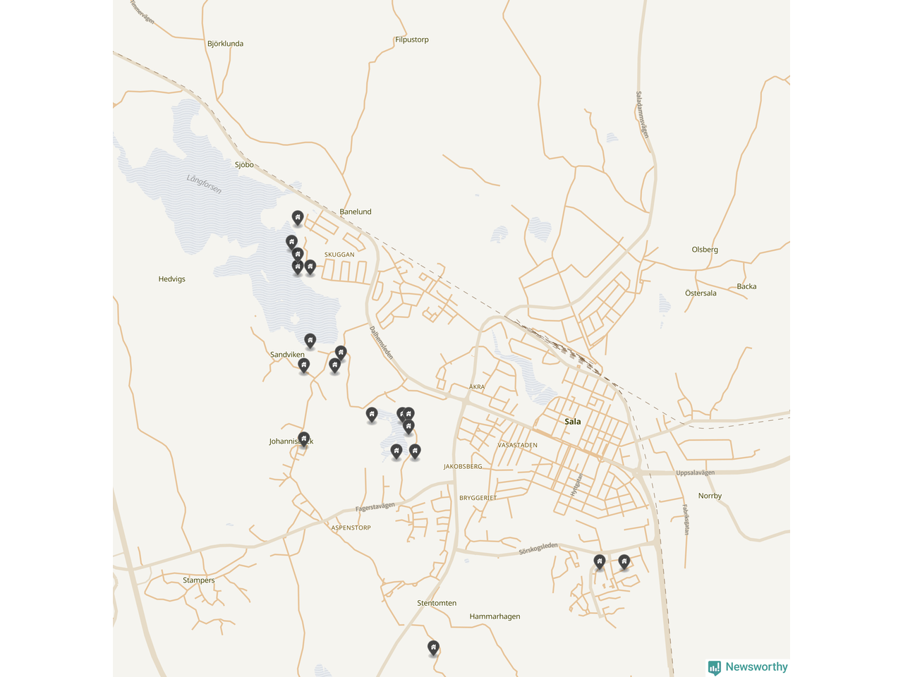 De 100 högst taxerade småhusfastigheterna i Sala har ett snittvärde på 4,6 miljoner kronor, vilket är omkring två miljoner lägre än snittet för alla kommuners 100 högst taxerade småhus. Det visar Newsworthys genomgång av kommunernas högst taxerade småhusfastigheter, som sammanställts med hjälp av data från The intelligence company.