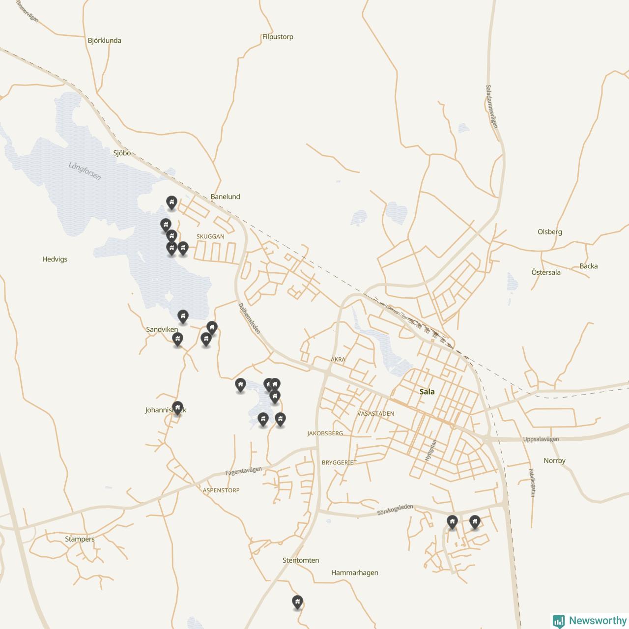 55 | Sala Silvergruvan 1:894 | Ekebyängsvägen 33b | 4,3 miljoner | 2 061 m² | Visa |
