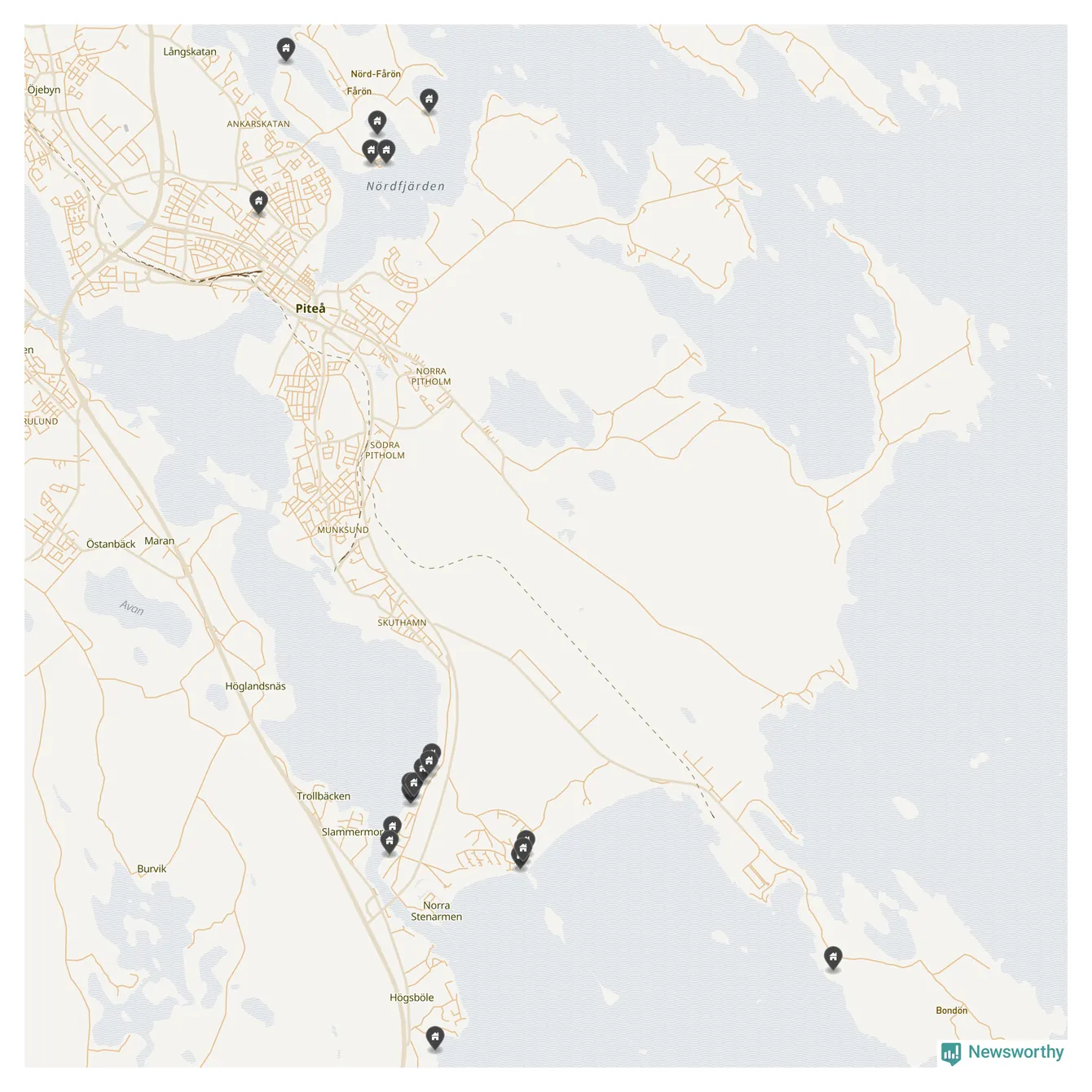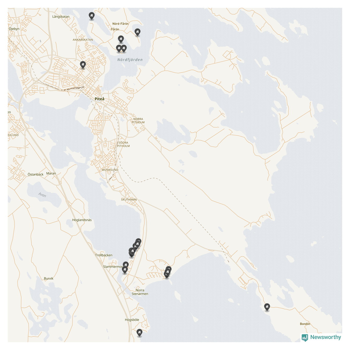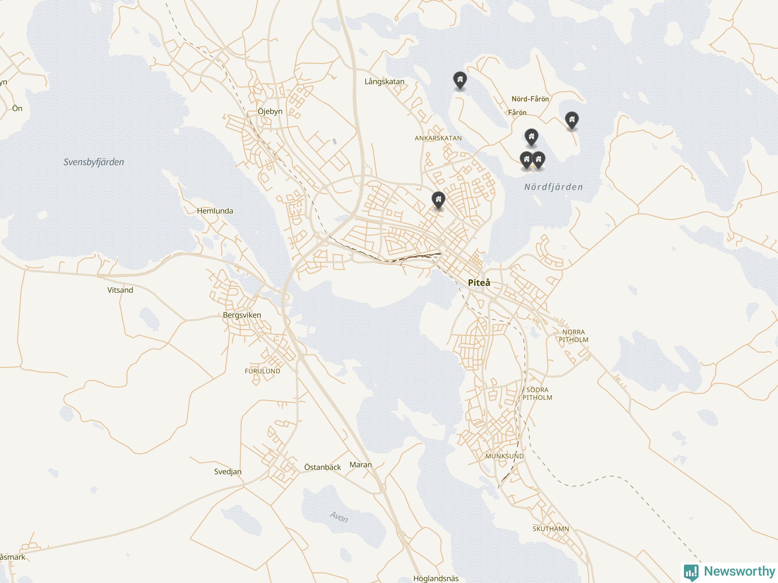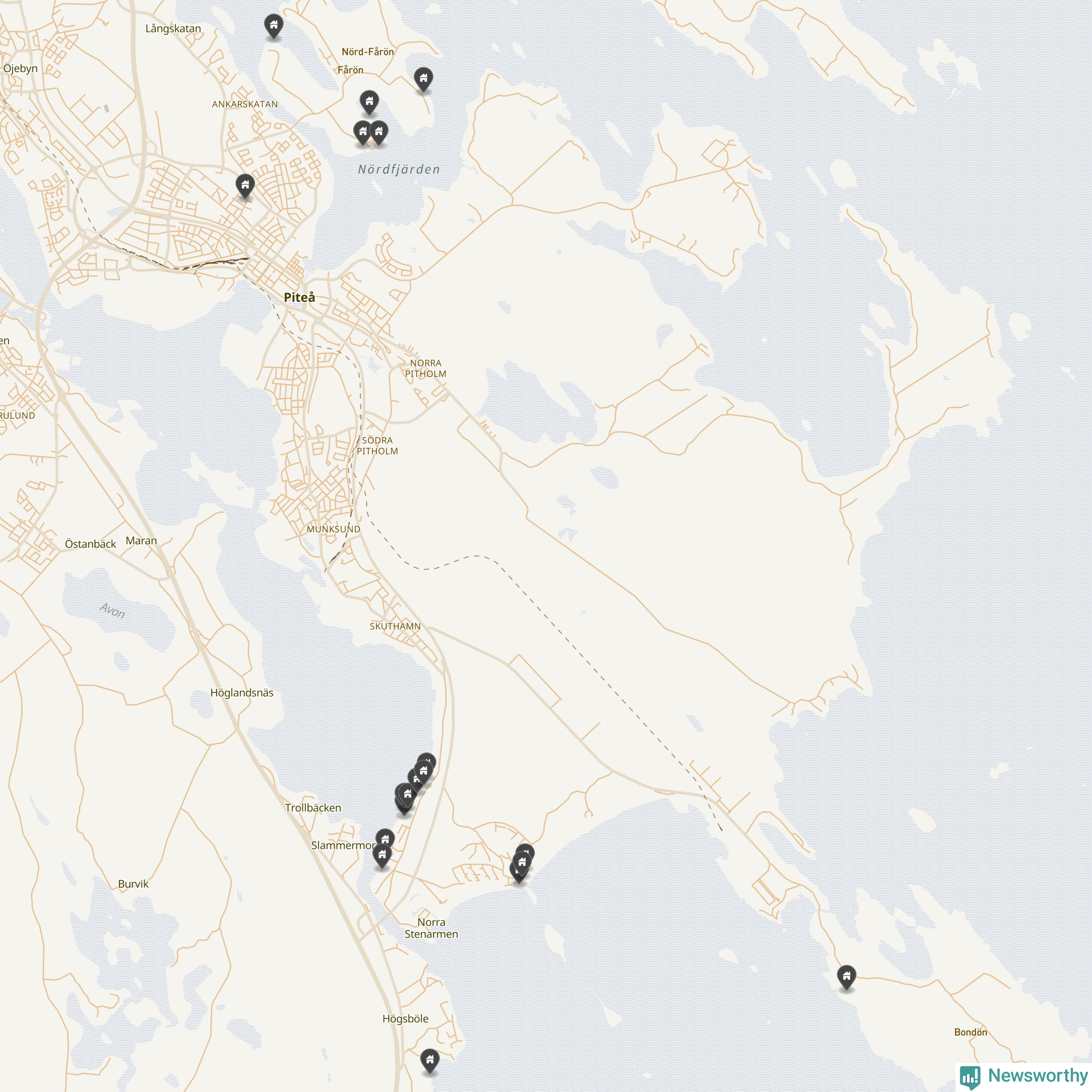 58 | Piteå Pitholm 27:90 | Gamla Pitsundsvägen 28 | 4,8 miljoner | 1 929 m² | Visa |