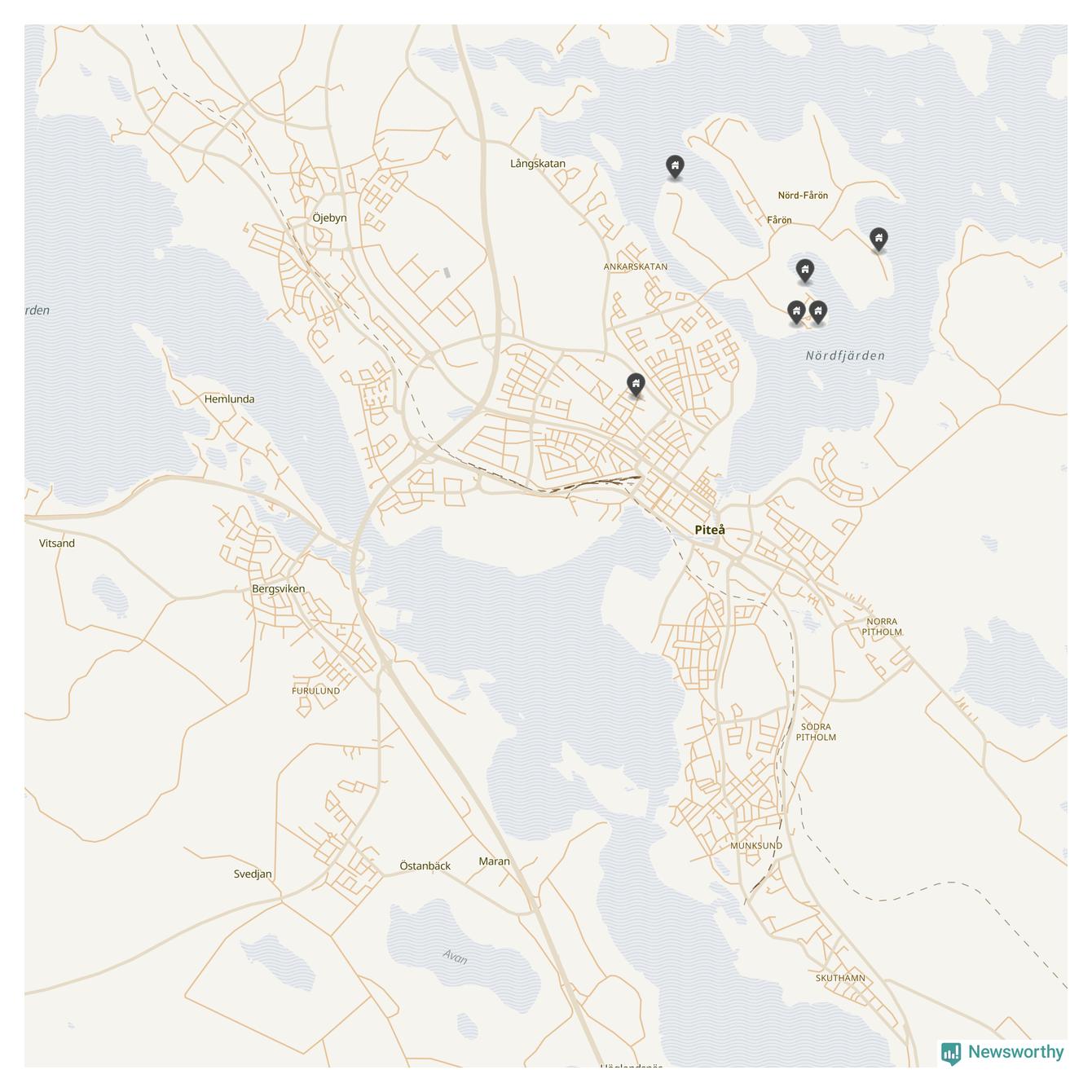 54 | Piteå Pitholm 3:17 | Nötögrundsvägen 167 m.fl. | 4,9 miljoner | 2 175 m² | Visa |