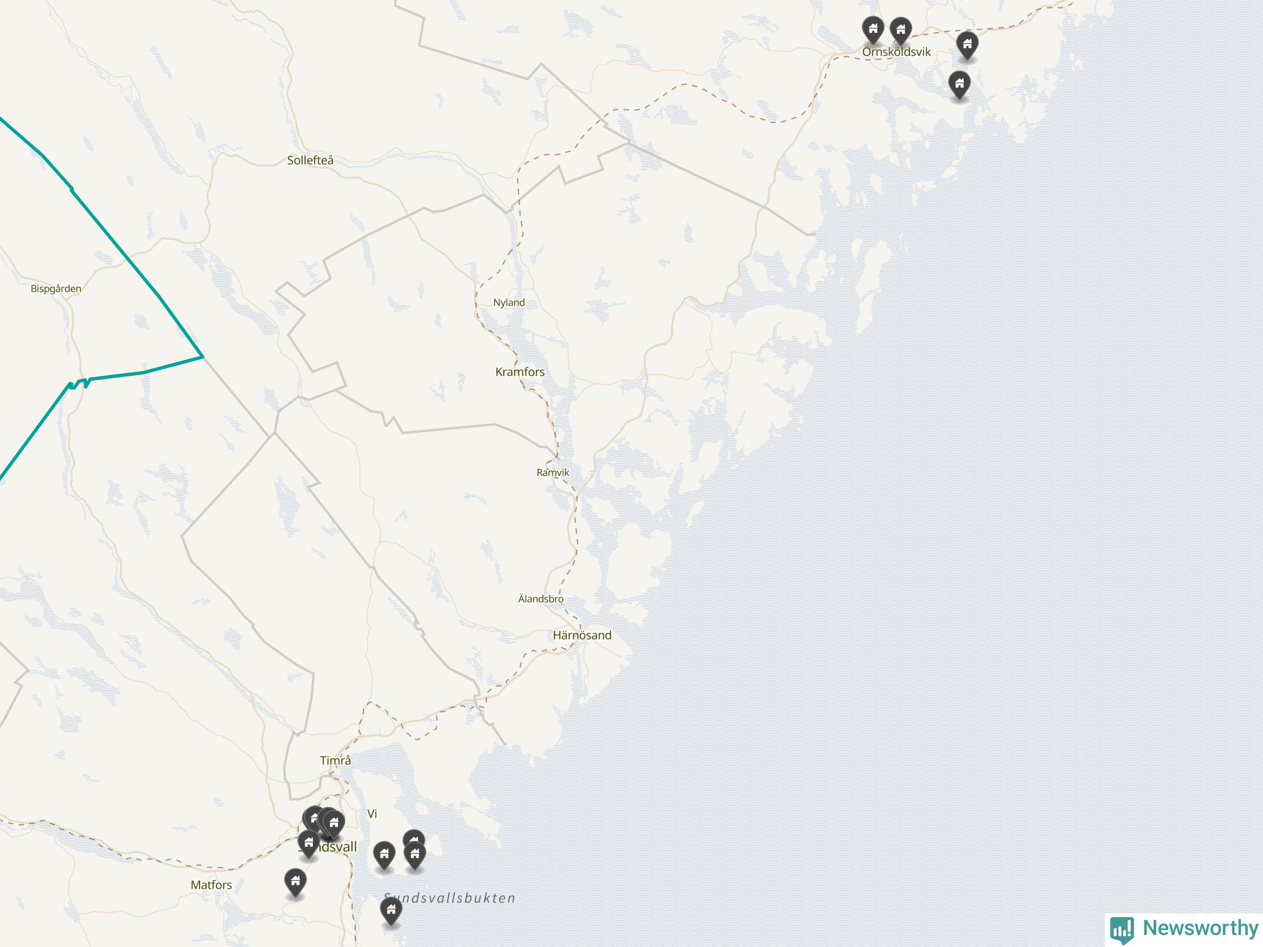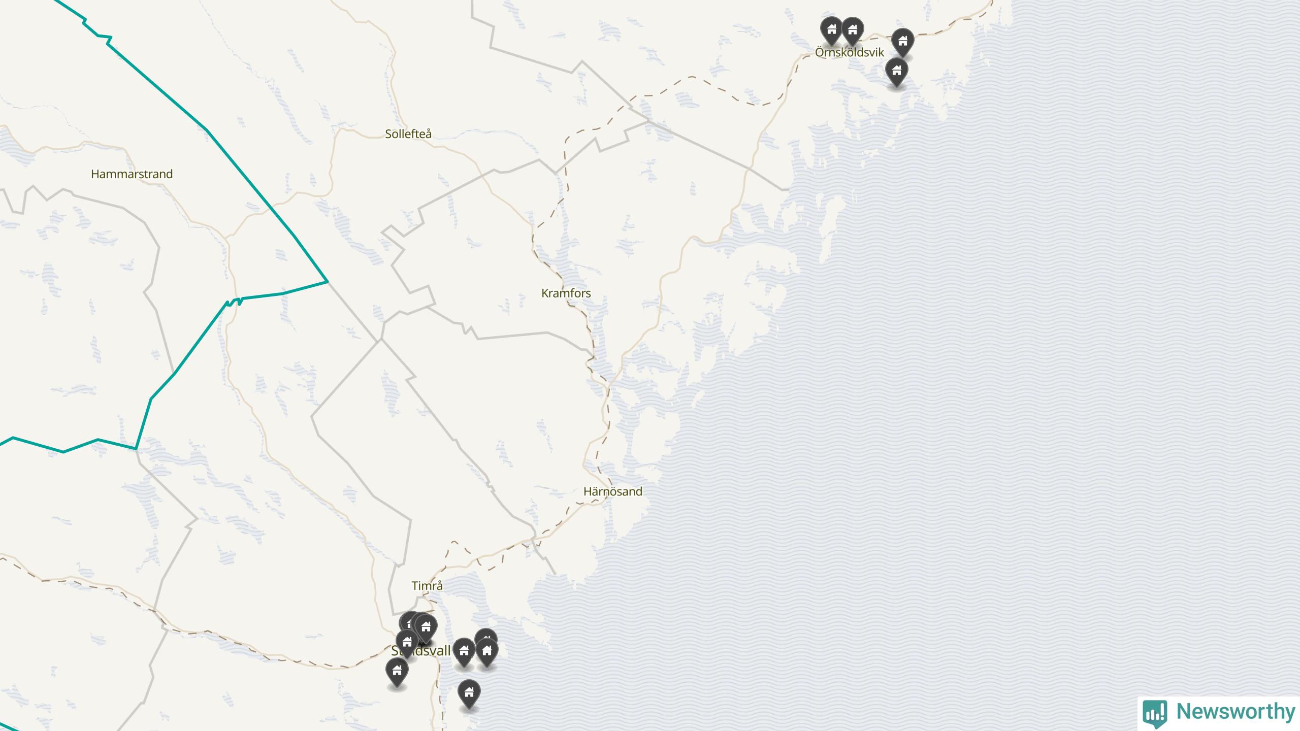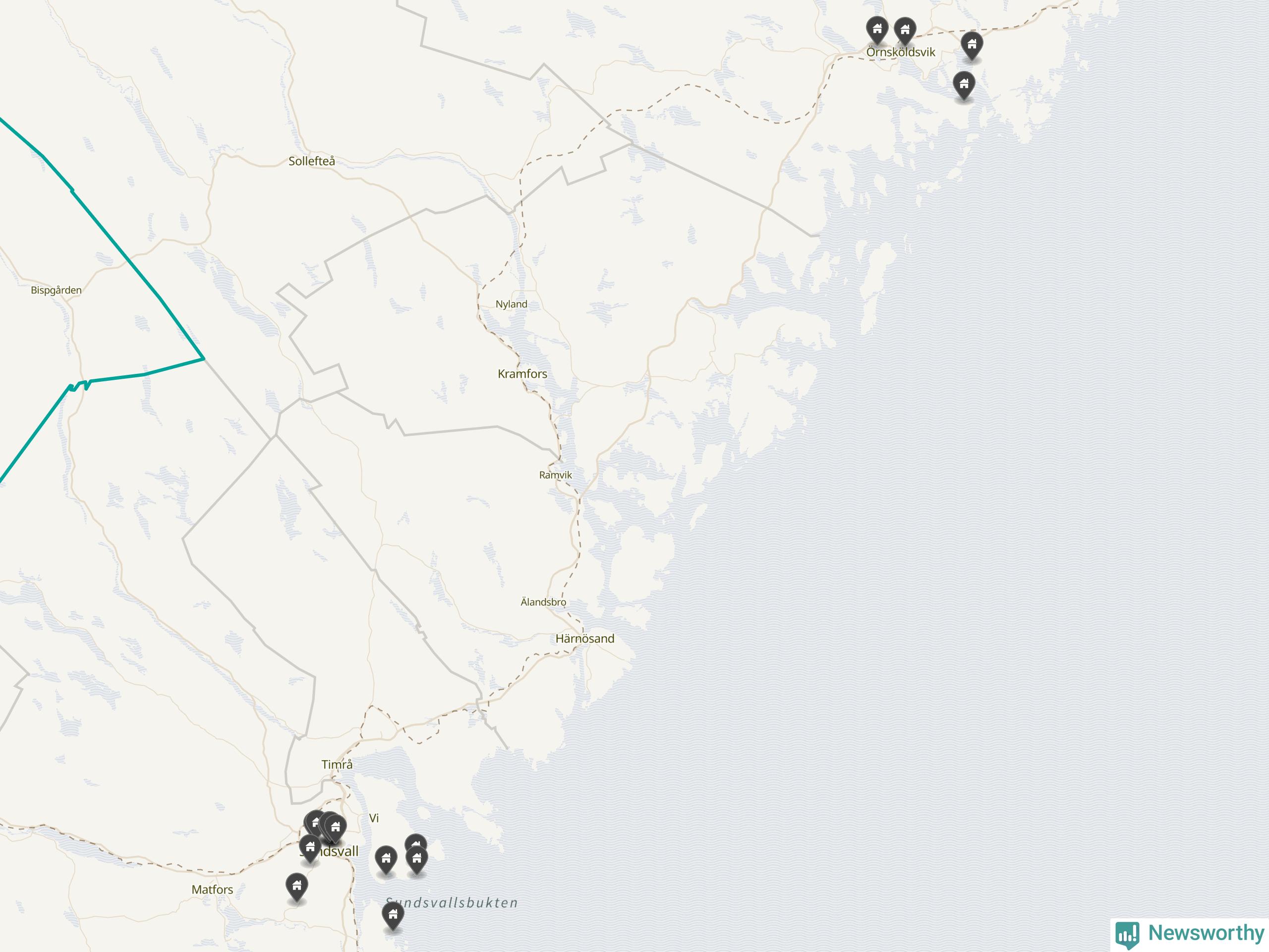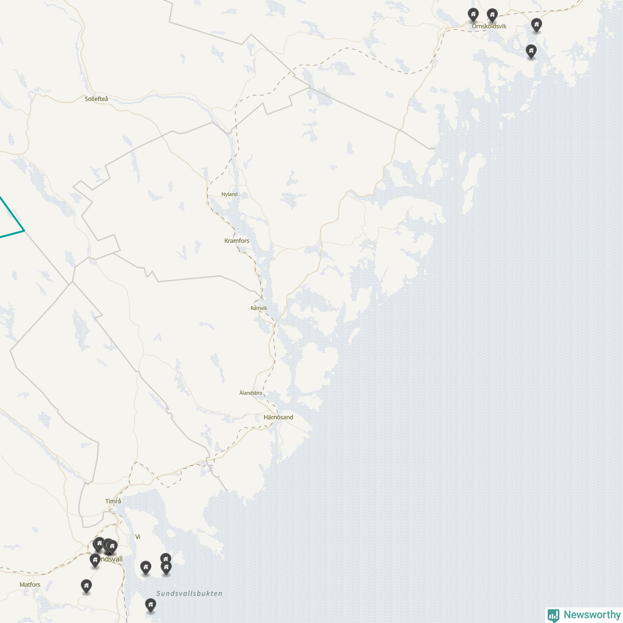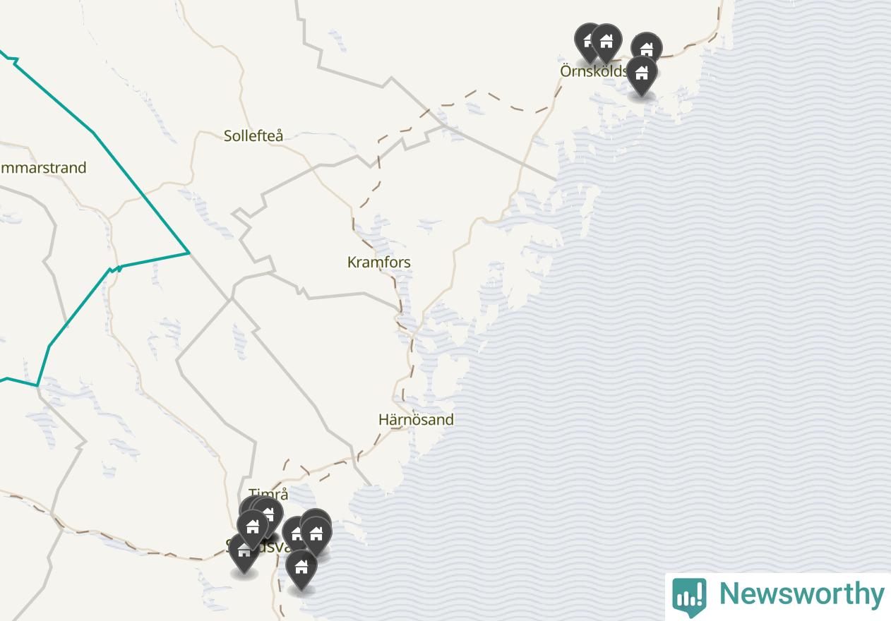 16 | Sundsvall | Sundsvall Rävsund 1:26 | Juniskärsvägen 204b m.fl. | 6,9 miljoner | 1 691 m² | Visa |
