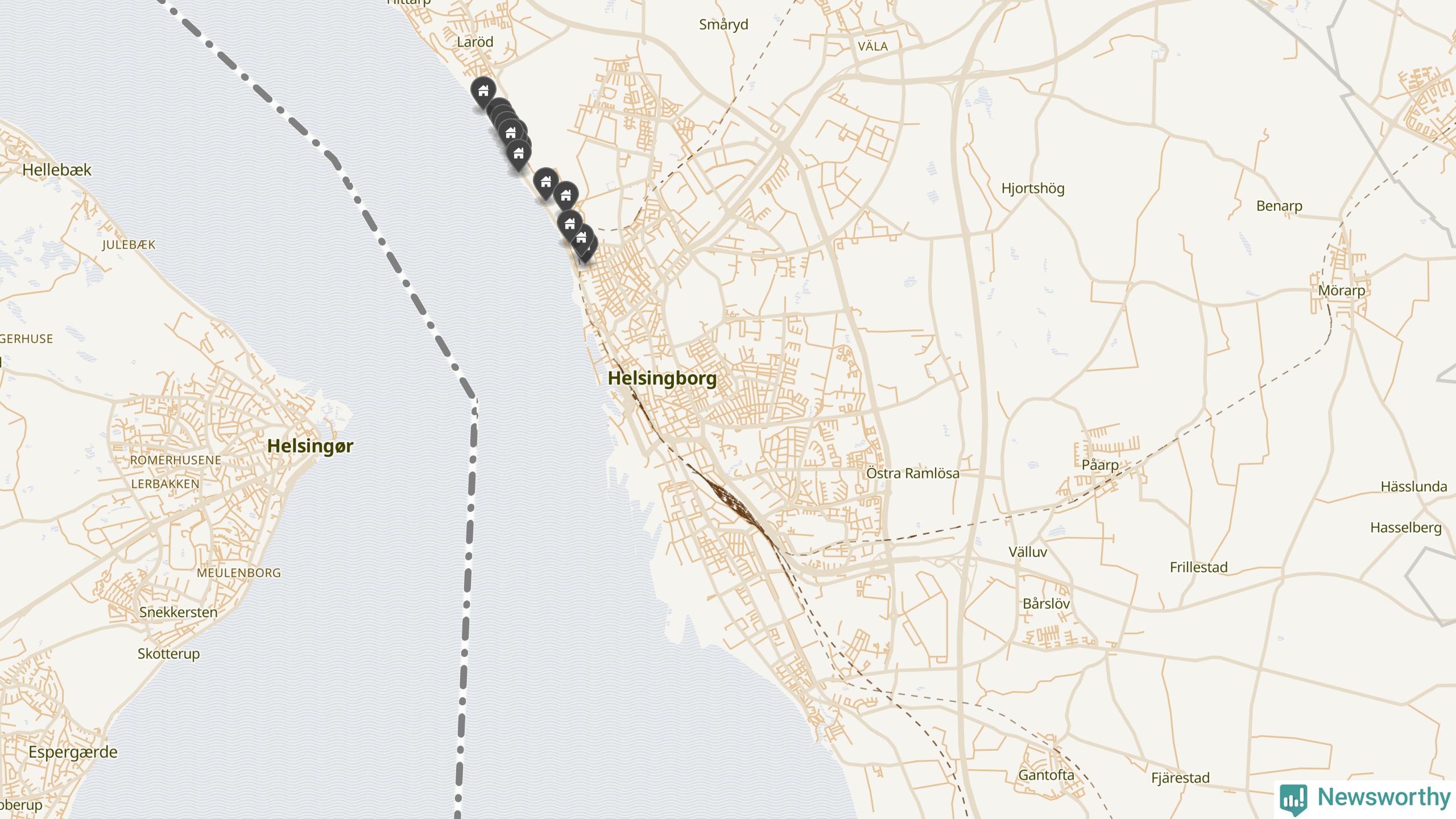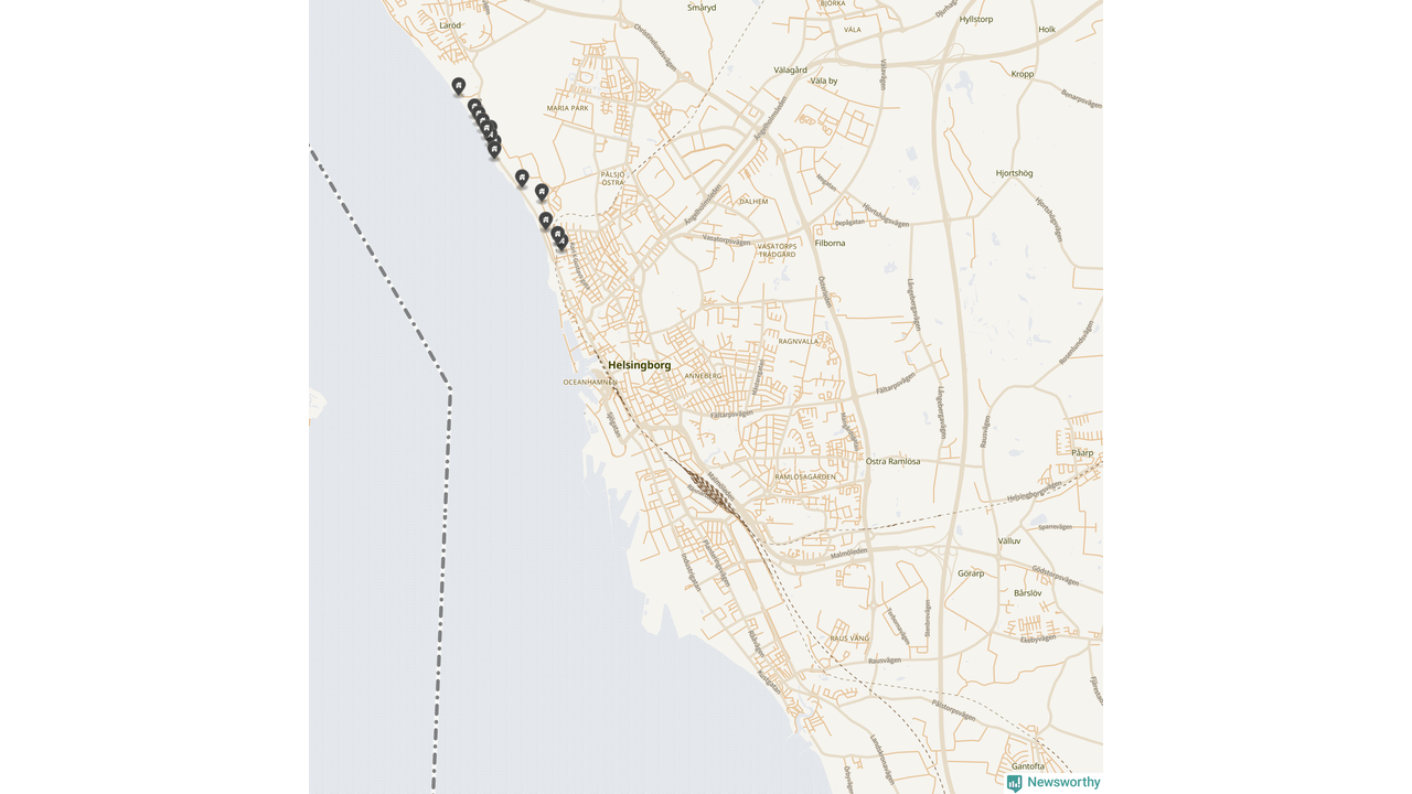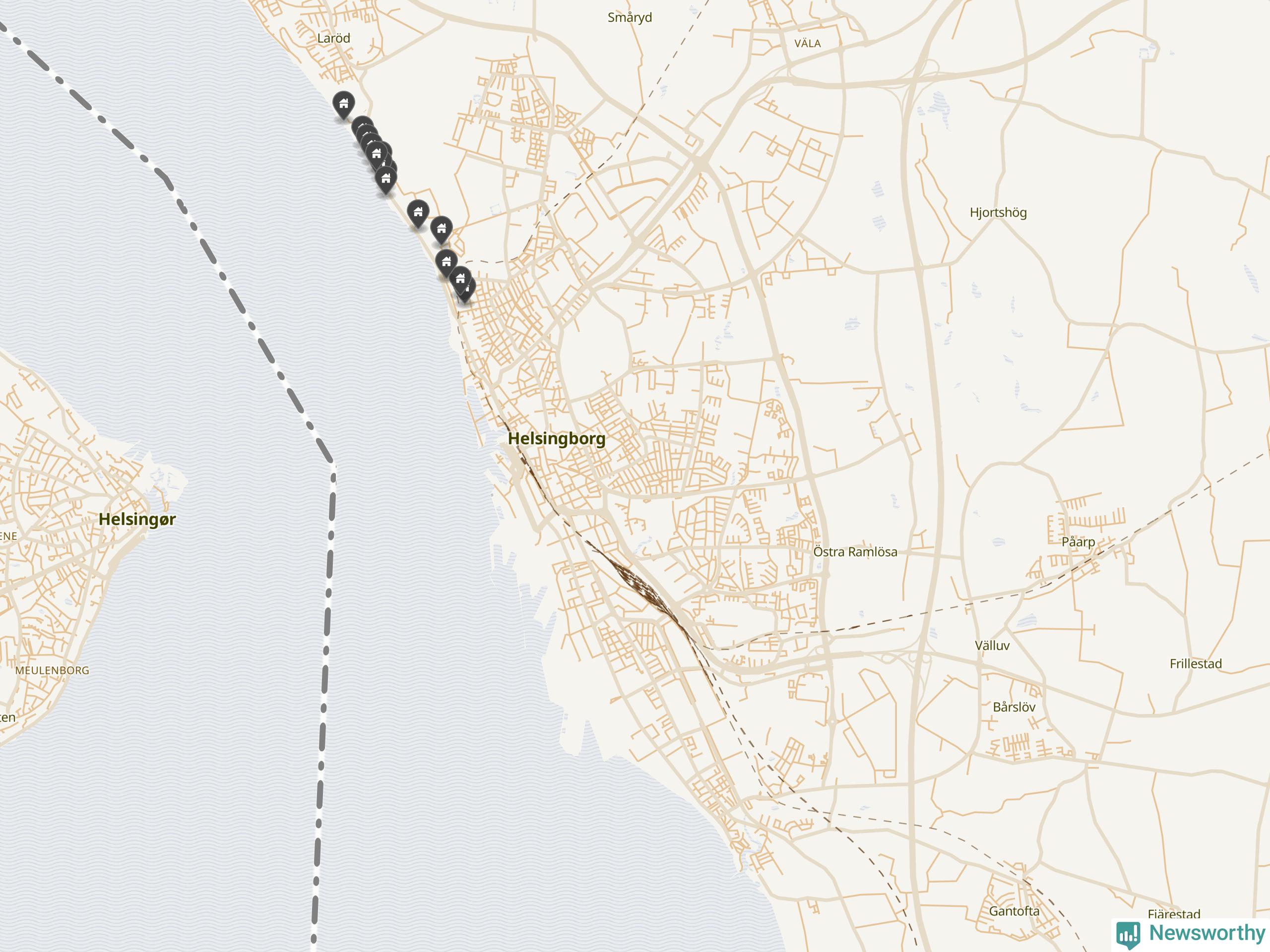 De 100 högst taxerade småhusfastigheterna i Helsingborg har ett snittvärde på 15,4 miljoner kronor, vilket är omkring nio miljoner högre än snittet för alla kommuners 100 högst taxerade småhus. Det visar Newsworthys genomgång av kommunernas högst taxerade småhusfastigheter, som sammanställts med hjälp av data från The intelligence company.