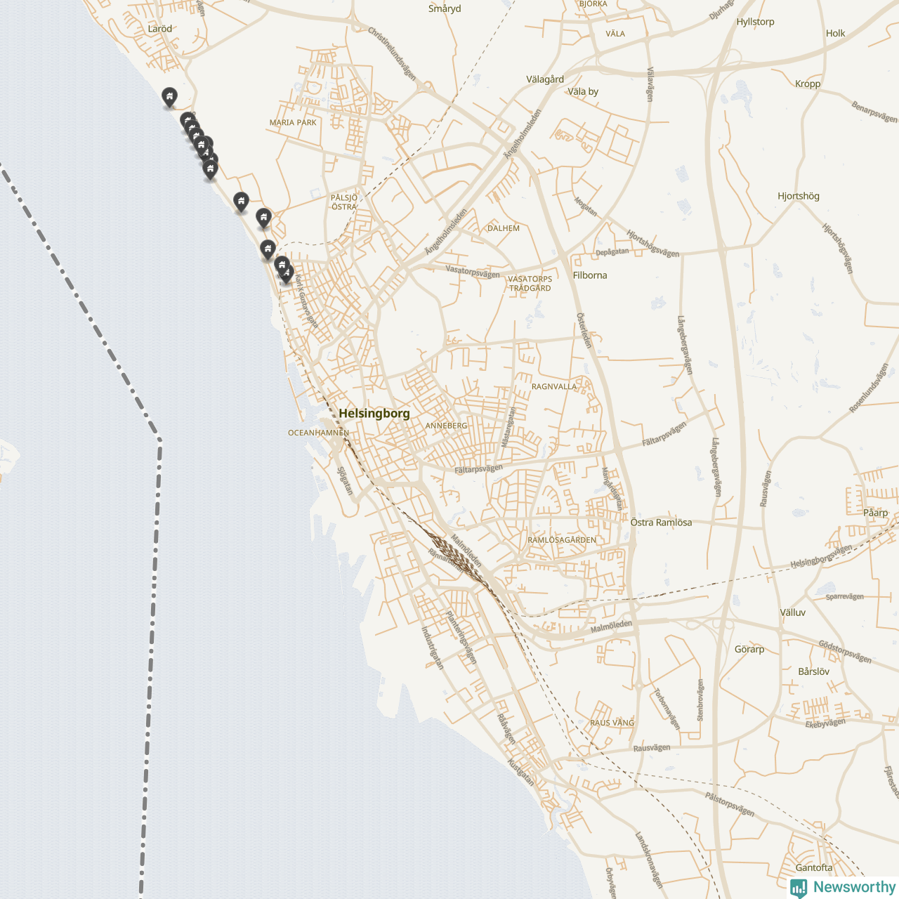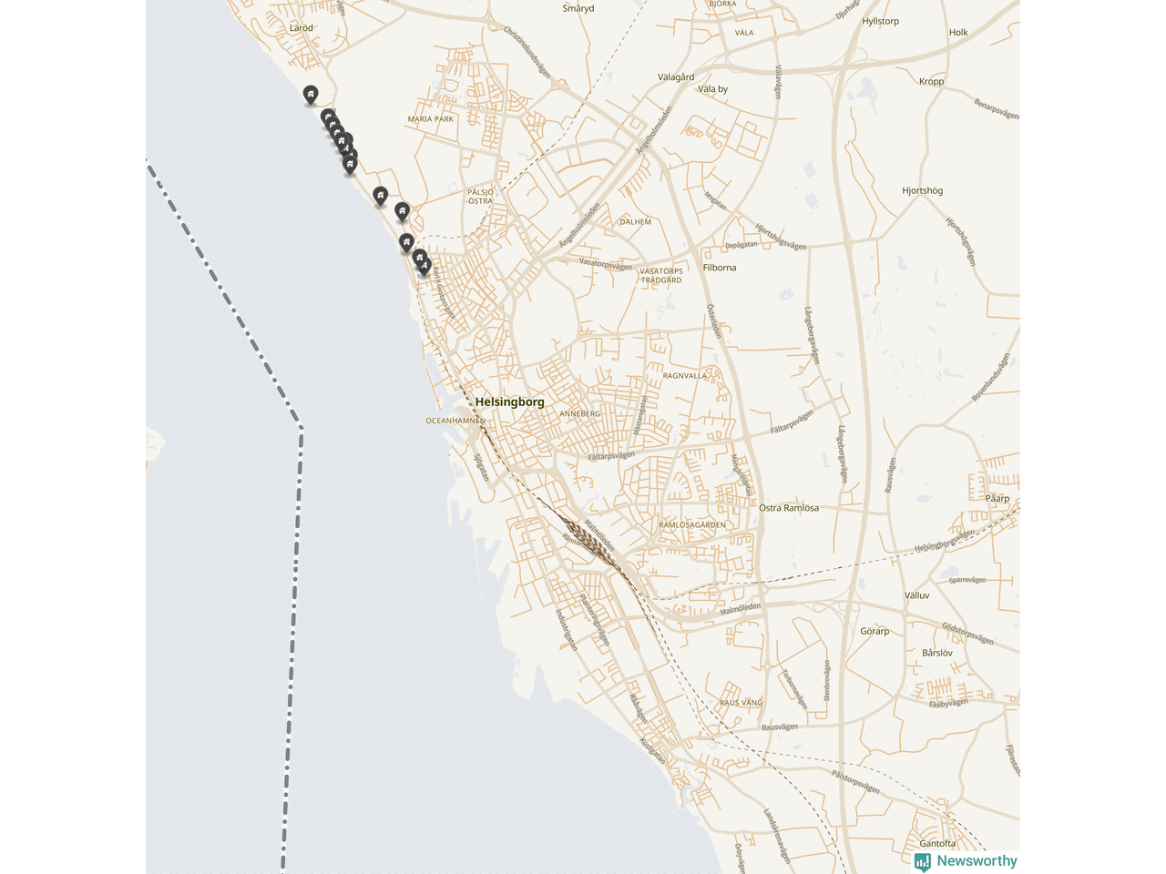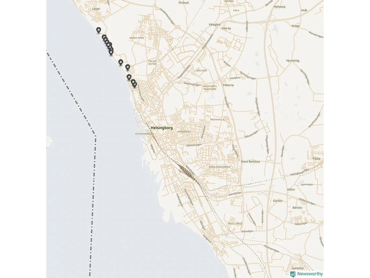 De 100 högst taxerade småhusfastigheterna i Helsingborg har ett snittvärde på 15,4 miljoner kronor, vilket är omkring nio miljoner högre än snittet för alla kommuners 100 högst taxerade småhus. Det visar Newsworthys genomgång av kommunernas högst taxerade småhusfastigheter, som sammanställts med hjälp av data från The intelligence company.