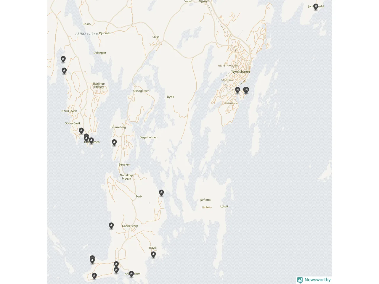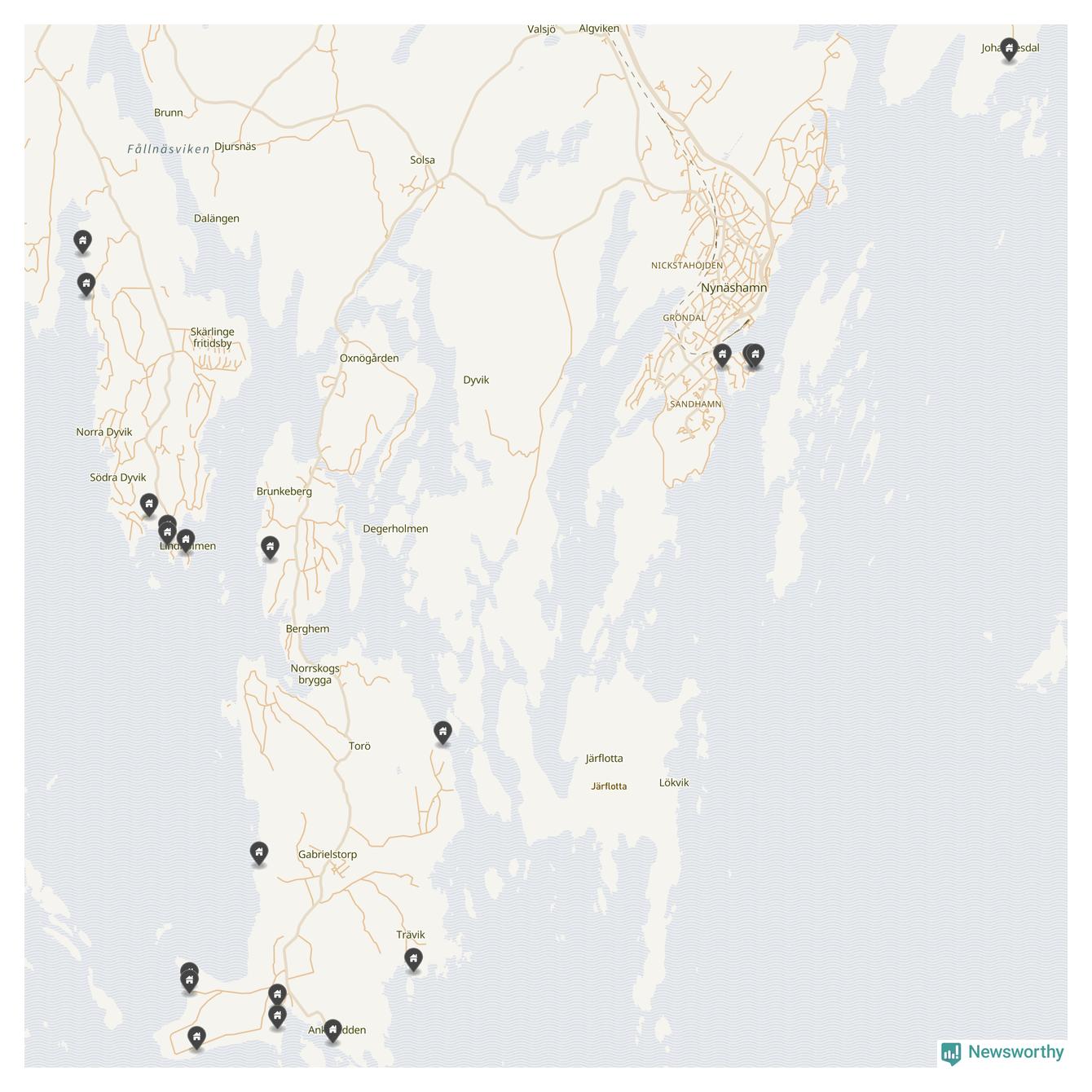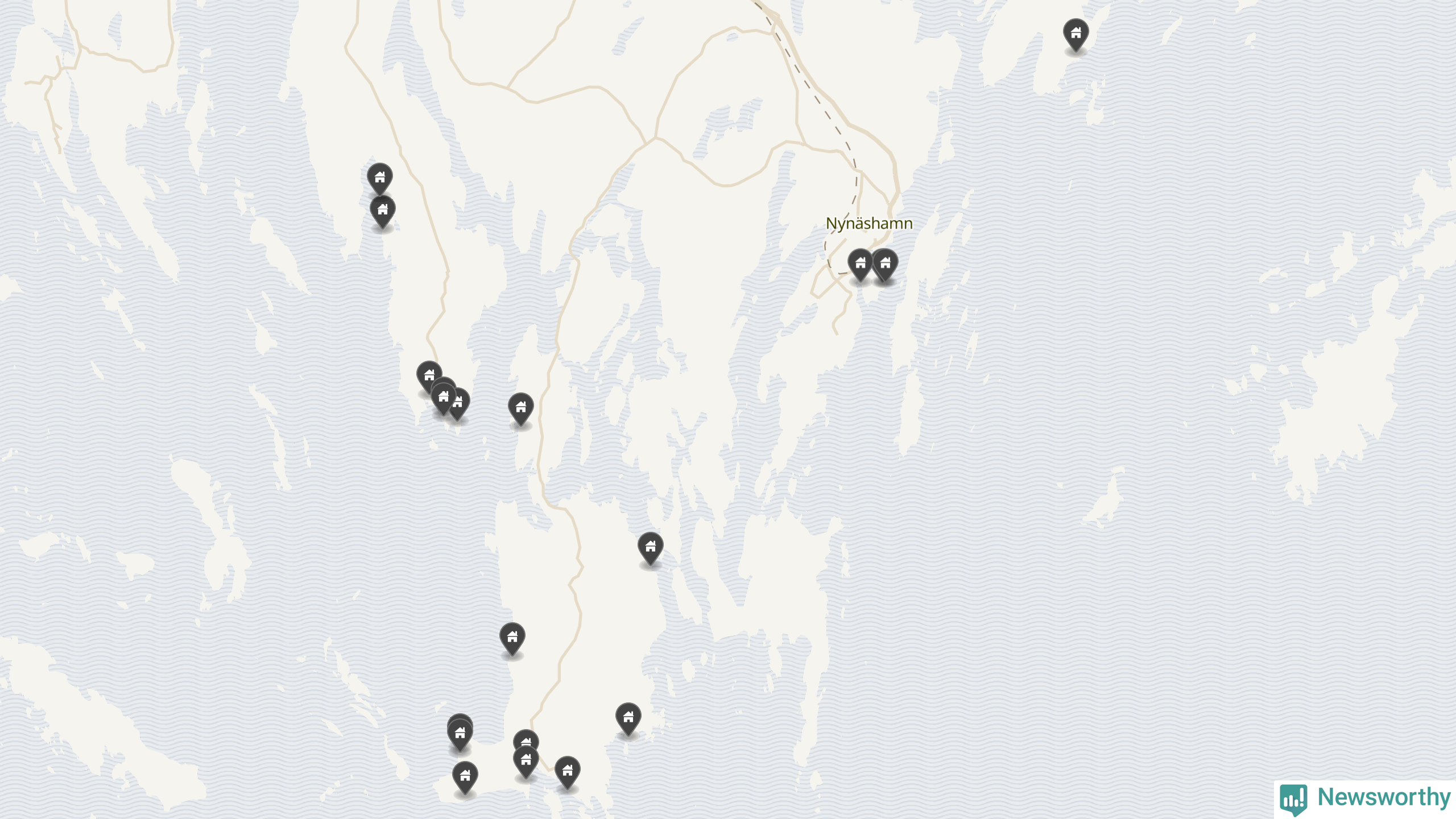 De 100 högst taxerade småhusfastigheterna i Nynäshamn har ett snittvärde på 10,9 miljoner kronor, vilket är omkring fem miljoner högre än snittet för alla kommuners 100 högst taxerade småhus. Det visar Newsworthys genomgång av kommunernas högst taxerade småhusfastigheter, som sammanställts med hjälp av data från The intelligence company.