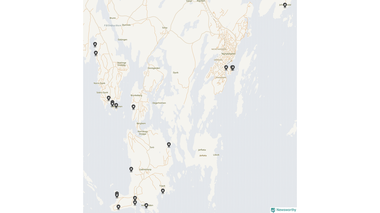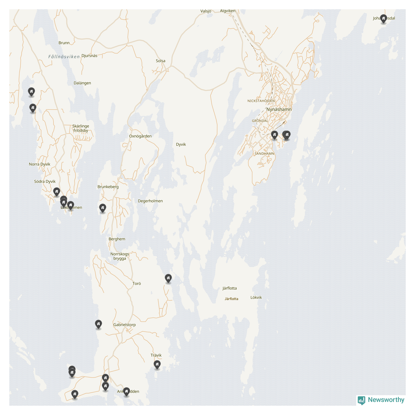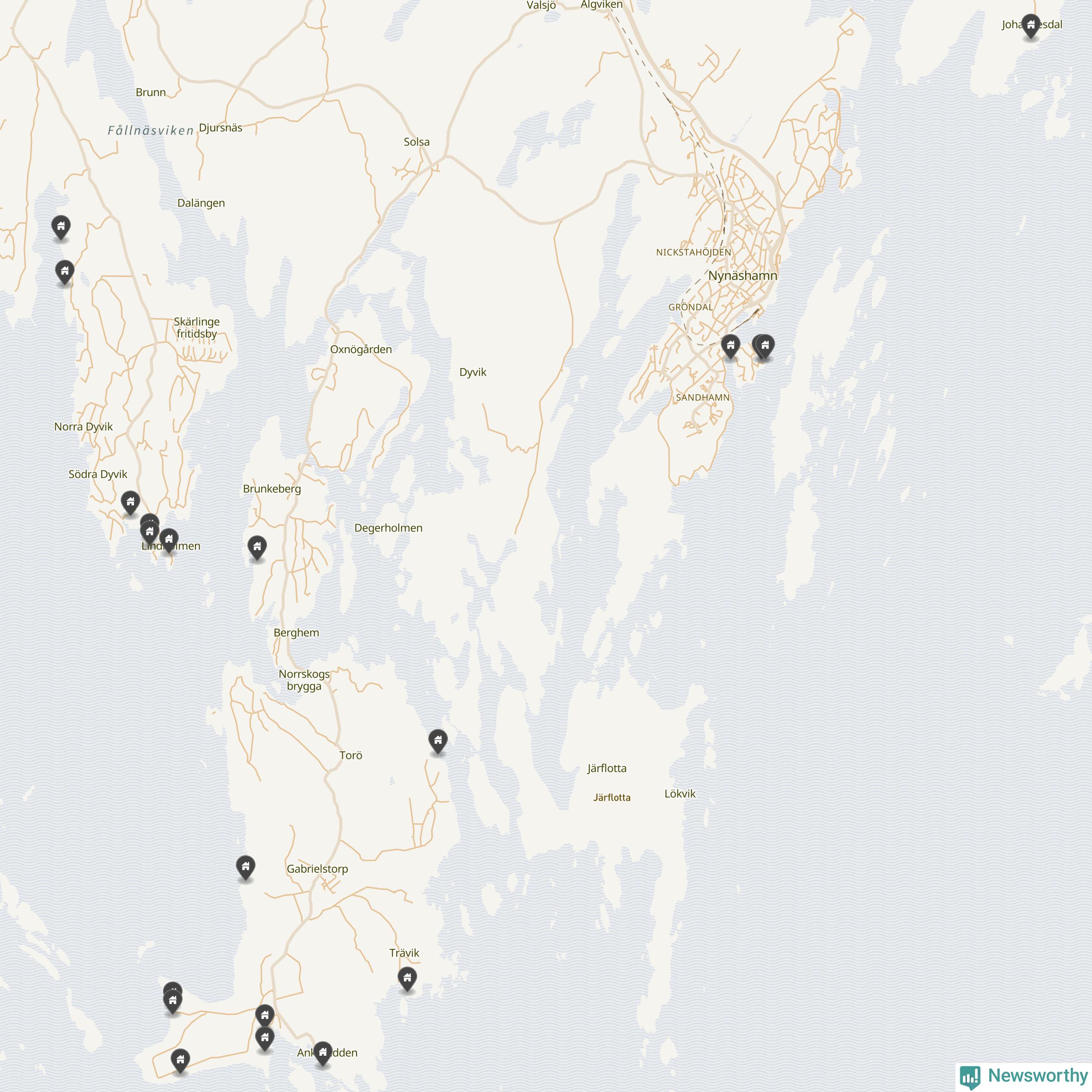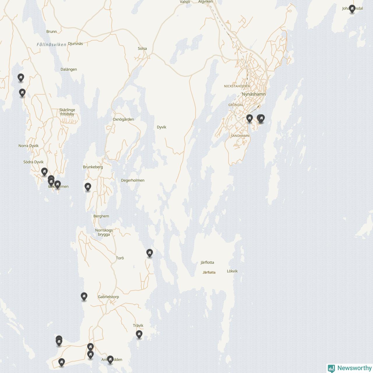 12 | Nynäshamn Sjövik 19 | Oskarsgatan 6b | 12,5 miljoner | 2 629 m² | Visa |