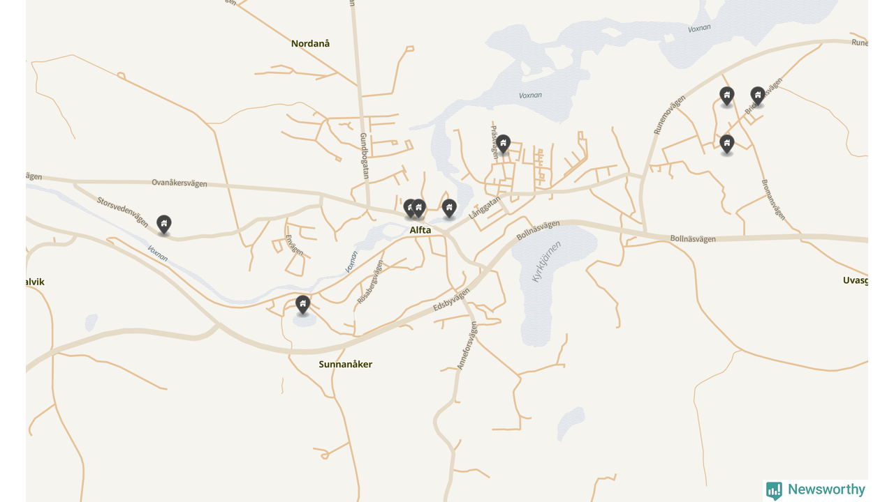 De 100 högst taxerade småhusfastigheterna i Ovanåker har ett snittvärde på 1,7 miljoner kronor, vilket är omkring fyra miljoner lägre än snittet för alla kommuners 100 högst taxerade småhus. Det visar Newsworthys genomgång av kommunernas högst taxerade småhusfastigheter, som sammanställts med hjälp av data från The intelligence company.