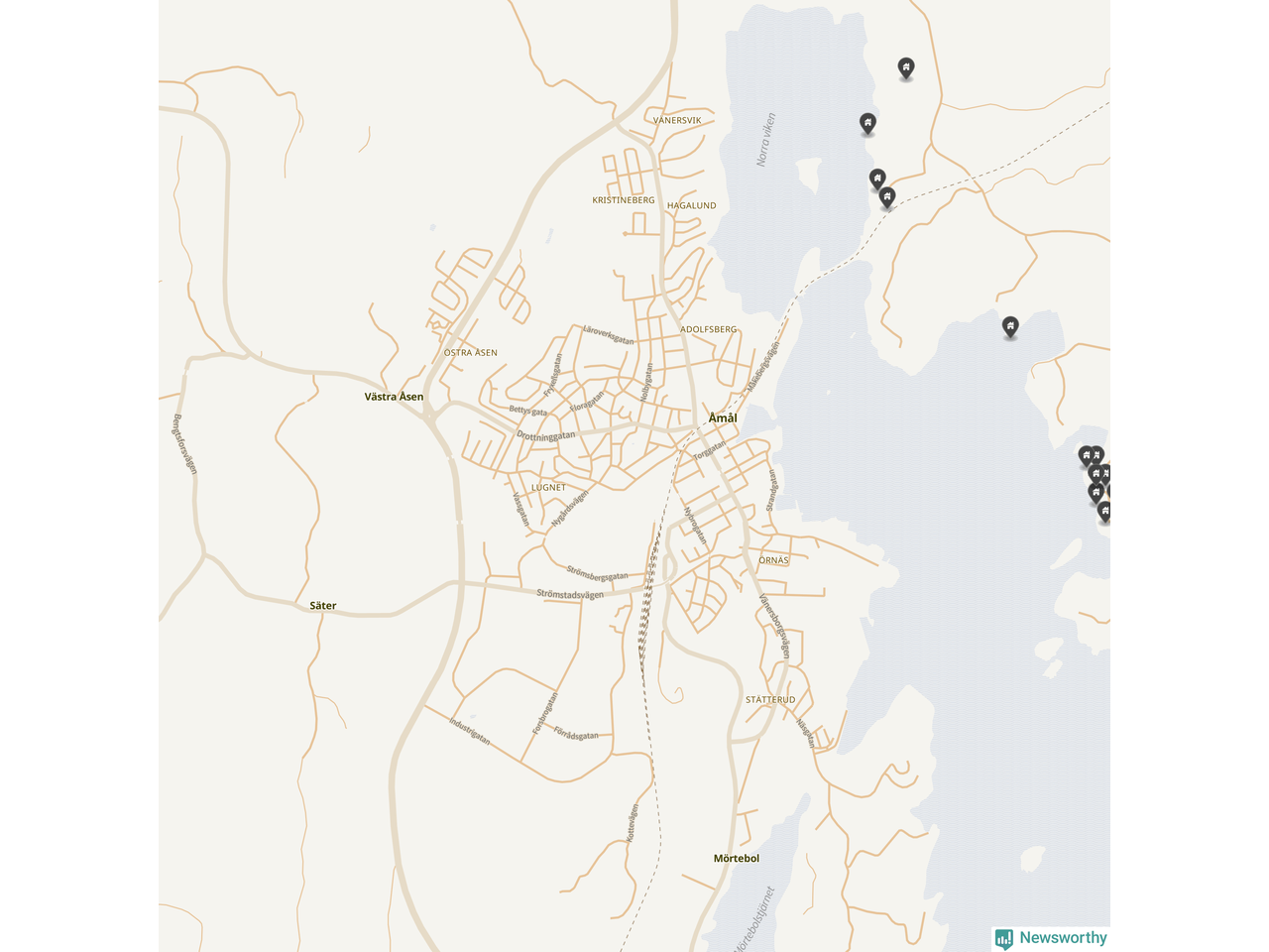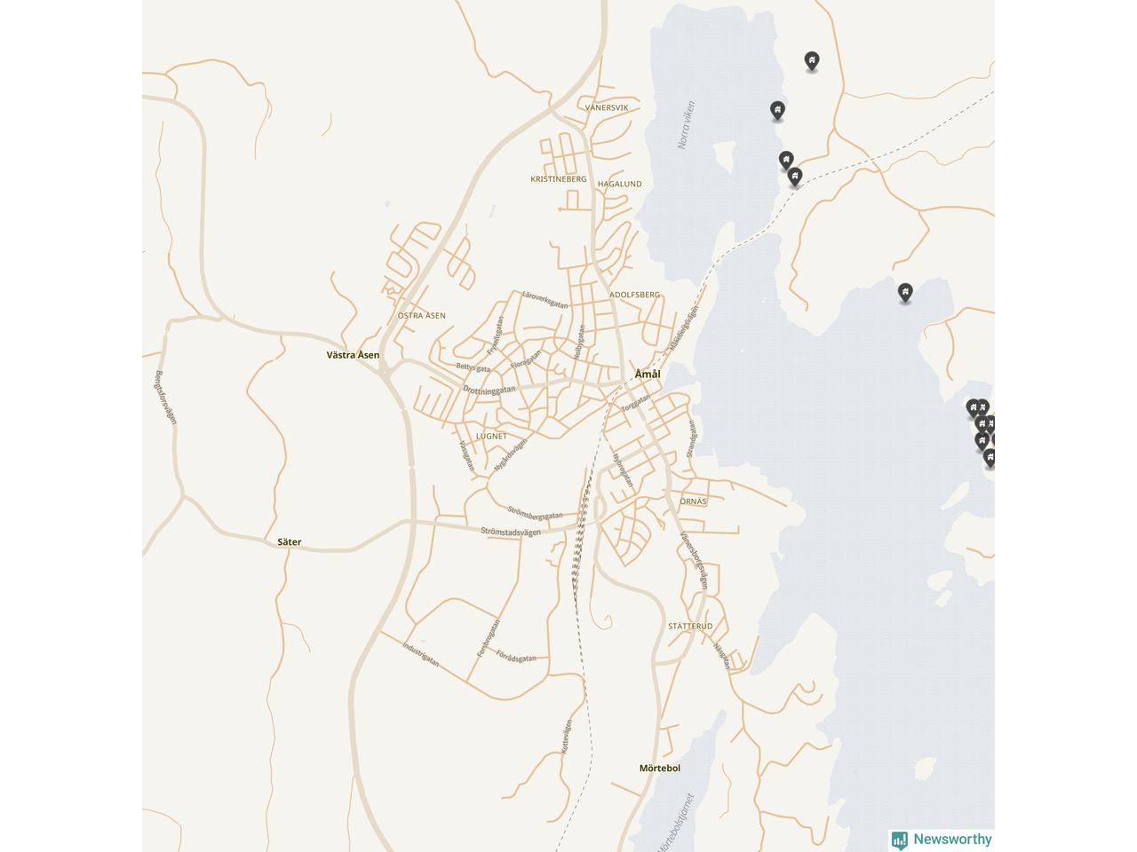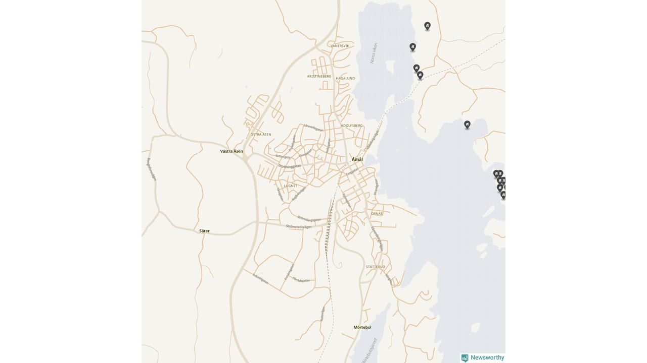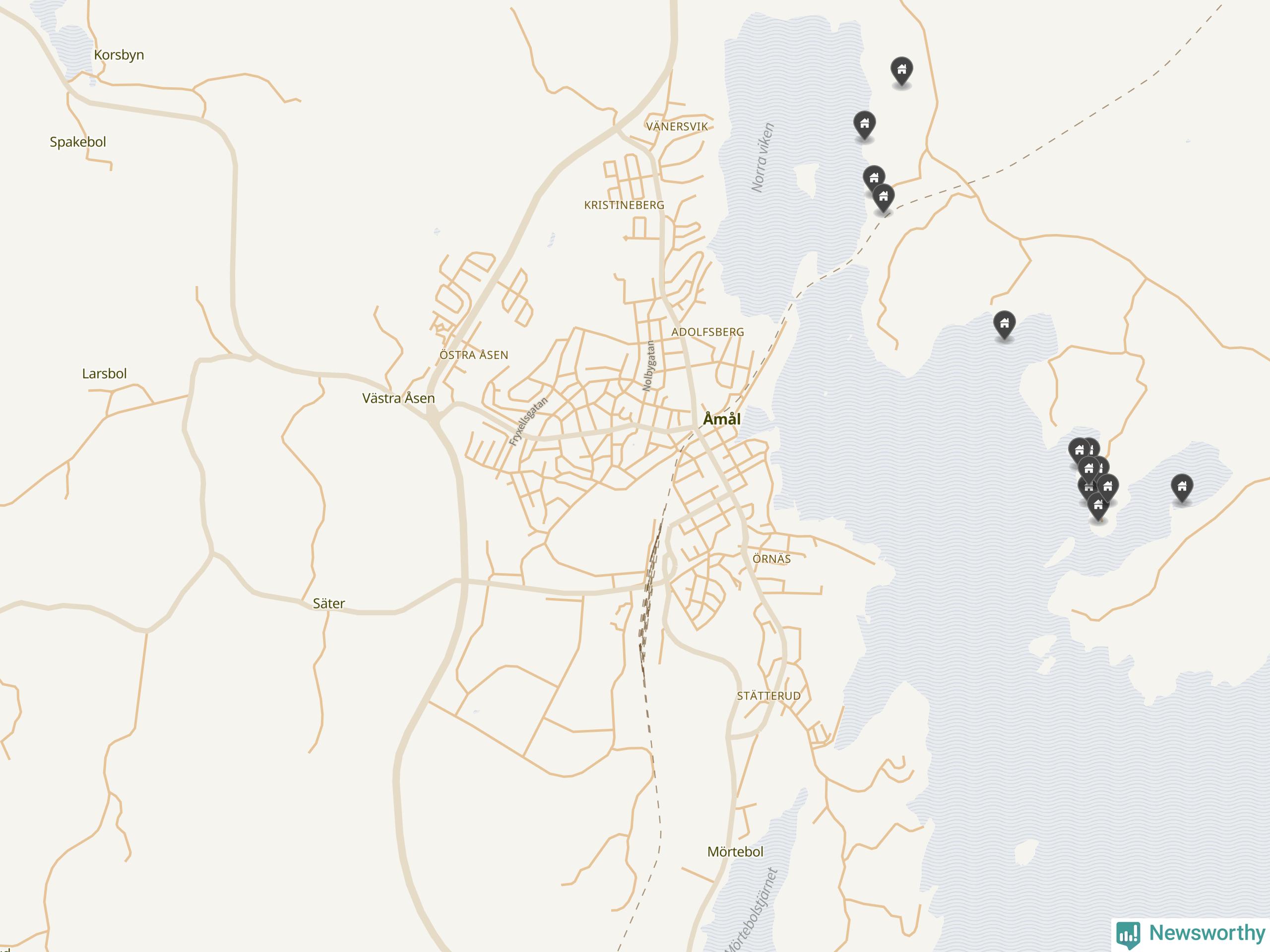 De 100 högst taxerade småhusfastigheterna i Åmål har ett snittvärde på 3,1 miljoner kronor, vilket är omkring tre miljoner lägre än snittet för alla kommuners 100 högst taxerade småhus. Det visar Newsworthys genomgång av kommunernas högst taxerade småhusfastigheter, som sammanställts med hjälp av data från The intelligence company.