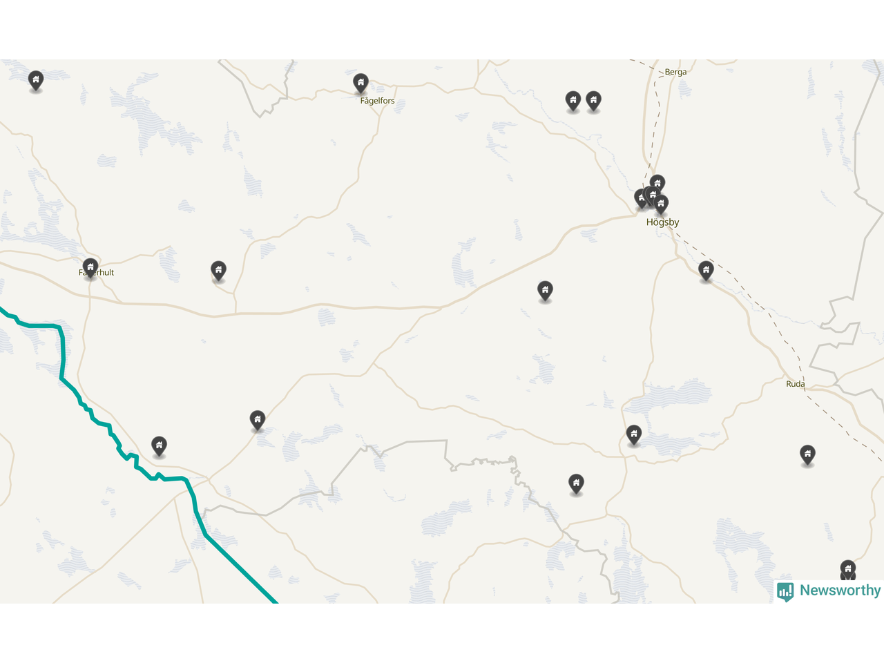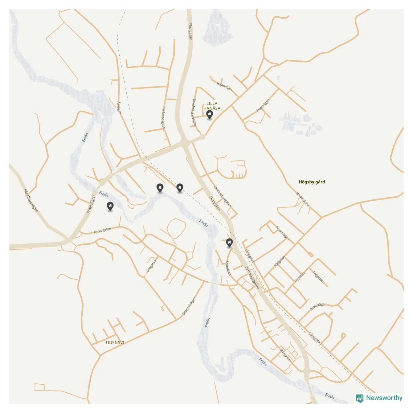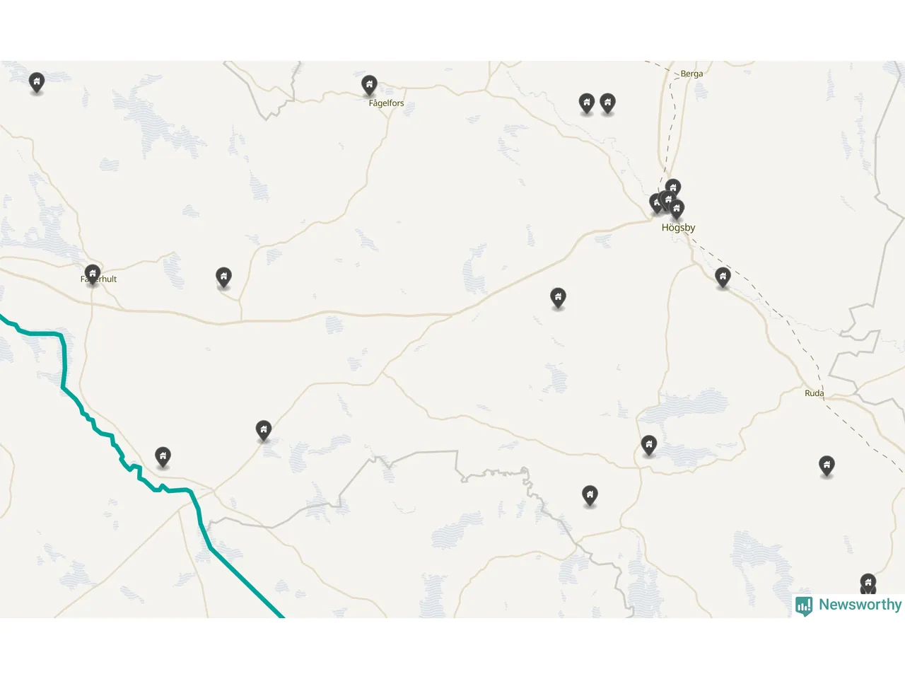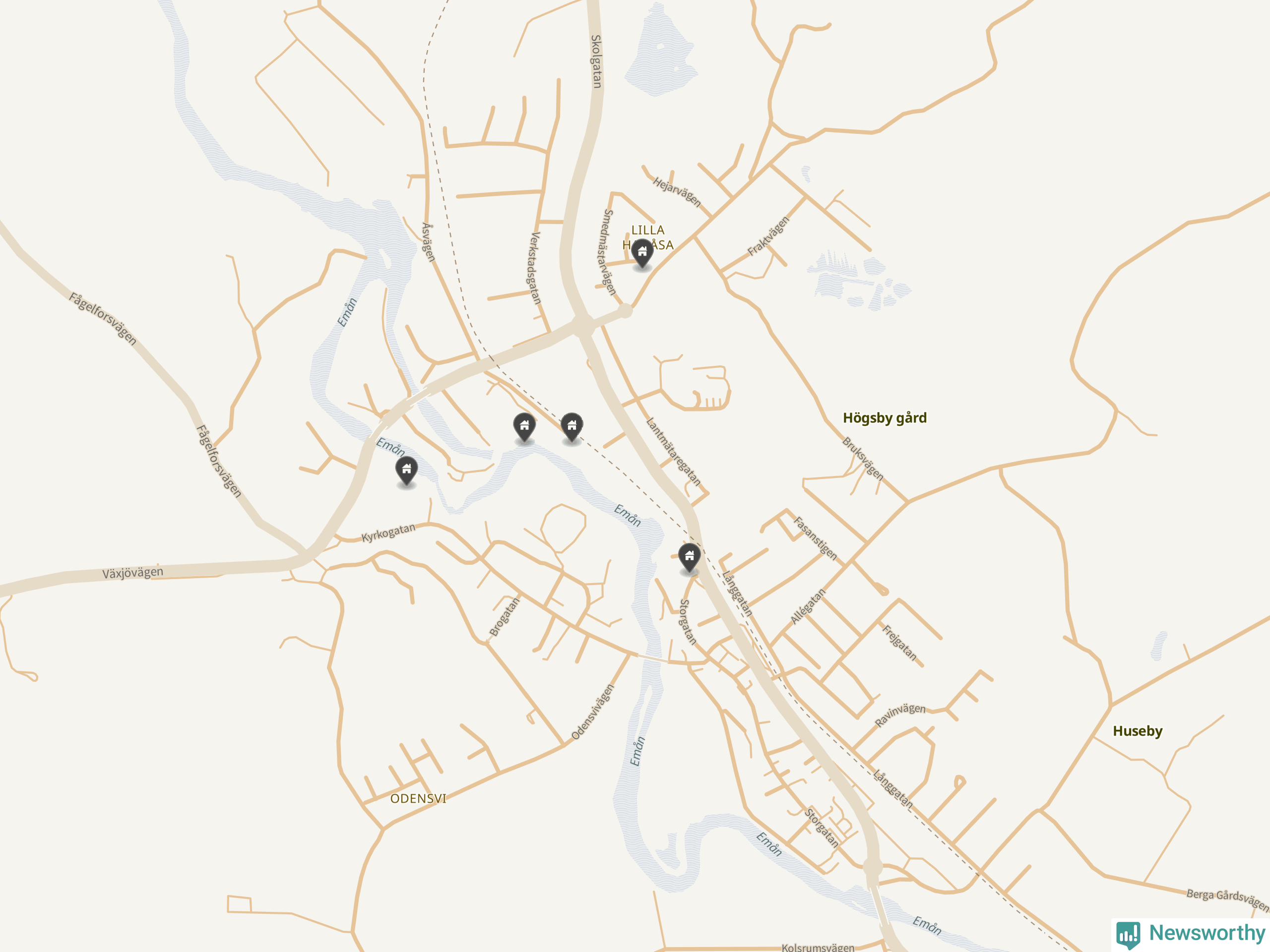 De 100 högst taxerade småhusfastigheterna i Högsby har ett snittvärde på 1,2 miljoner kronor, vilket är omkring fem miljoner lägre än snittet för alla kommuners 100 högst taxerade småhus. Det visar Newsworthys genomgång av kommunernas högst taxerade småhusfastigheter, som sammanställts med hjälp av data från The intelligence company.