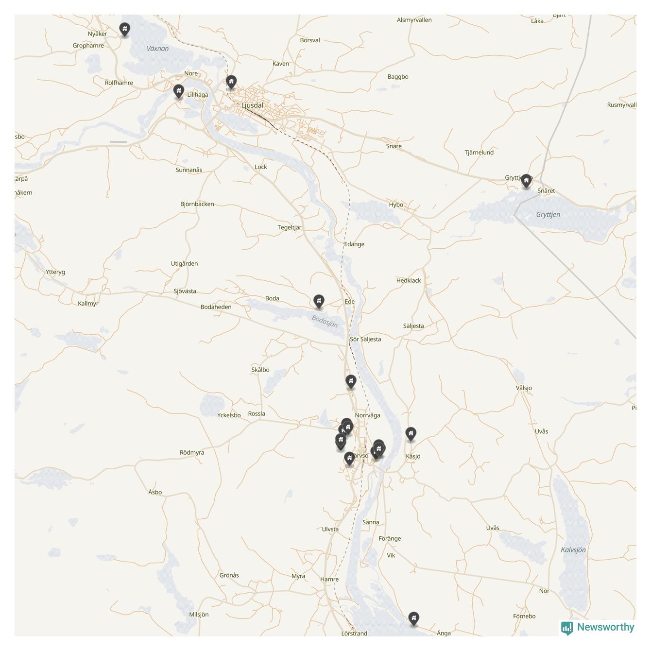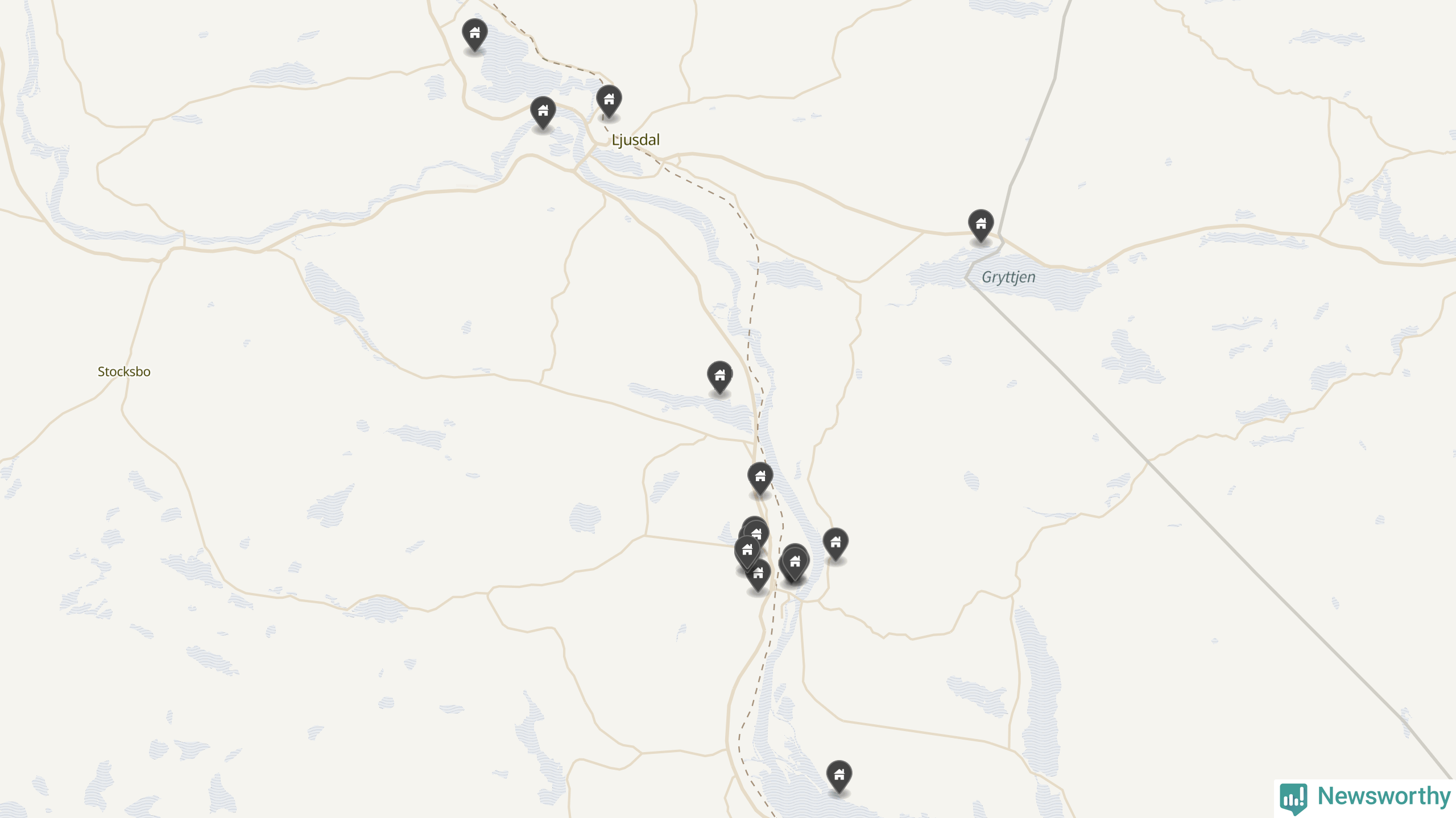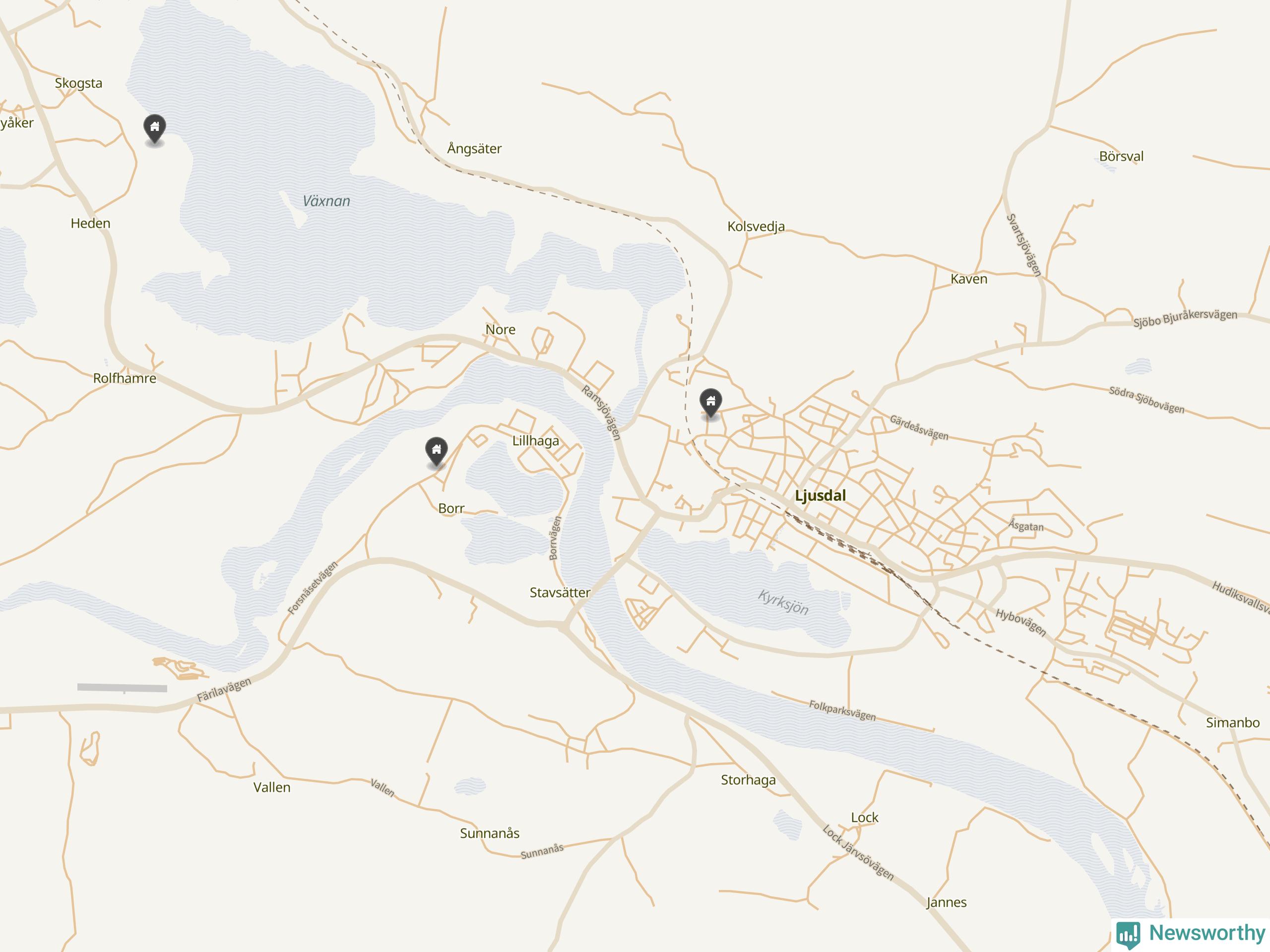 De 100 högst taxerade småhusfastigheterna i Ljusdal har ett snittvärde på 3,8 miljoner kronor, vilket är omkring två miljoner lägre än snittet för alla kommuners 100 högst taxerade småhus. Det visar Newsworthys genomgång av kommunernas högst taxerade småhusfastigheter, som sammanställts med hjälp av data från The intelligence company.