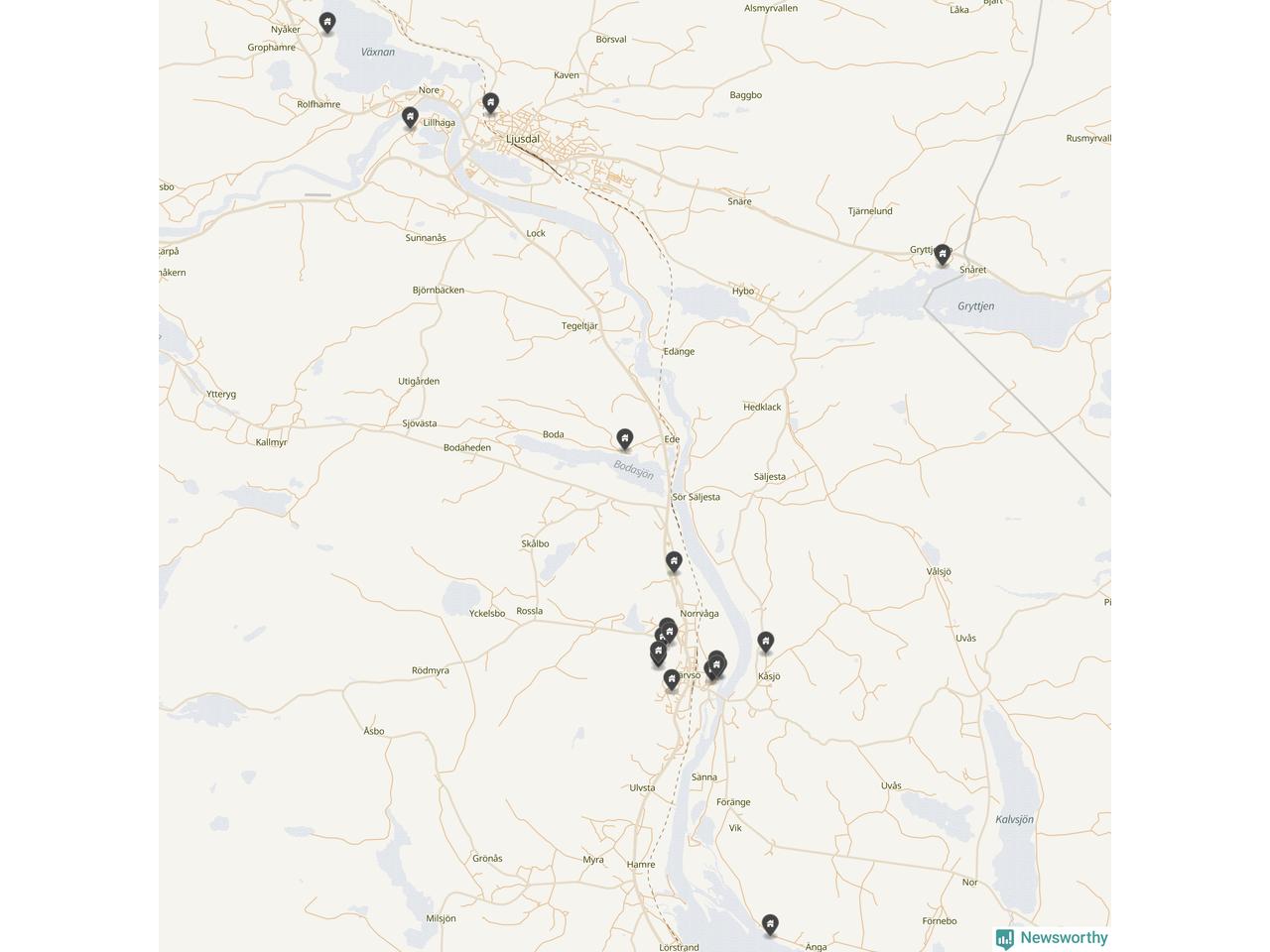 54 | Ljusdal Snäre 4:24 | Snäre Linnavägen 11 | 3,6 miljoner | 6 700 m² | Visa |