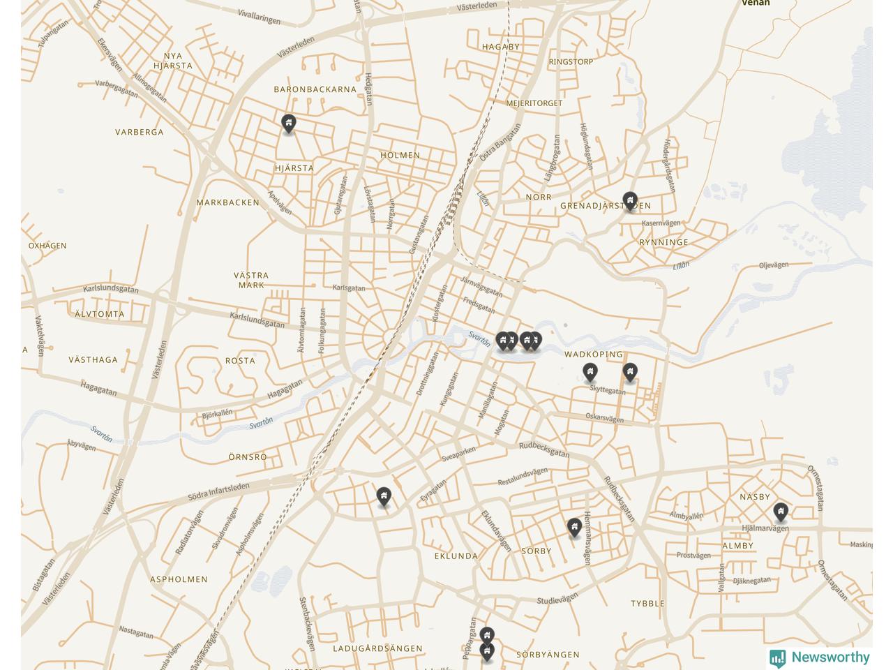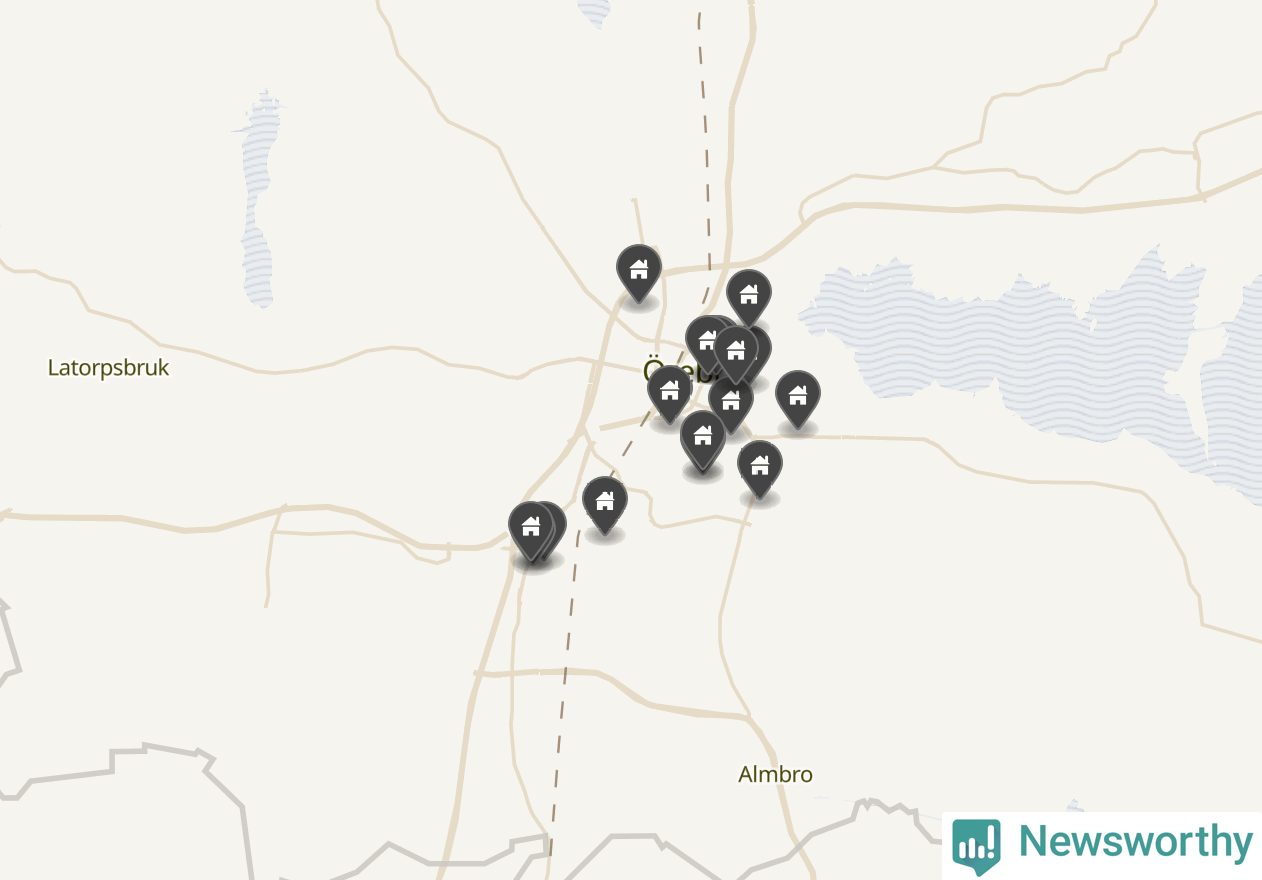 De 100 högst taxerade småhusfastigheterna i Örebro kommun har ett snittvärde på 8,3 miljoner kronor, vilket är omkring två miljoner högre än snittet för alla kommuners 100 högst taxerade småhus. Det visar Newsworthys genomgång av kommunernas högst taxerade småhusfastigheter, som sammanställts med hjälp av data från The intelligence company.
