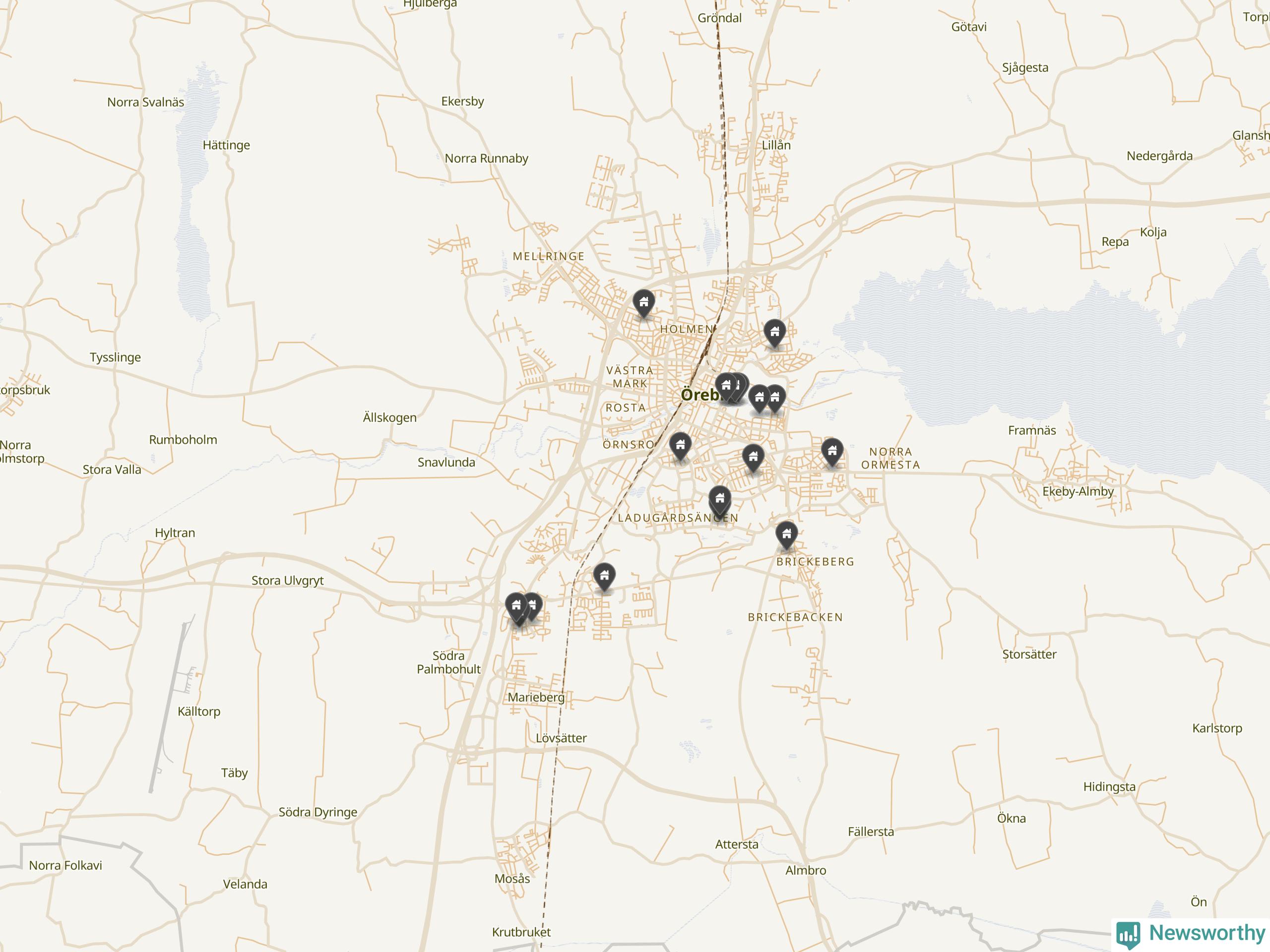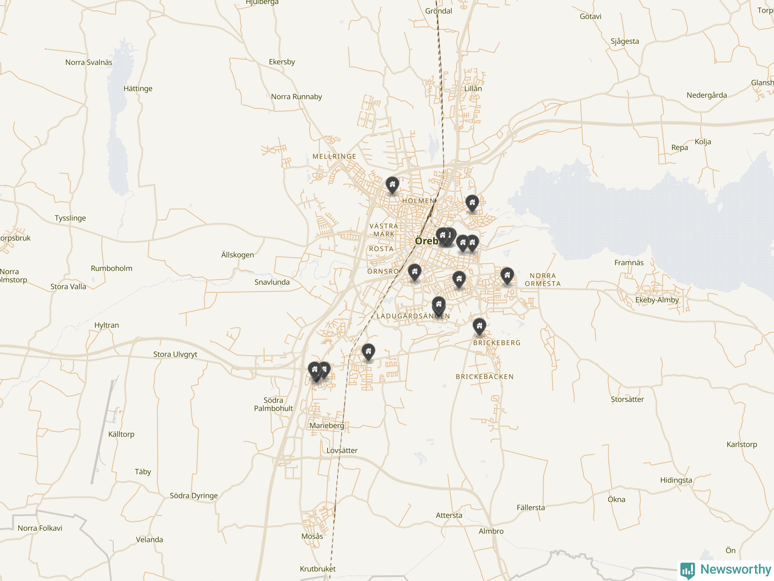 4 | Örebro Våtsjön 14 | Stenåsvägen 6 | 11,9 miljoner | 1 758 m² | Visa |