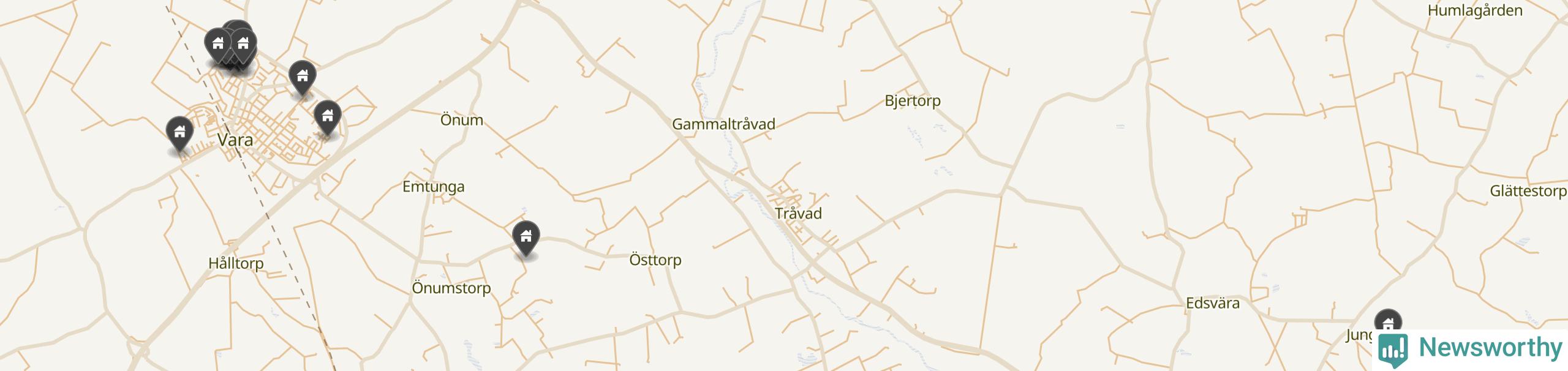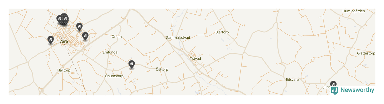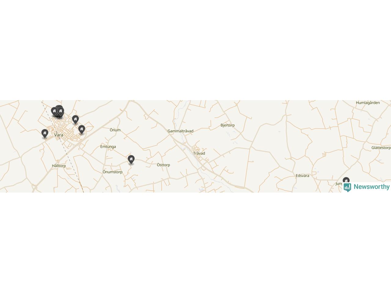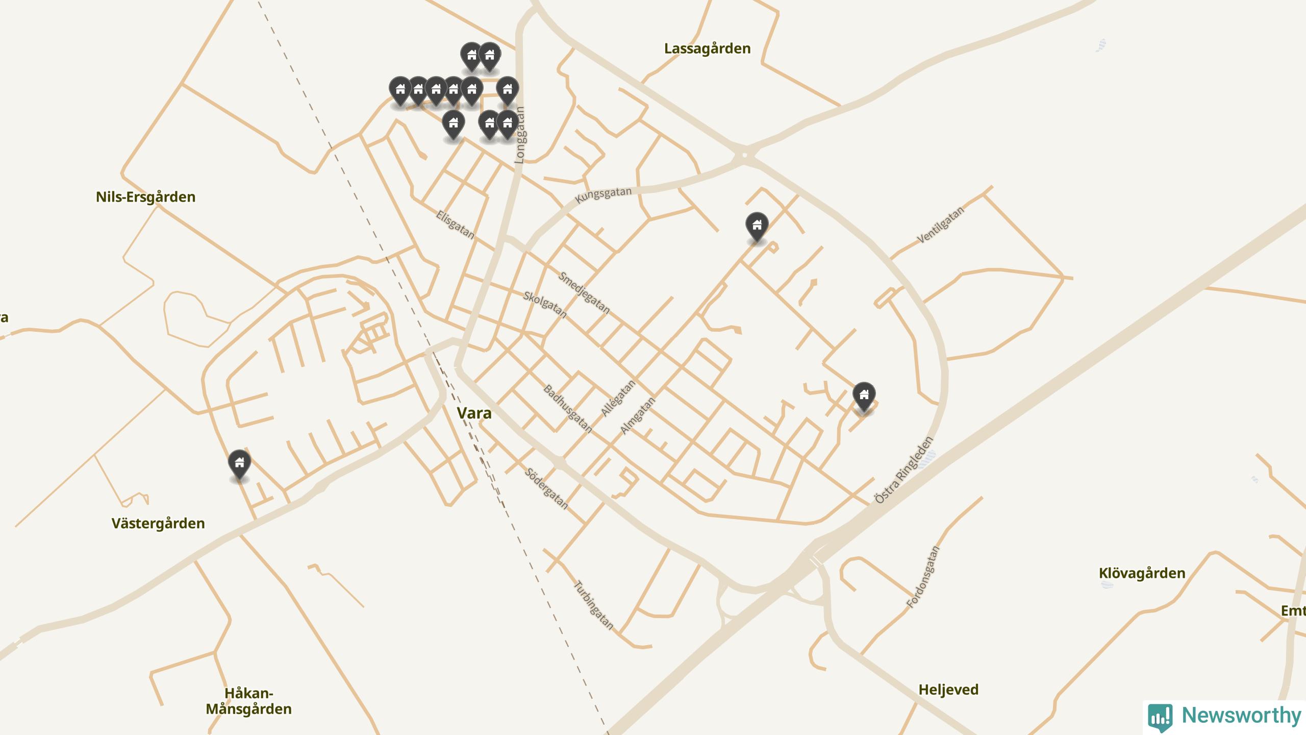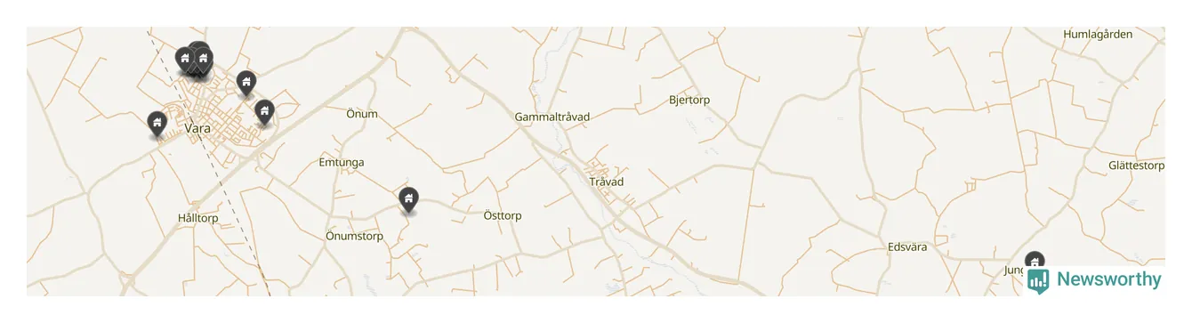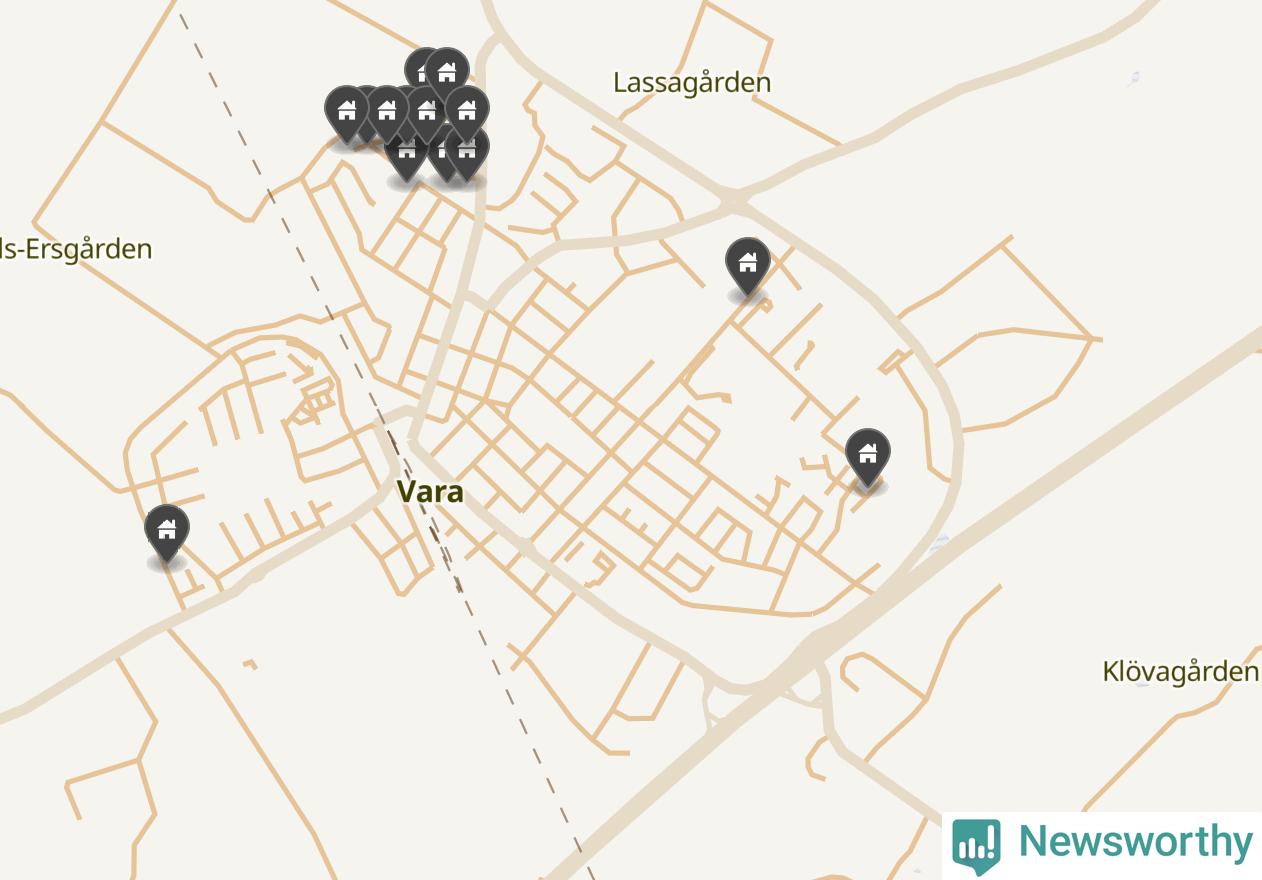 De 100 högst taxerade småhusfastigheterna i Vara har ett snittvärde på tre miljoner kronor, vilket är omkring tre miljoner lägre än snittet för alla kommuners 100 högst taxerade småhus. Det visar Newsworthys genomgång av kommunernas högst taxerade småhusfastigheter, som sammanställts med hjälp av data från The intelligence company.