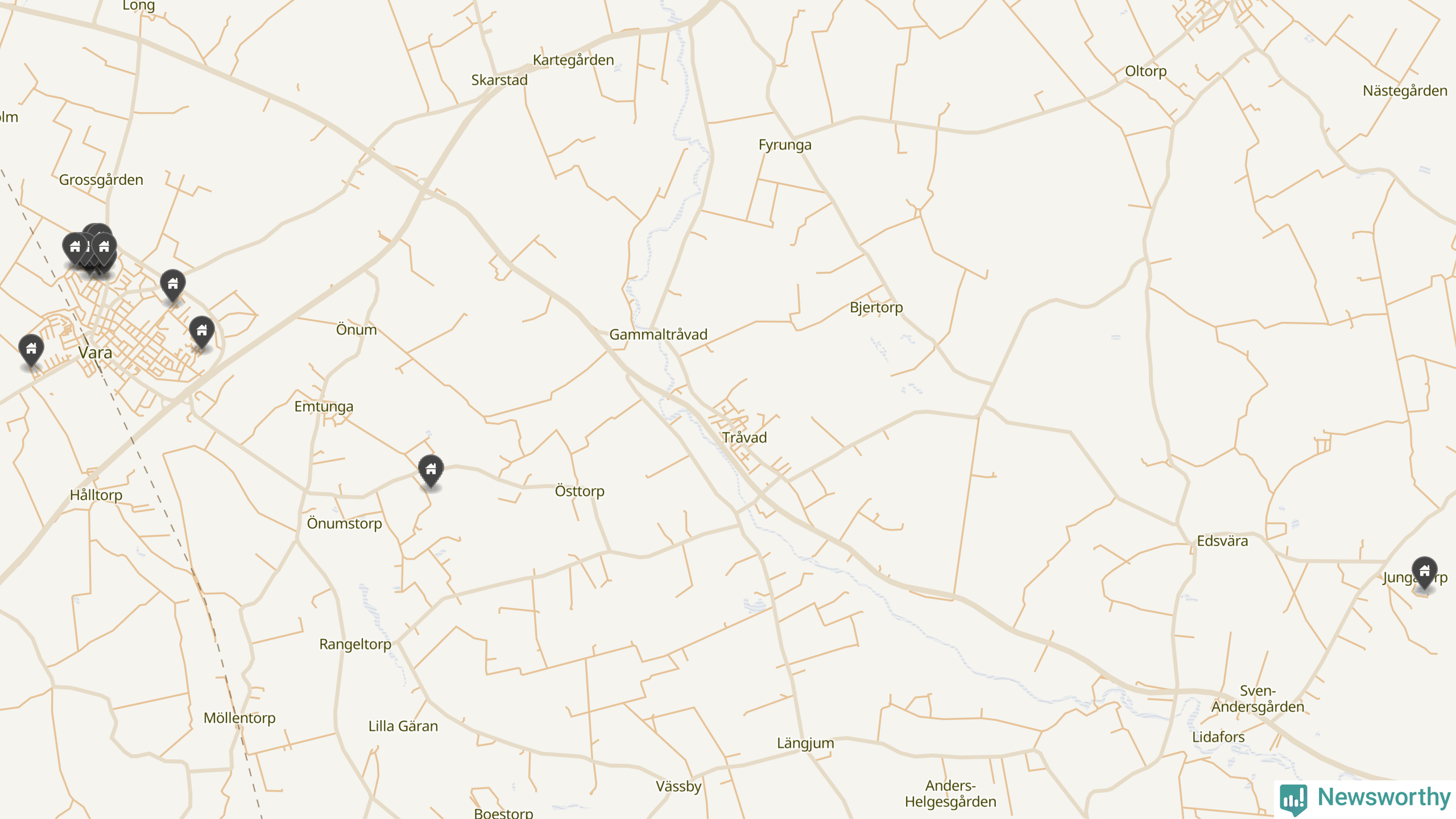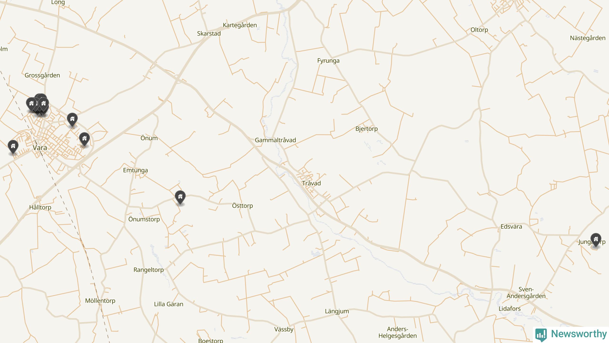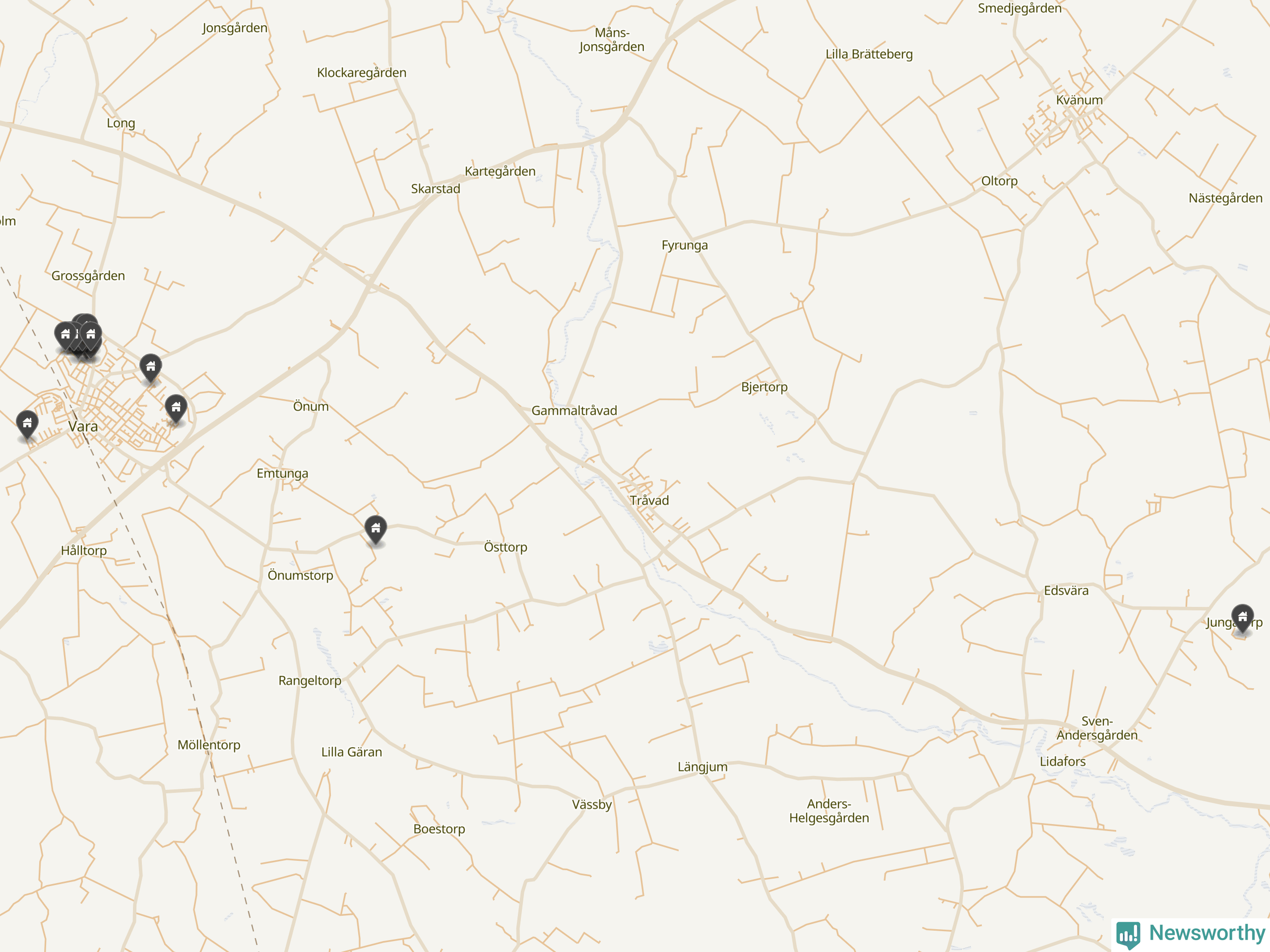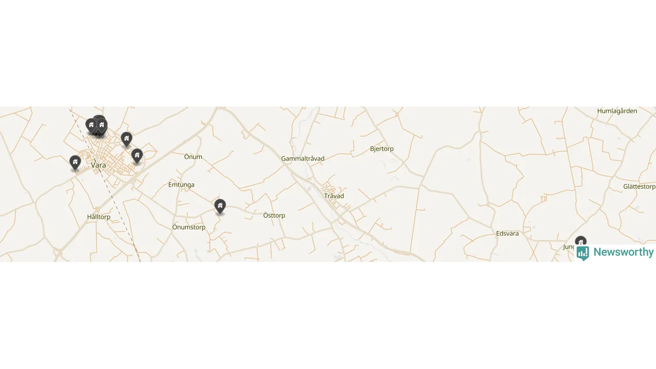 De 100 högst taxerade småhusfastigheterna i Vara har ett snittvärde på tre miljoner kronor, vilket är omkring tre miljoner lägre än snittet för alla kommuners 100 högst taxerade småhus. Det visar Newsworthys genomgång av kommunernas högst taxerade småhusfastigheter, som sammanställts med hjälp av data från The intelligence company.