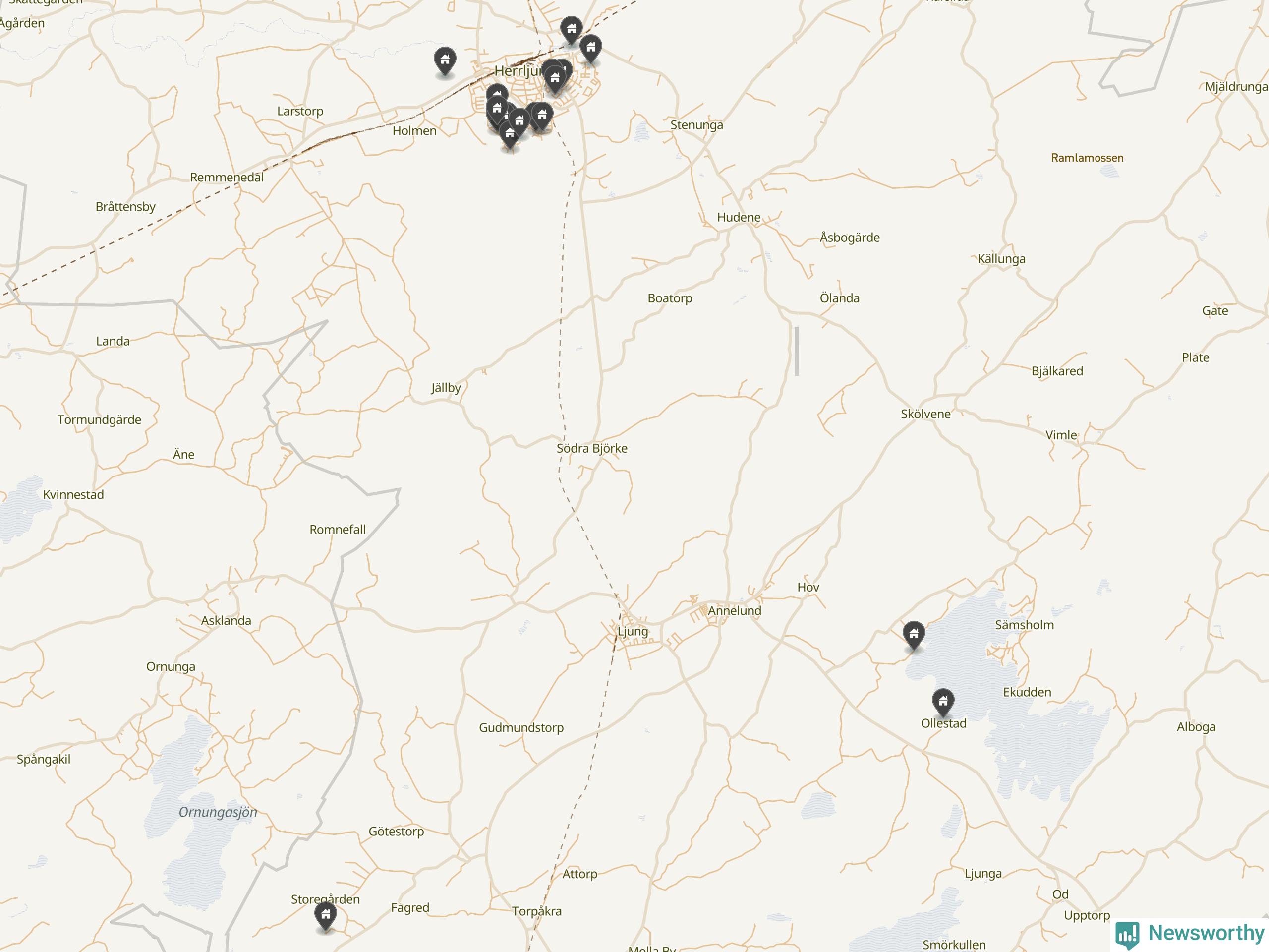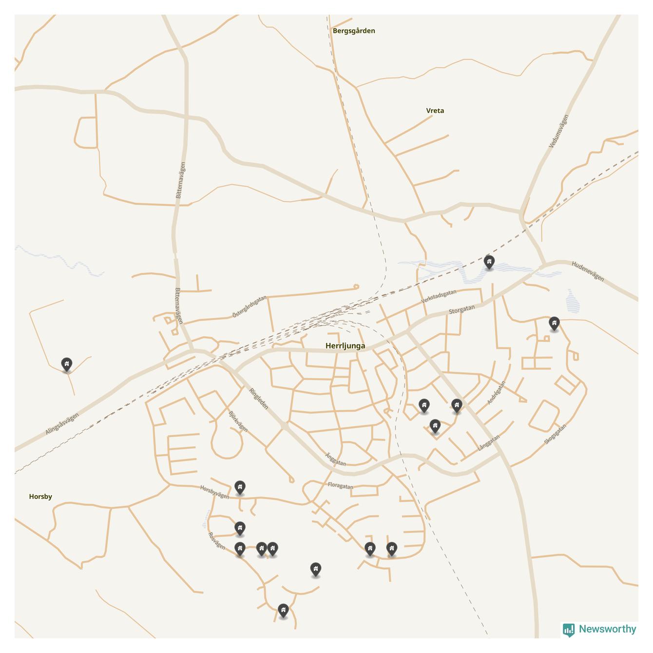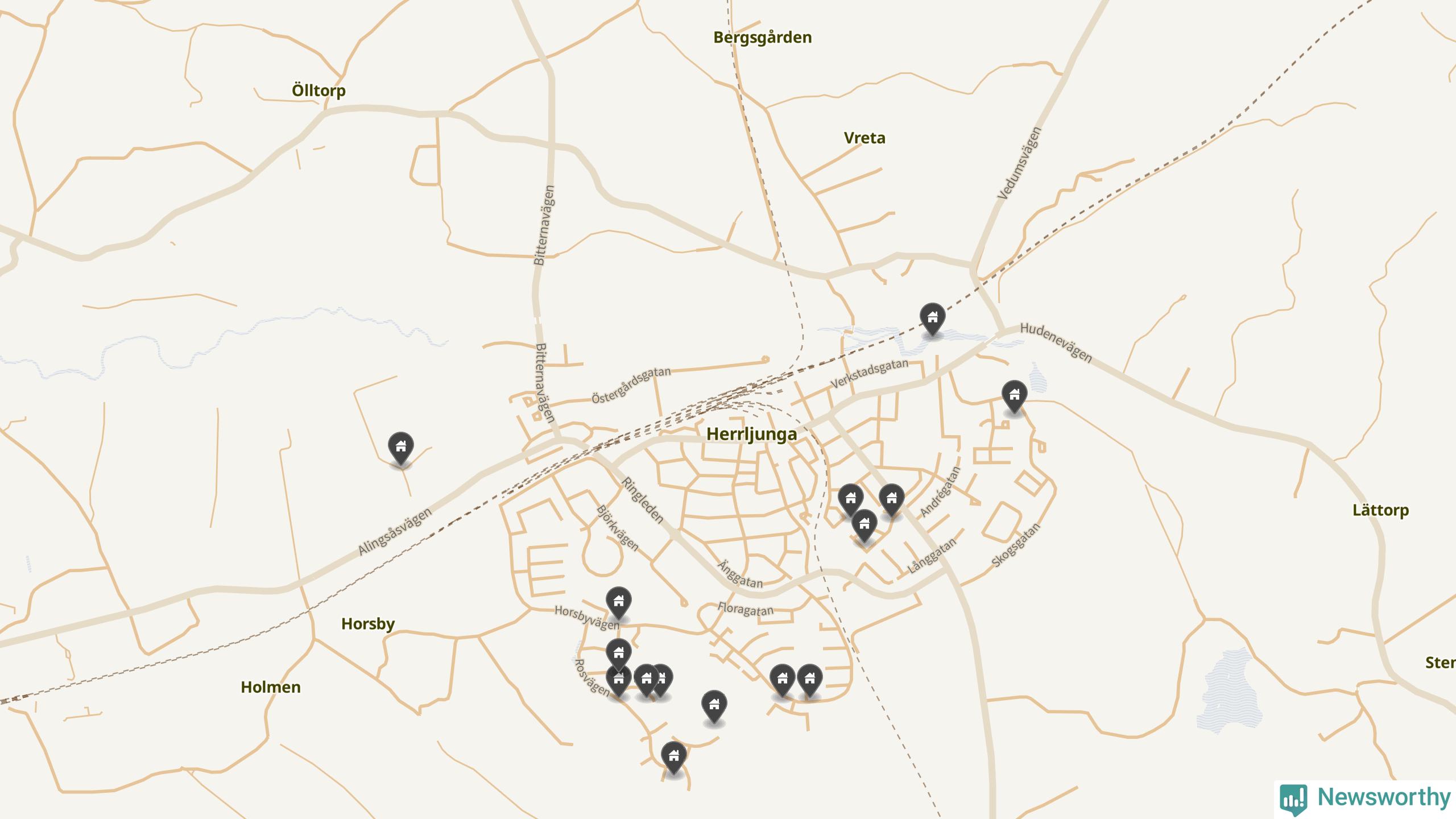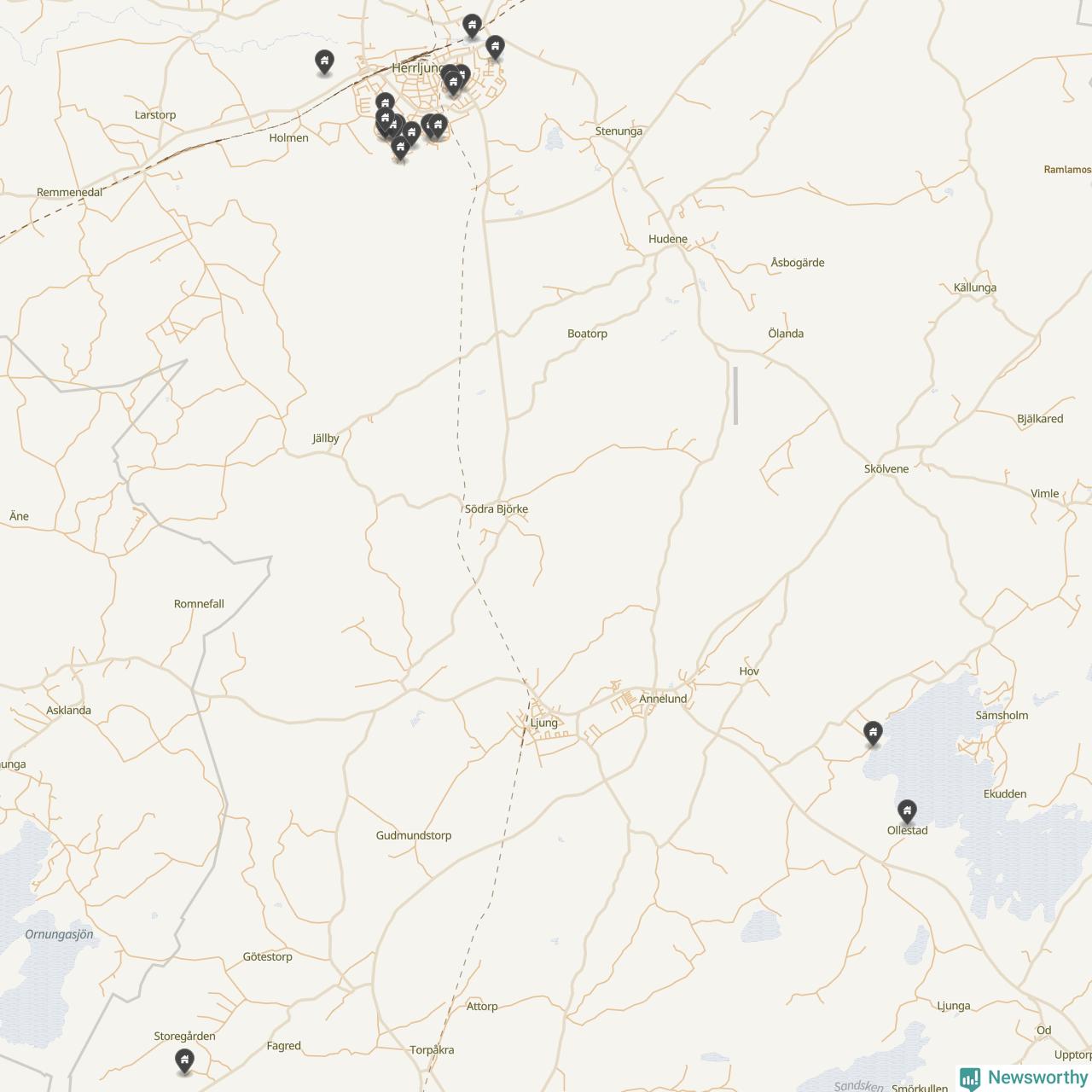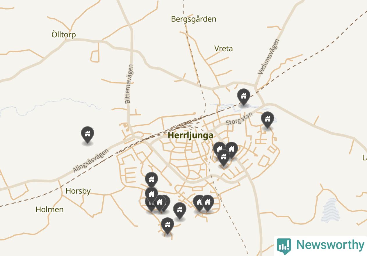 De 100 högst taxerade småhusfastigheterna i Herrljunga har ett snittvärde på 2,9 miljoner kronor, vilket är omkring tre miljoner lägre än snittet för alla kommuners 100 högst taxerade småhus. Det visar Newsworthys genomgång av kommunernas högst taxerade småhusfastigheter, som sammanställts med hjälp av data från The intelligence company.
