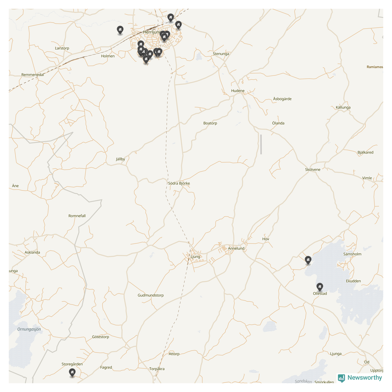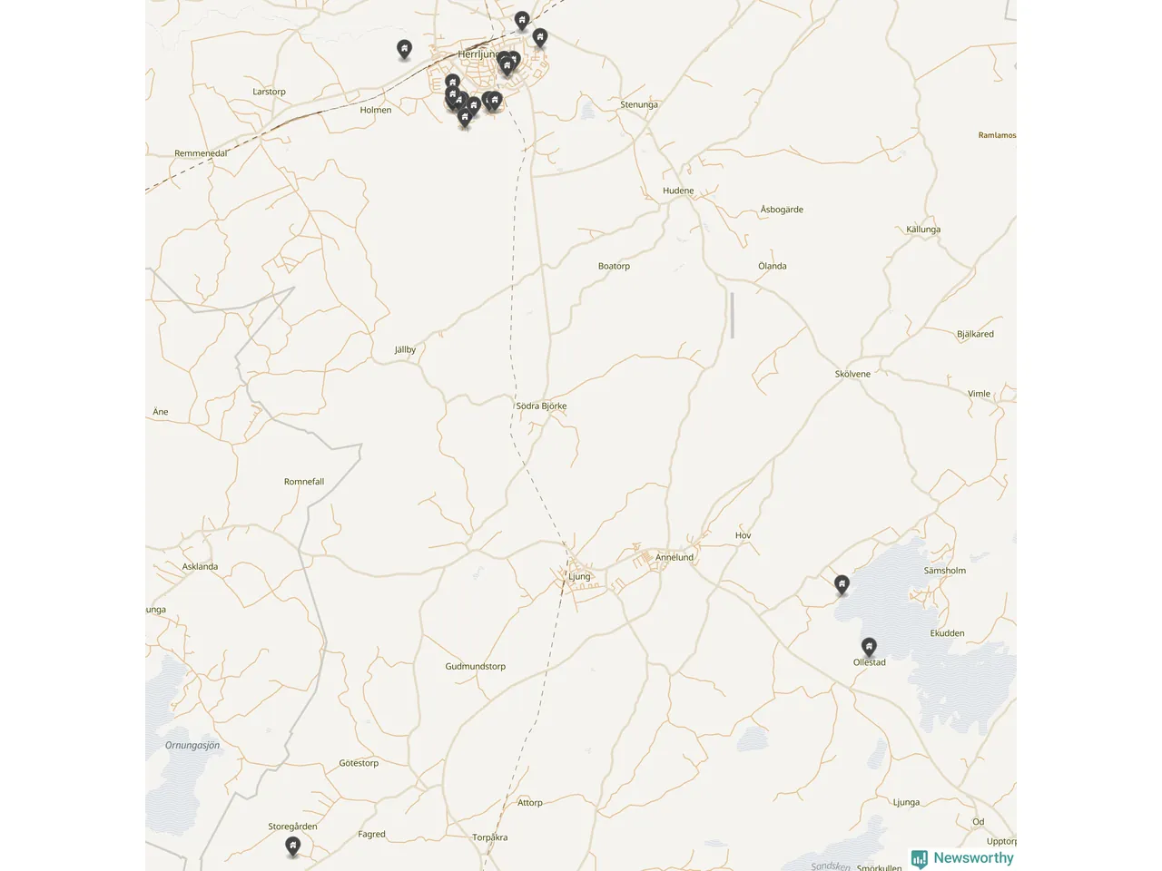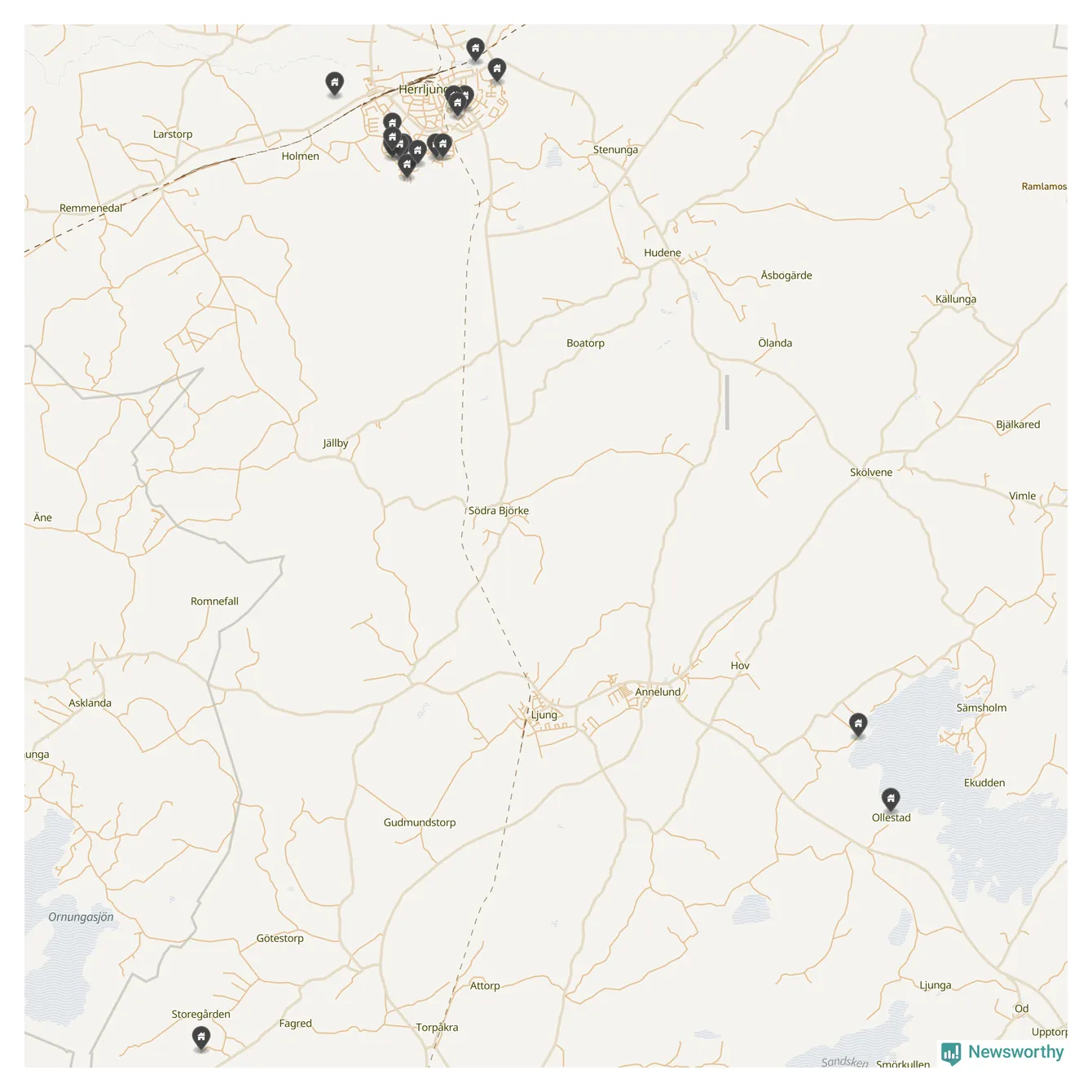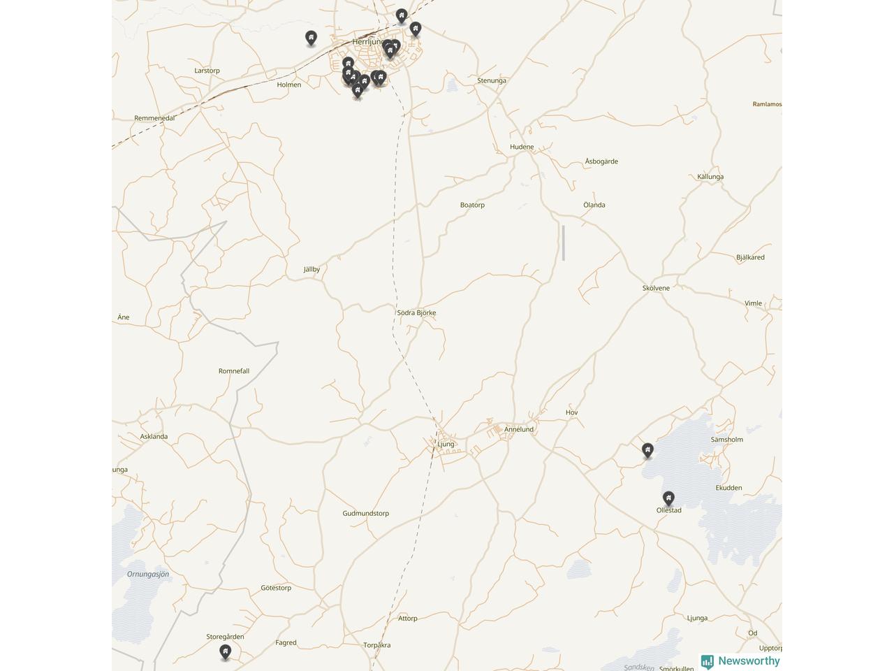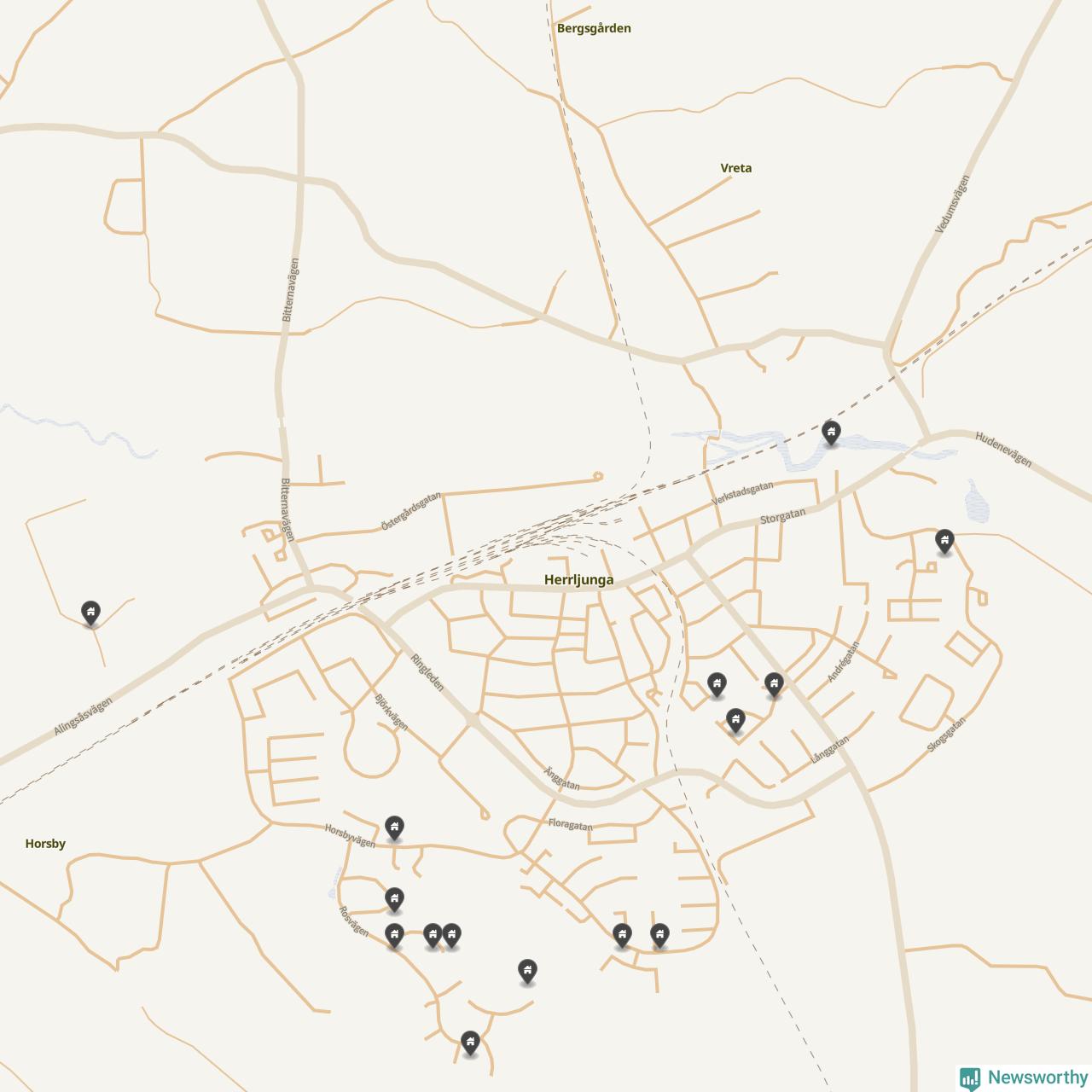 De 100 högst taxerade småhusfastigheterna i Herrljunga har ett snittvärde på 2,9 miljoner kronor, vilket är omkring tre miljoner lägre än snittet för alla kommuners 100 högst taxerade småhus. Det visar Newsworthys genomgång av kommunernas högst taxerade småhusfastigheter, som sammanställts med hjälp av data från The intelligence company.