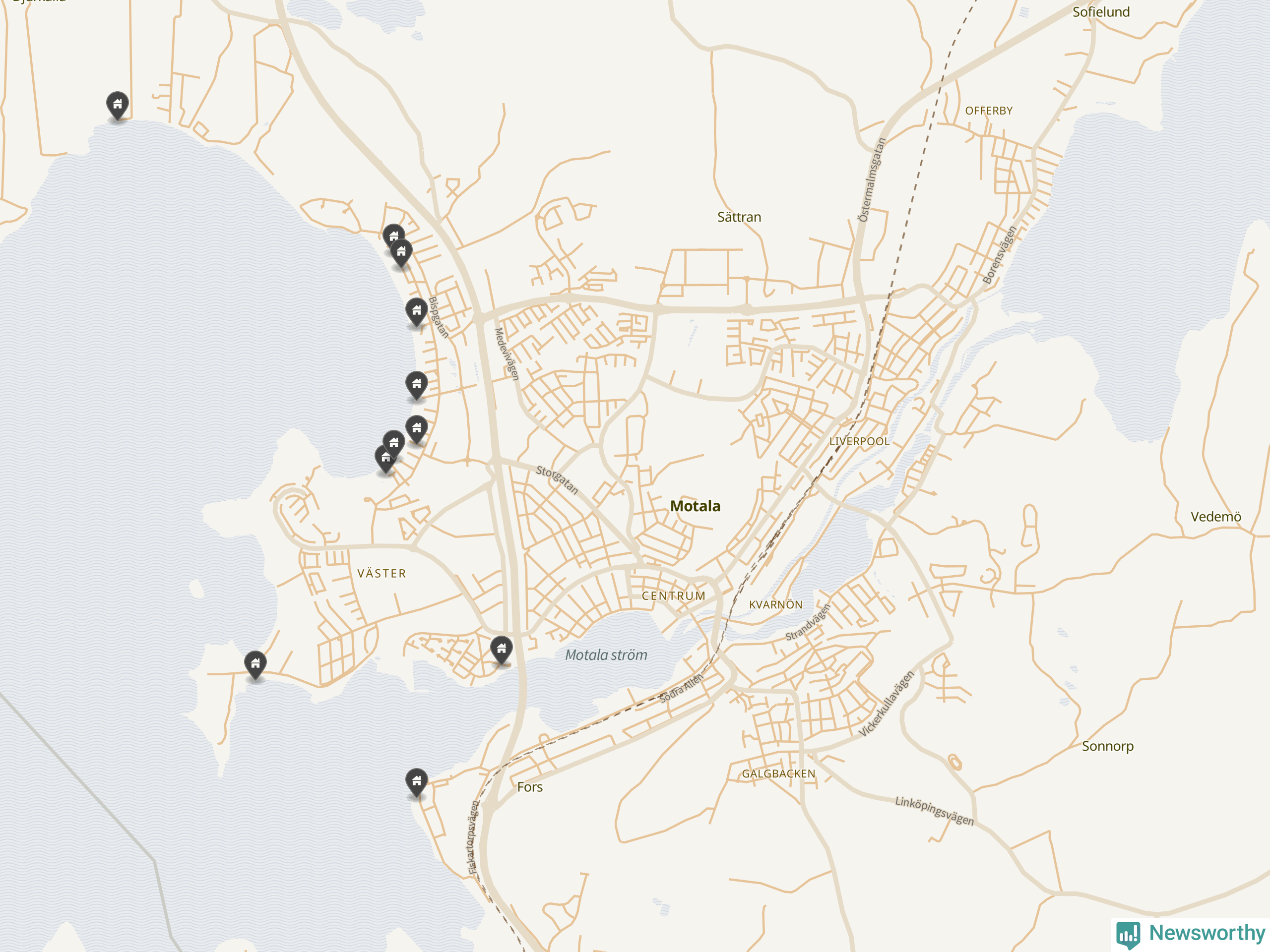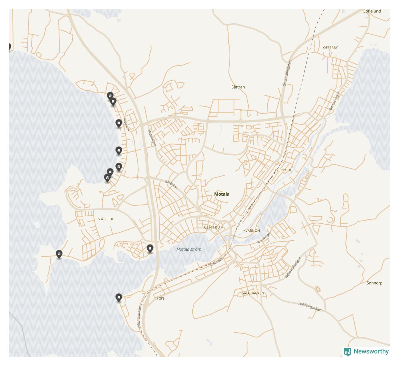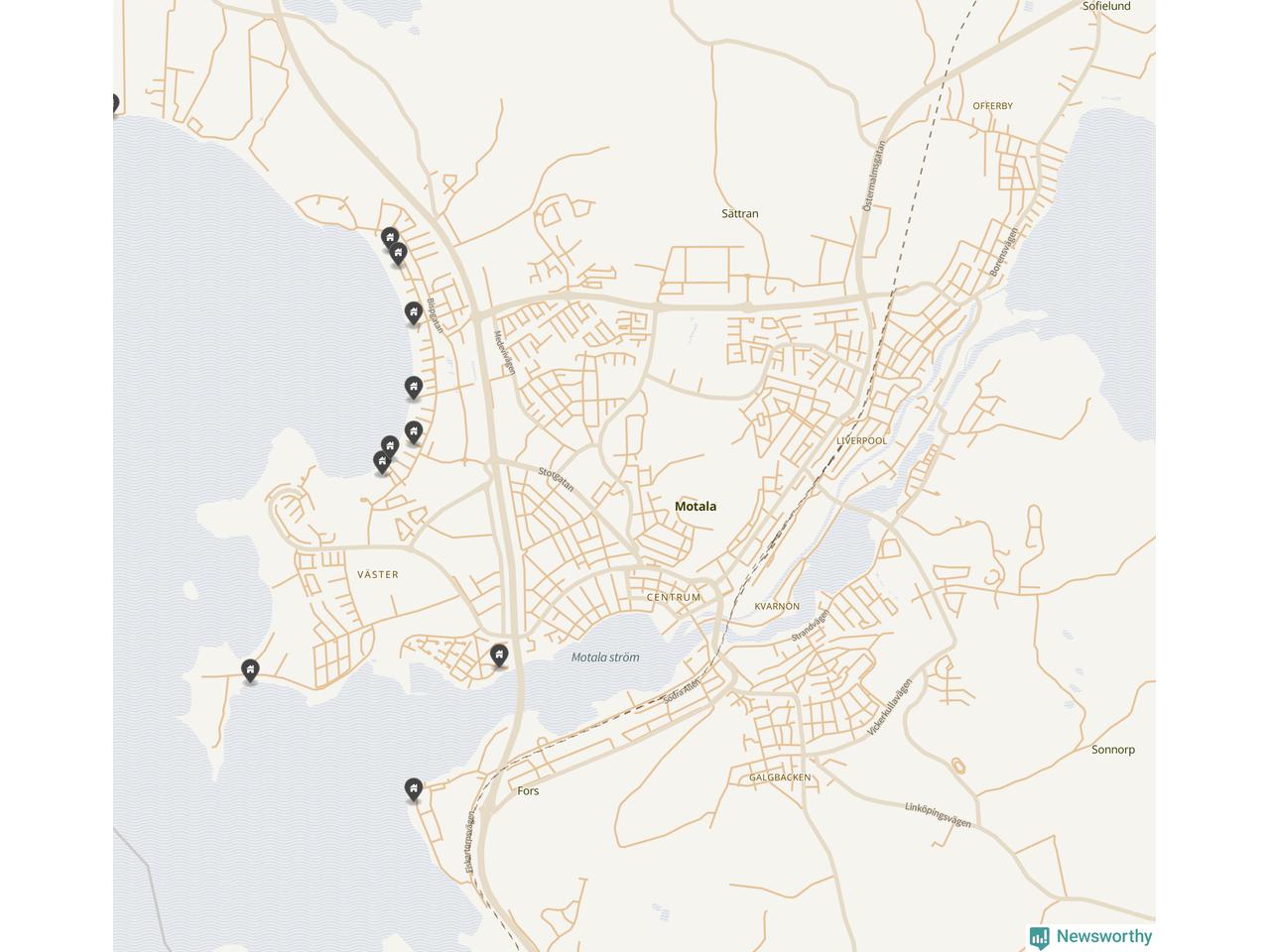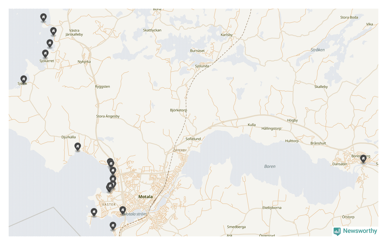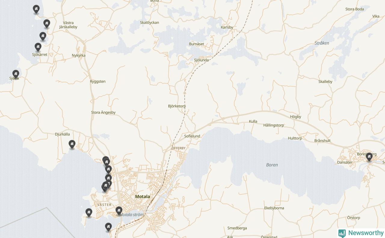 De 100 högst taxerade småhusfastigheterna i Motala har ett snittvärde på 5,9 miljoner kronor, vilket är något lägre än snittet för alla kommuners 100 högst taxerade småhus. Det visar Newsworthys genomgång av kommunernas högst taxerade småhusfastigheter, som sammanställts med hjälp av data från The intelligence company.