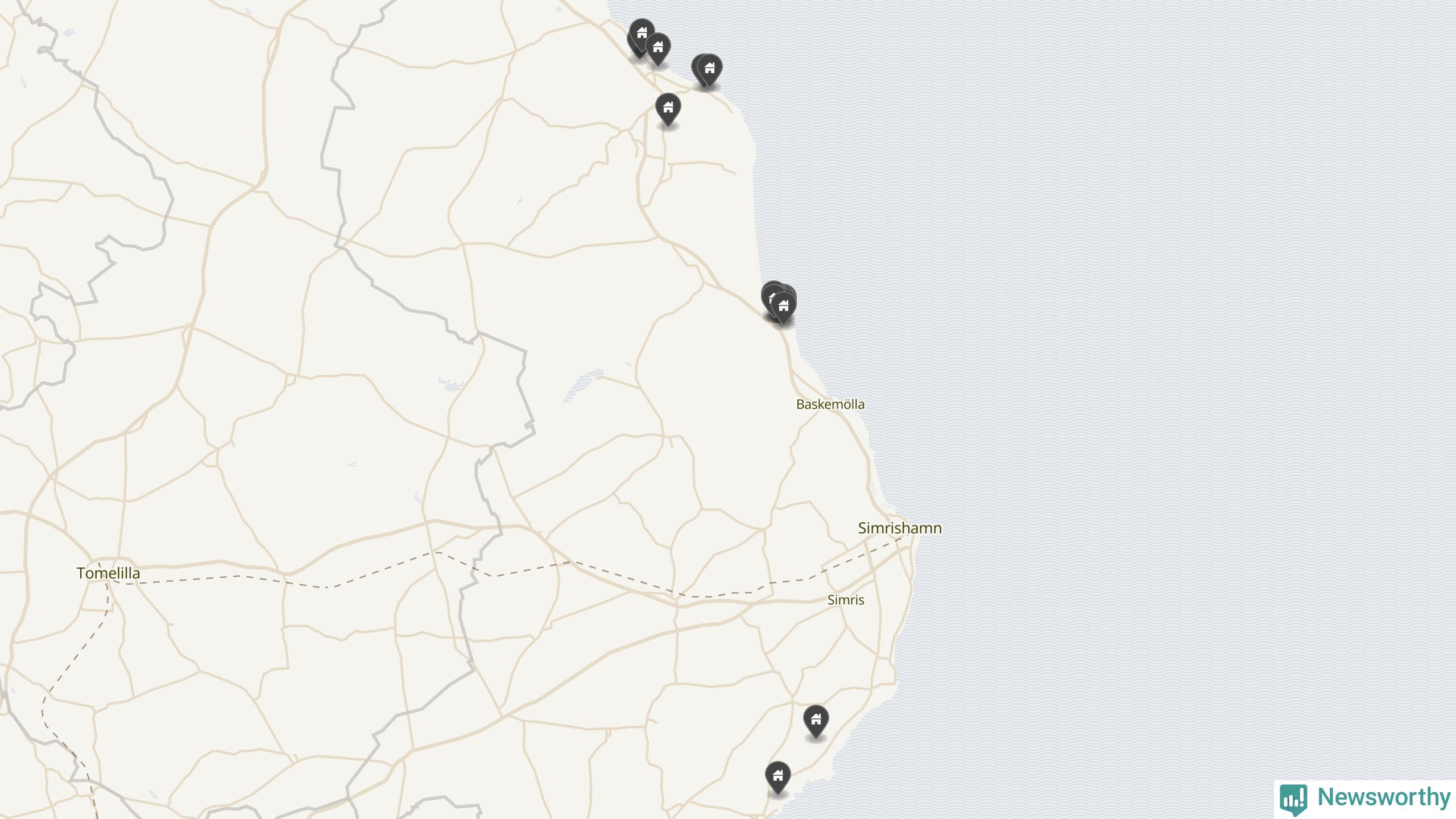 | 38 | Simrishamn Vitemölla 3:1 | Lejegatan 21 | 8,9 miljoner | Ingen uppgift | Visa |
