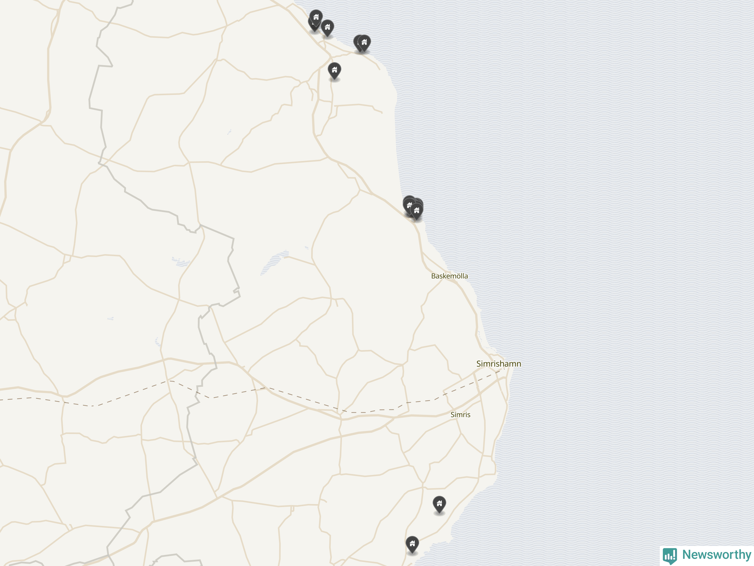 | 30 | Simrishamn Backen 1:69 | Viks Stora Väg 16 | 9,1 miljoner | 3 169 m² | Visa |