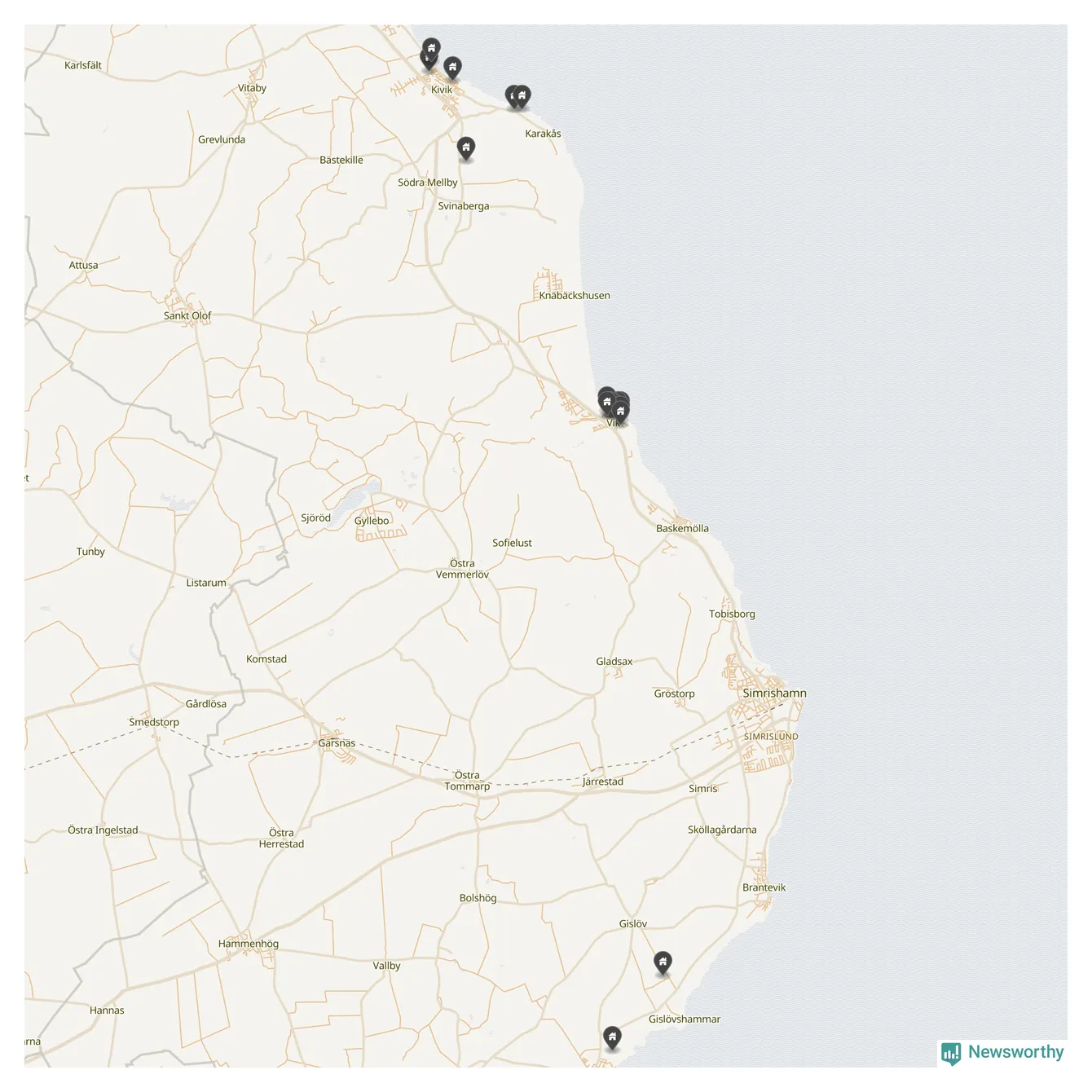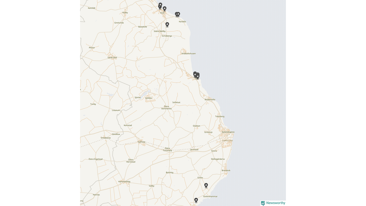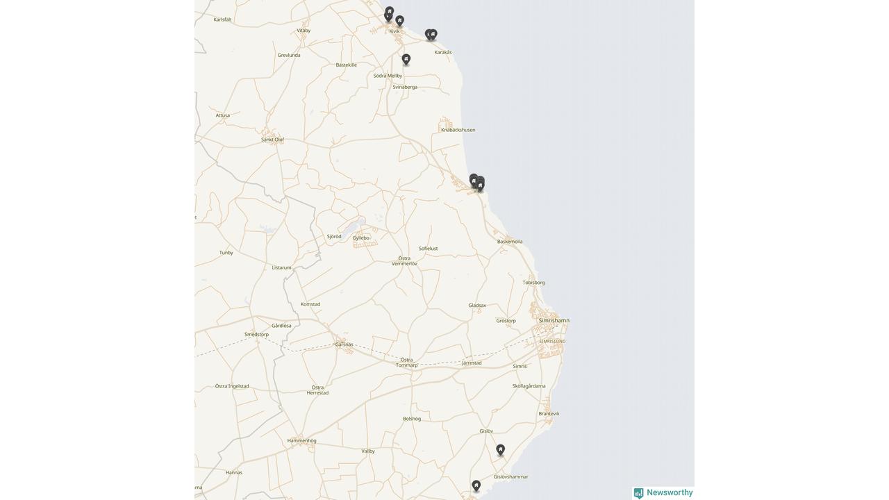 | 1 | Simrishamn Gislöv 10:3 | Gråssemadsvägen 7 m.fl. | 17,1 miljoner | 6 570 m² | Visa |
