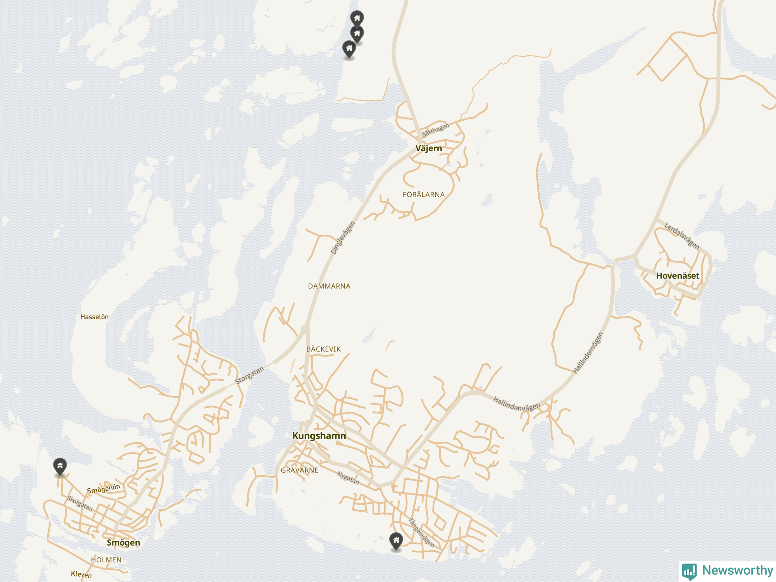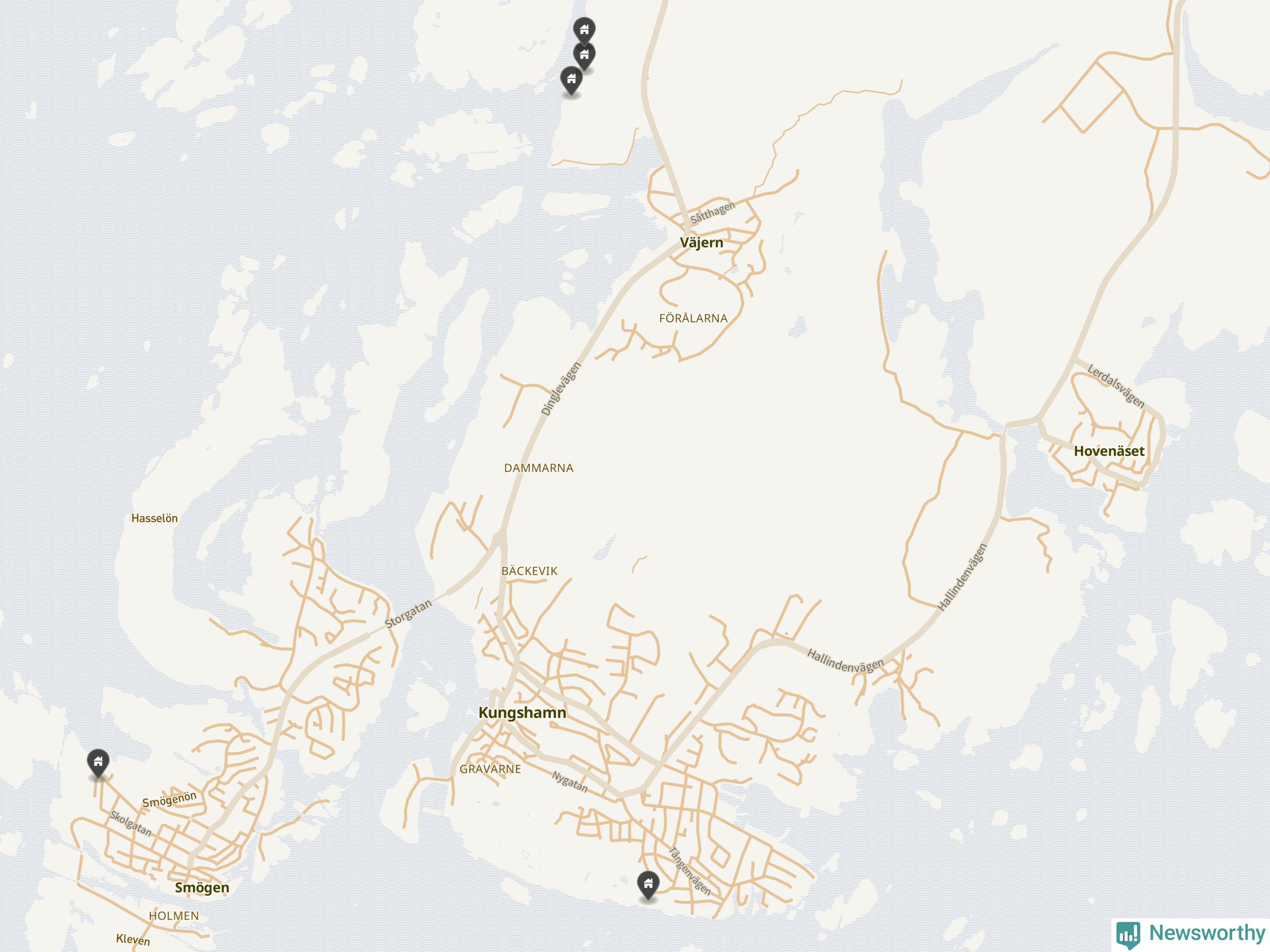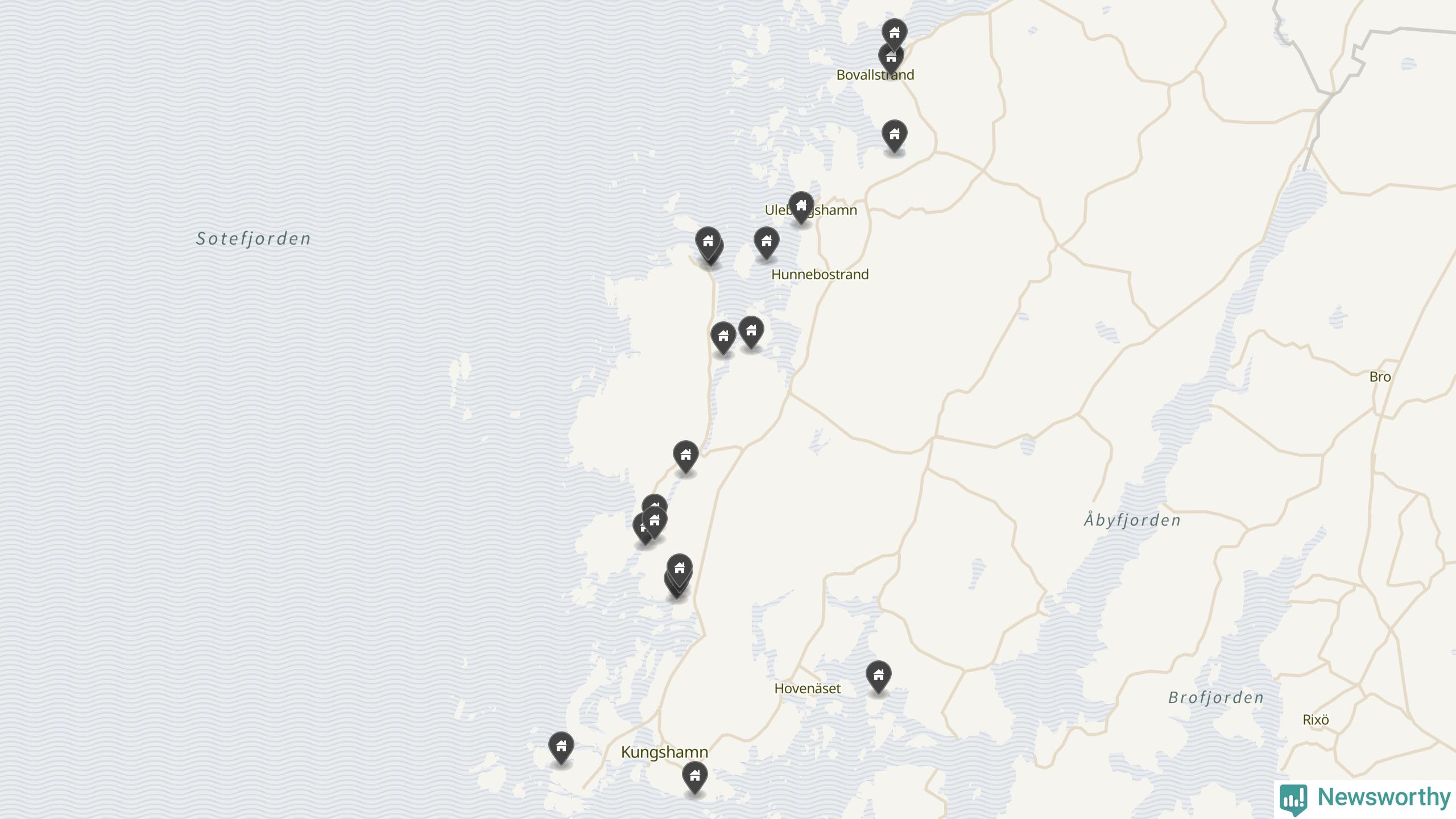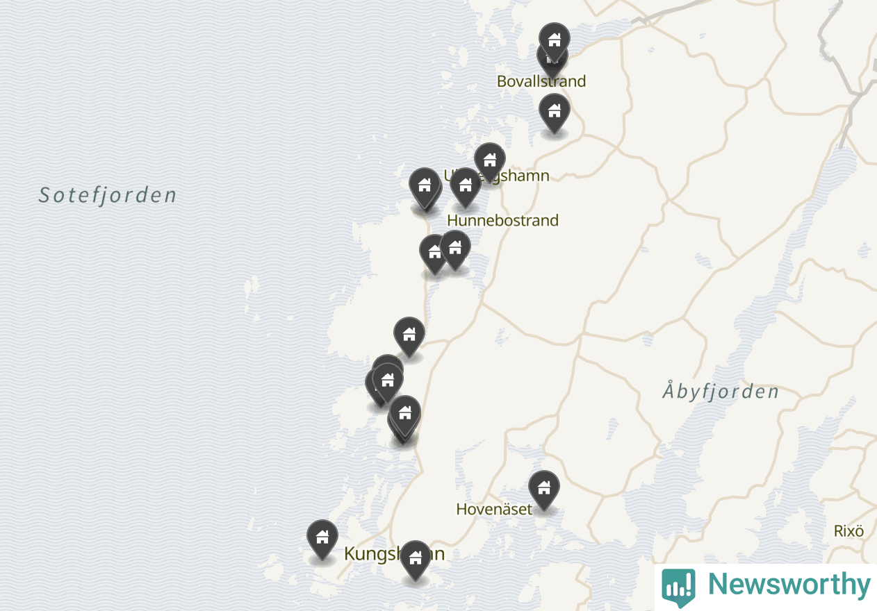 De 100 högst taxerade småhusfastigheterna i Sotenäs har ett snittvärde på 9,8 miljoner kronor, vilket är omkring fyra miljoner högre än snittet för alla kommuners 100 högst taxerade småhus. Det visar Newsworthys genomgång av kommunernas högst taxerade småhusfastigheter, som sammanställts med hjälp av data från The intelligence company.