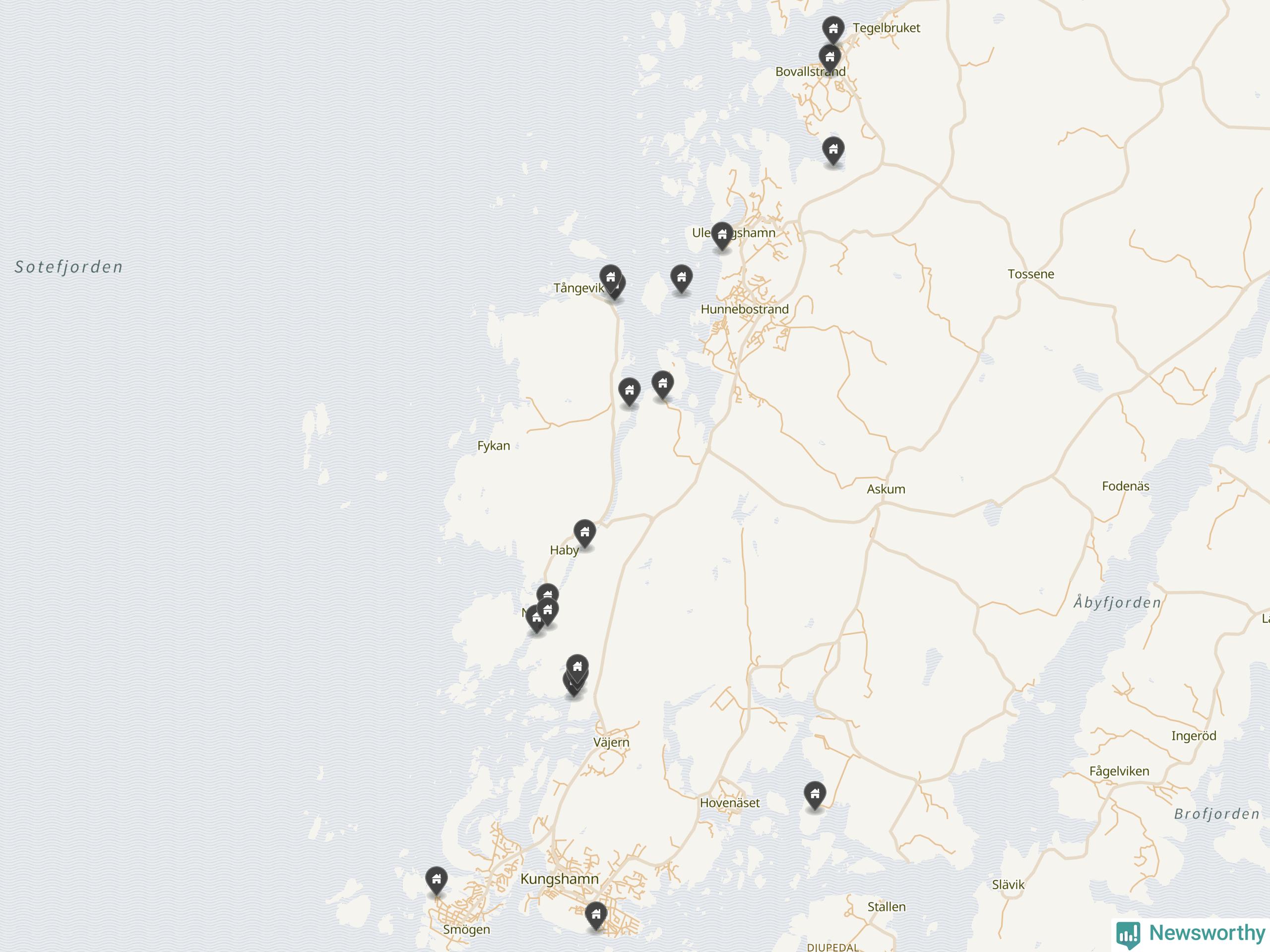 34 | Sotenäs Ramsvik 3:51 | Ramsvik Framgård 5 | 9,8 miljoner | 1 201 m² | Visa |
