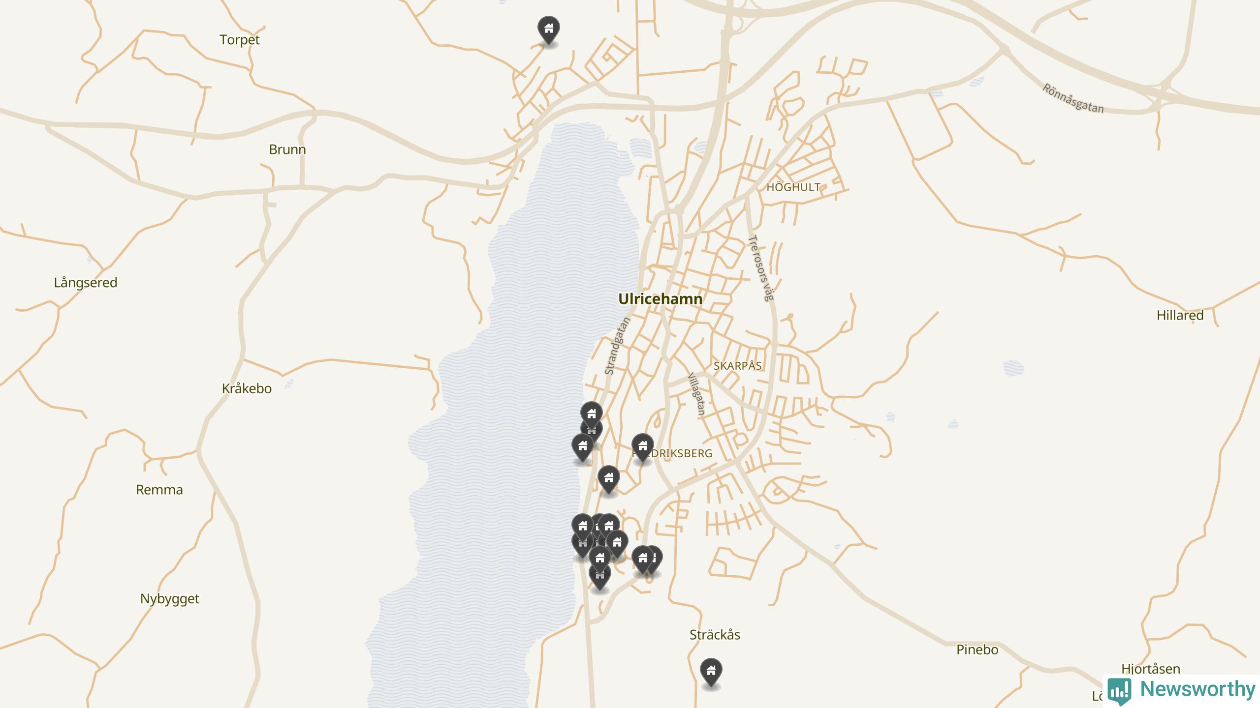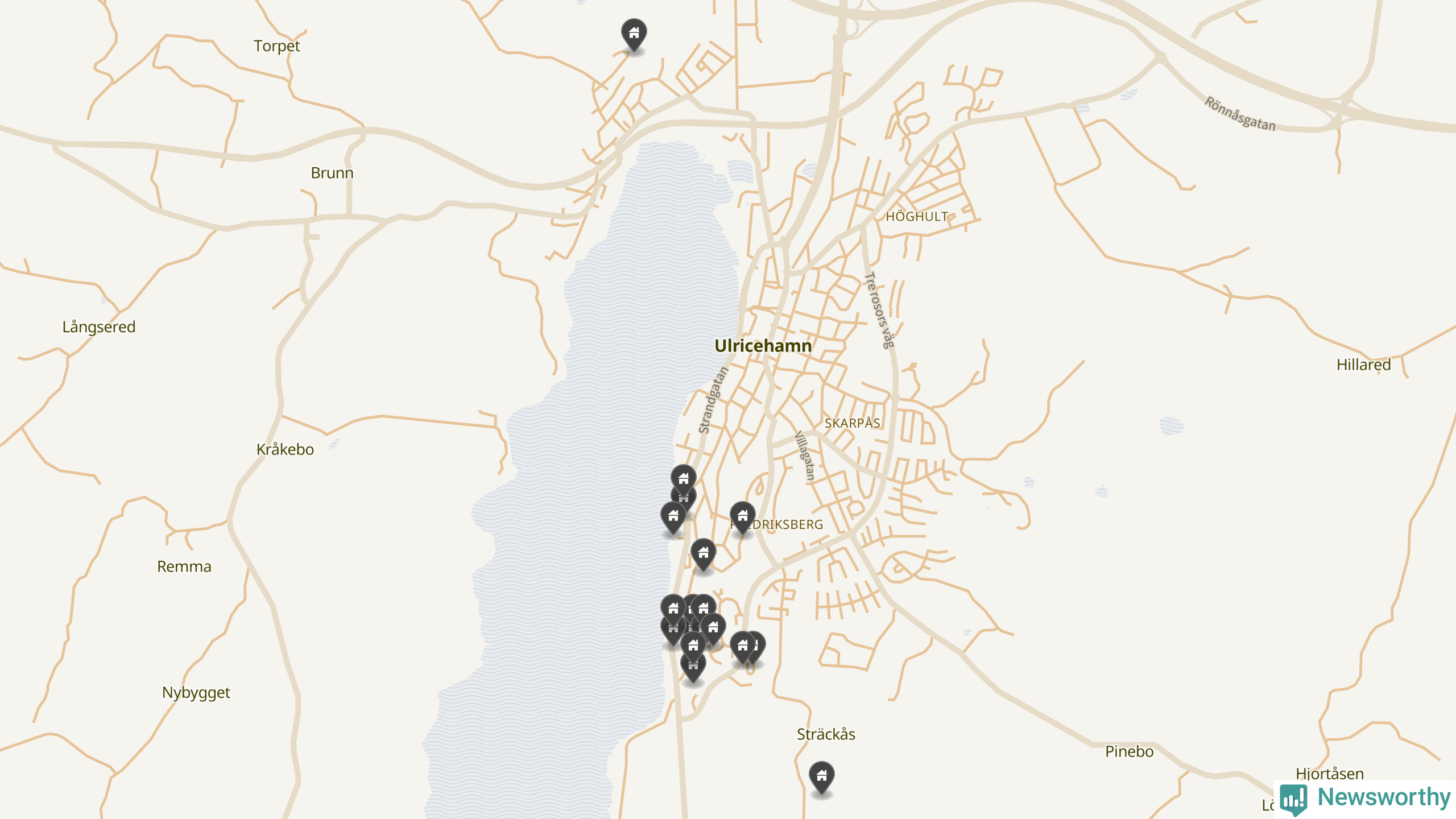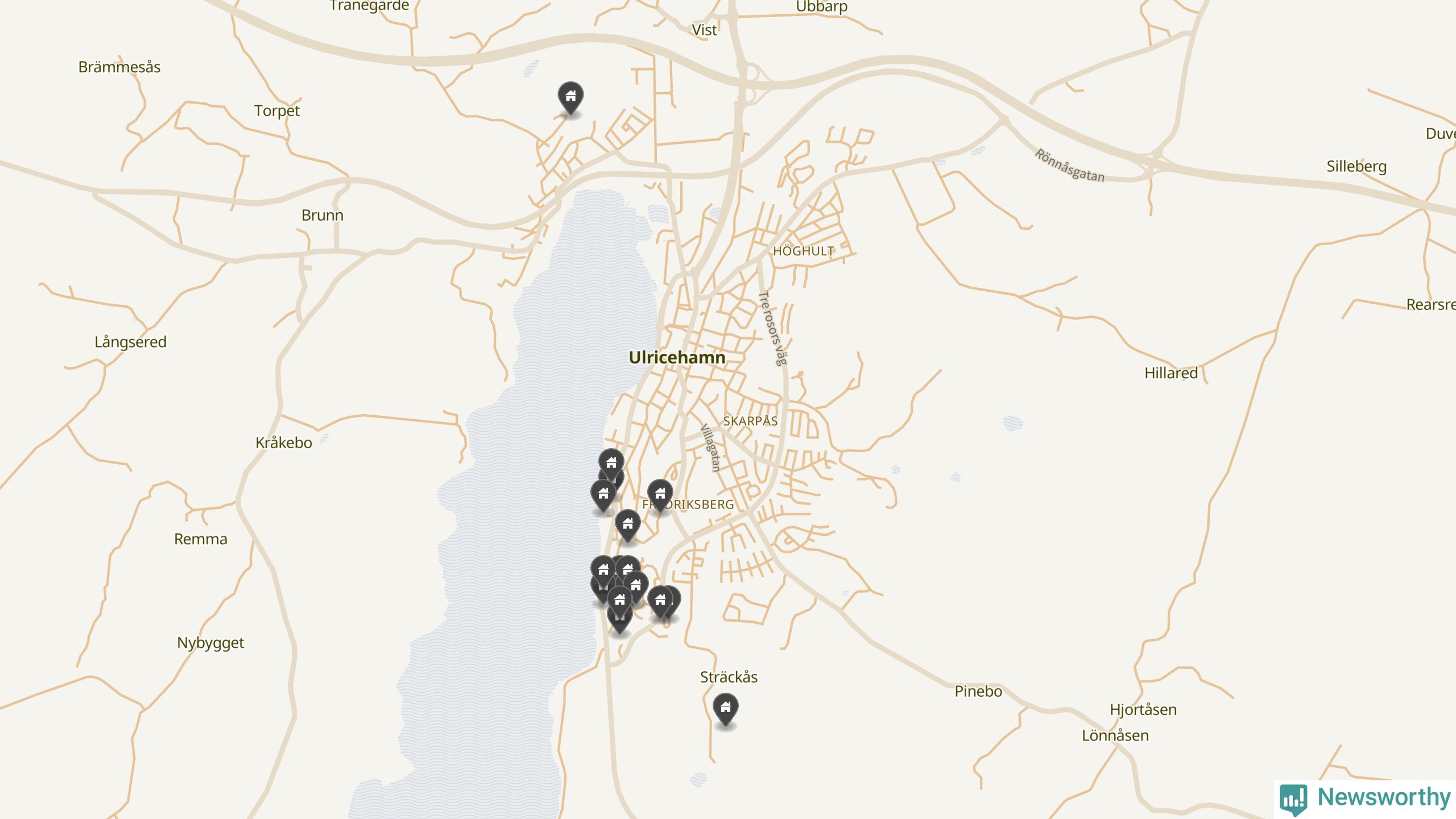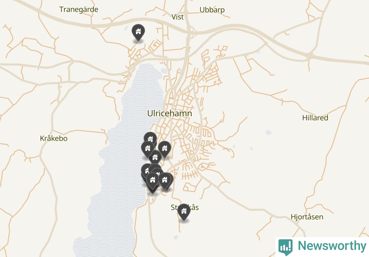 De 100 högst taxerade småhusfastigheterna i Ulricehamn har ett snittvärde på 4,6 miljoner kronor, vilket är omkring två miljoner lägre än snittet för alla kommuners 100 högst taxerade småhus. Det visar Newsworthys genomgång av kommunernas högst taxerade småhusfastigheter, som sammanställts med hjälp av data från The intelligence company.