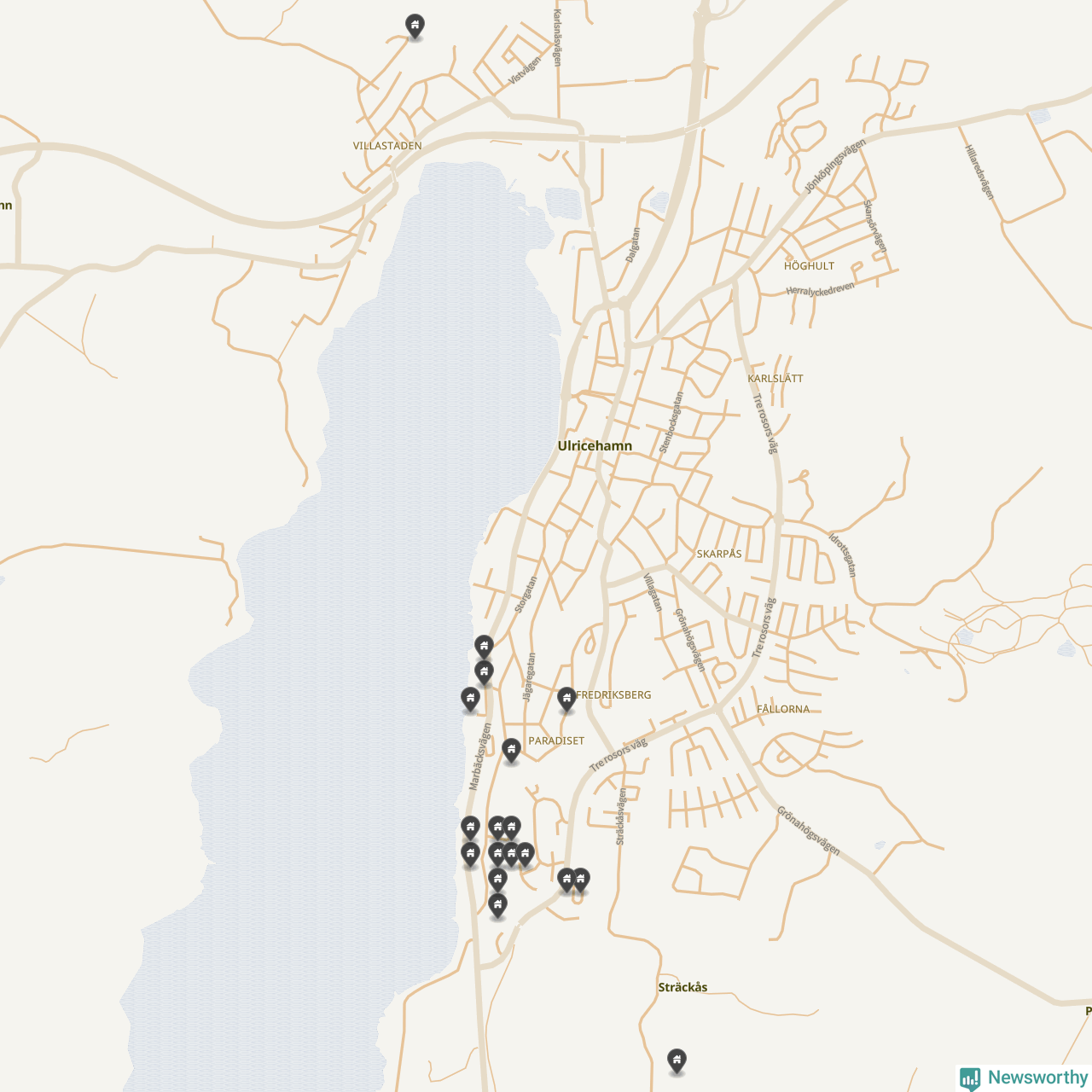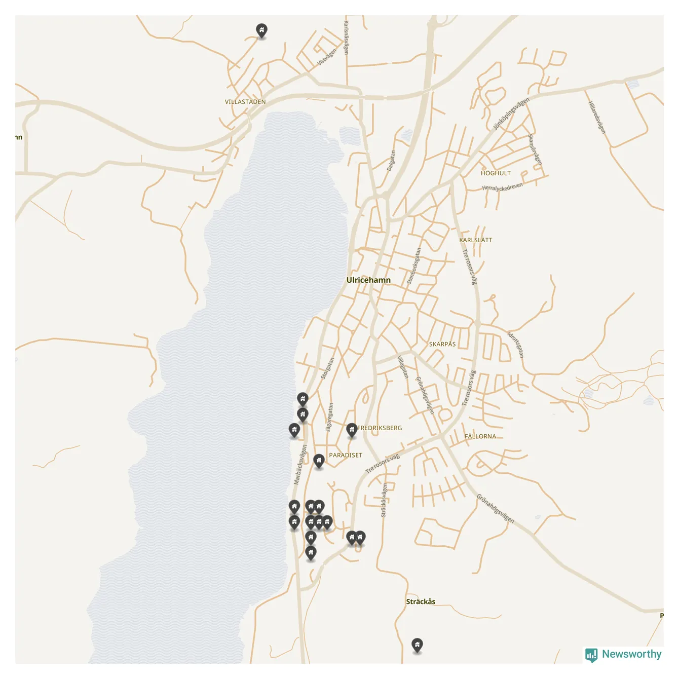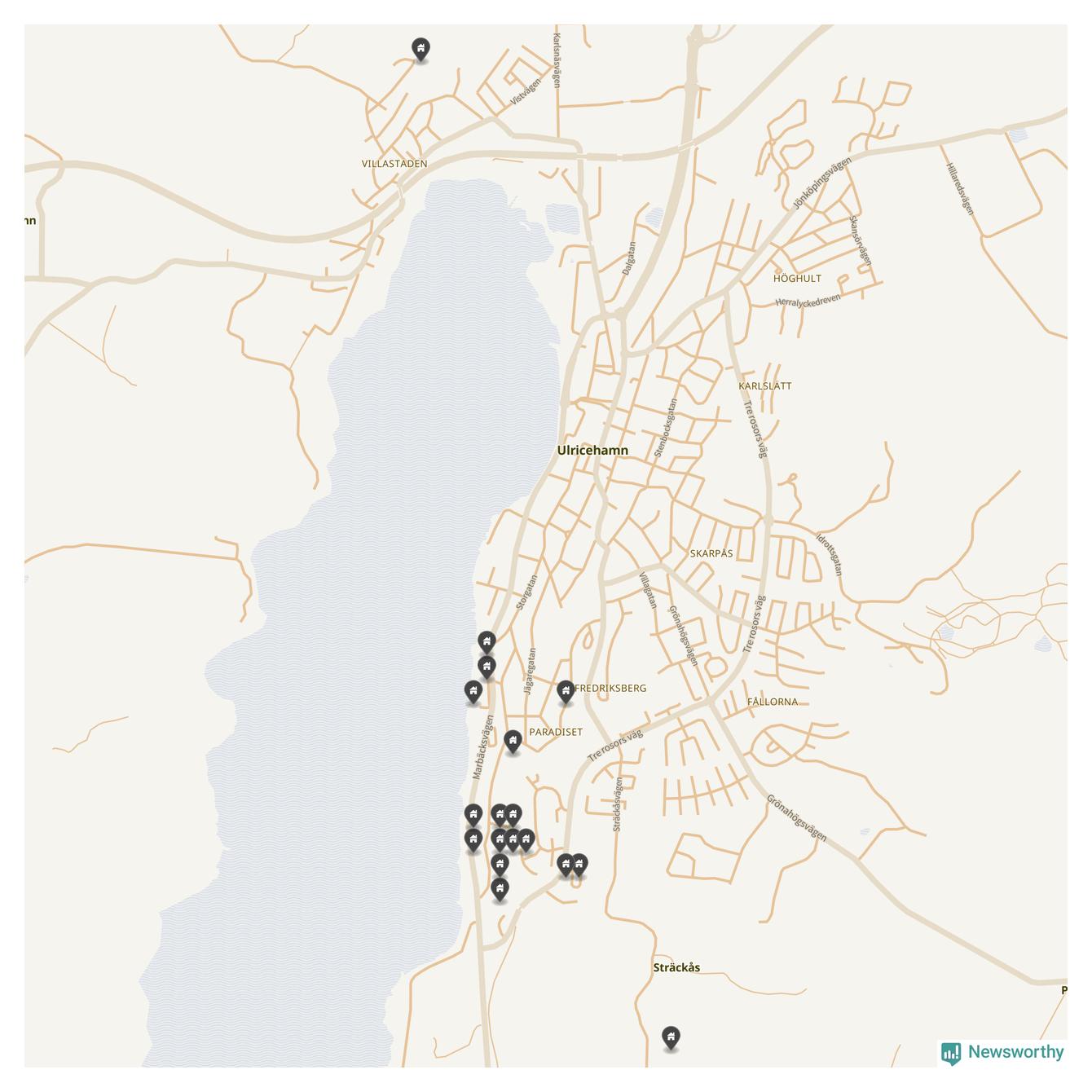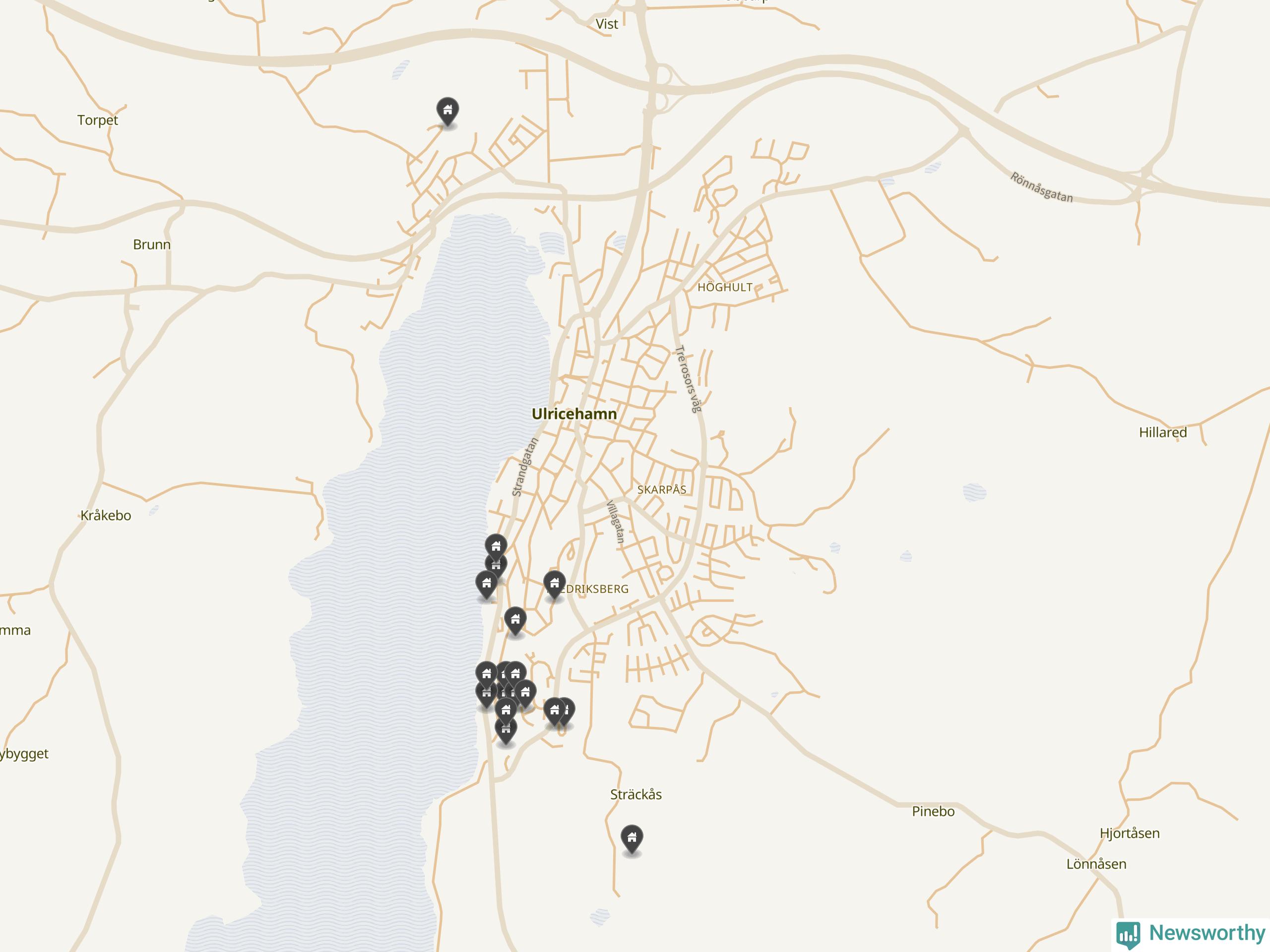 De 100 högst taxerade småhusfastigheterna i Ulricehamn har ett snittvärde på 4,6 miljoner kronor, vilket är omkring två miljoner lägre än snittet för alla kommuners 100 högst taxerade småhus. Det visar Newsworthys genomgång av kommunernas högst taxerade småhusfastigheter, som sammanställts med hjälp av data från The intelligence company.