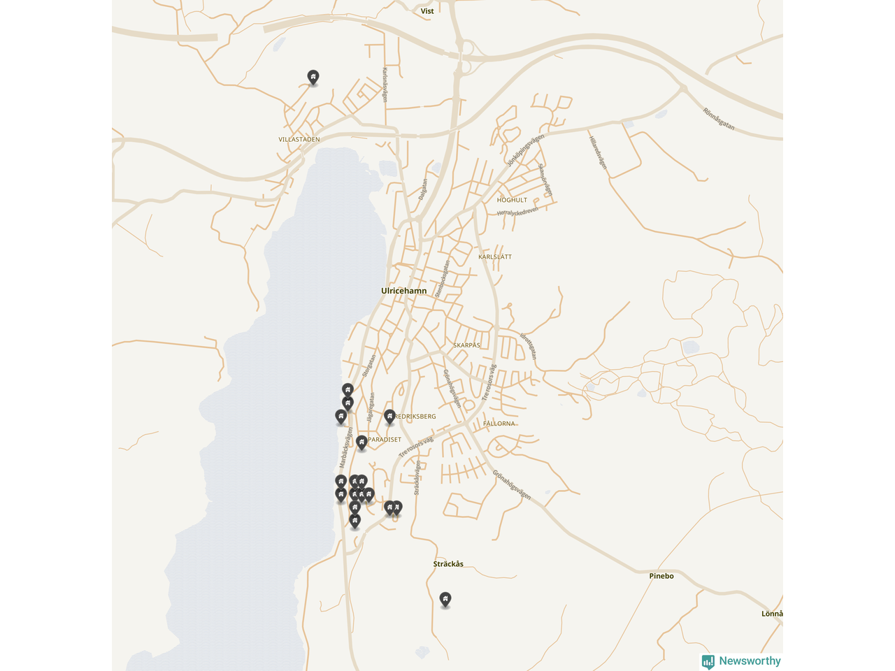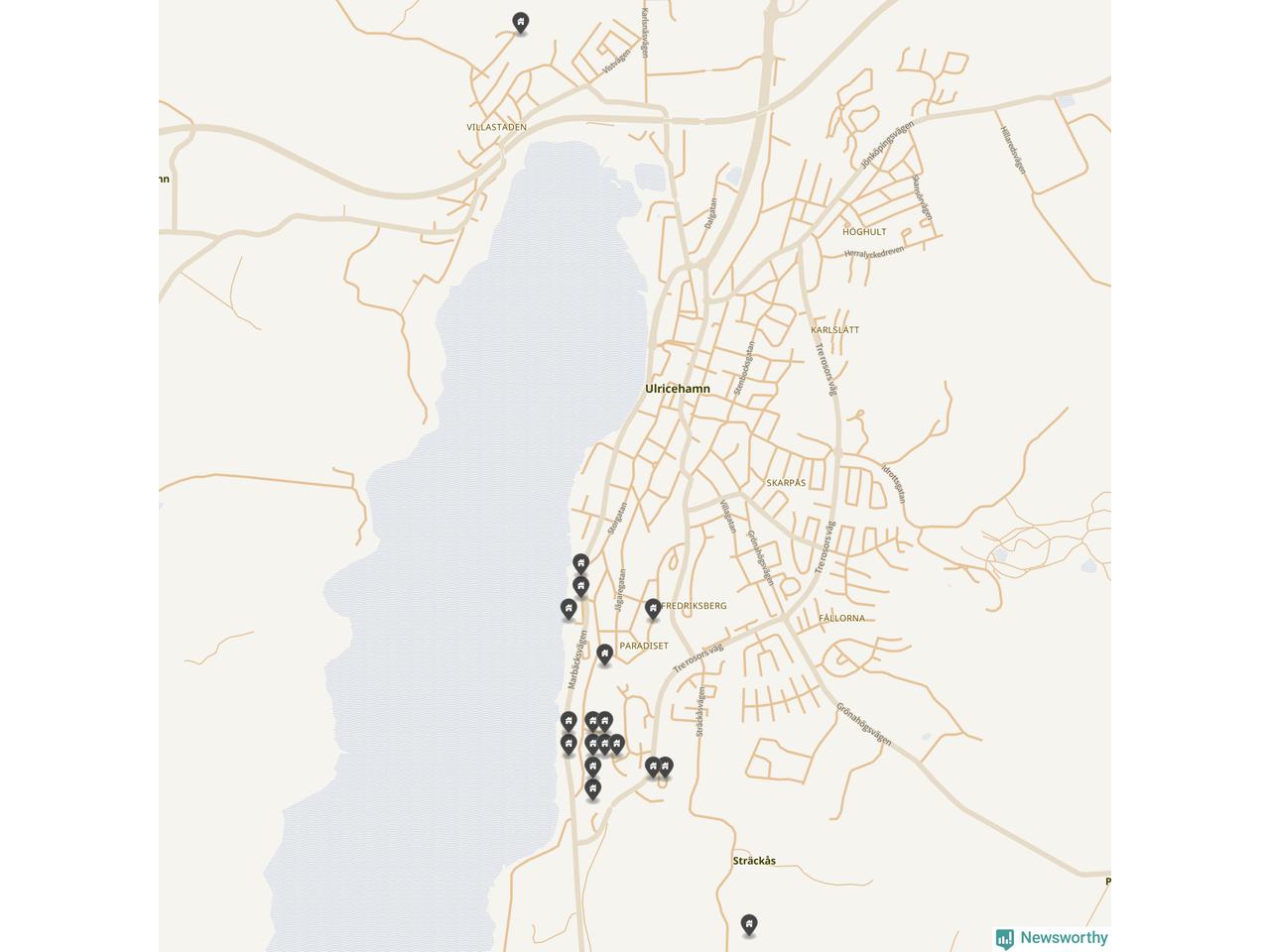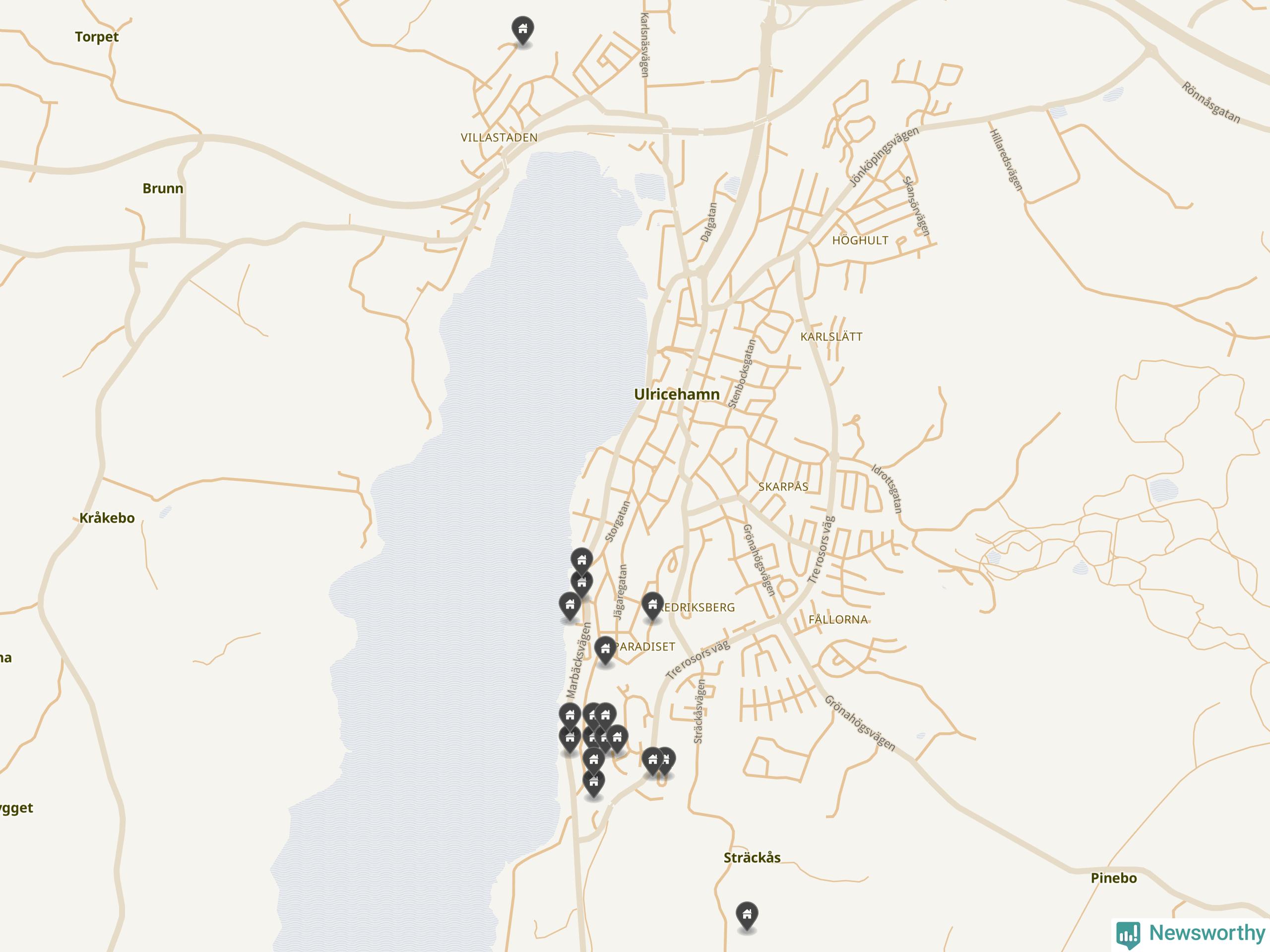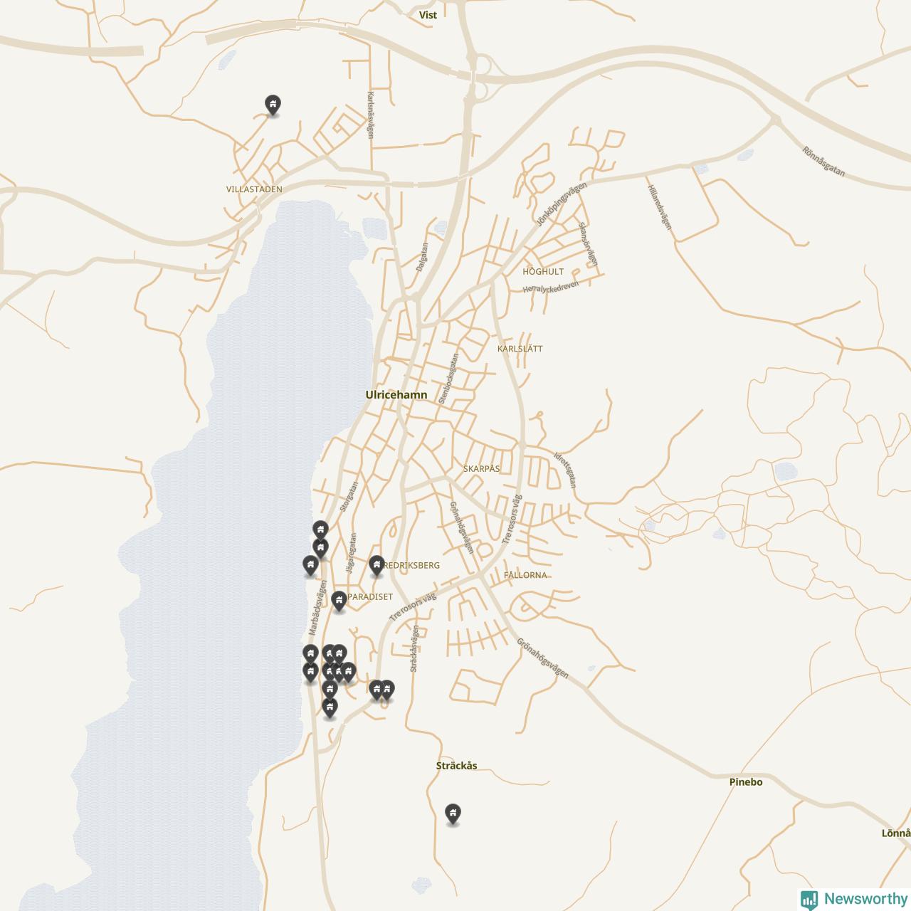De 100 högst taxerade småhusfastigheterna i Ulricehamn har ett snittvärde på 4,6 miljoner kronor, vilket är omkring två miljoner lägre än snittet för alla kommuners 100 högst taxerade småhus. Det visar Newsworthys genomgång av kommunernas högst taxerade småhusfastigheter, som sammanställts med hjälp av data från The intelligence company.