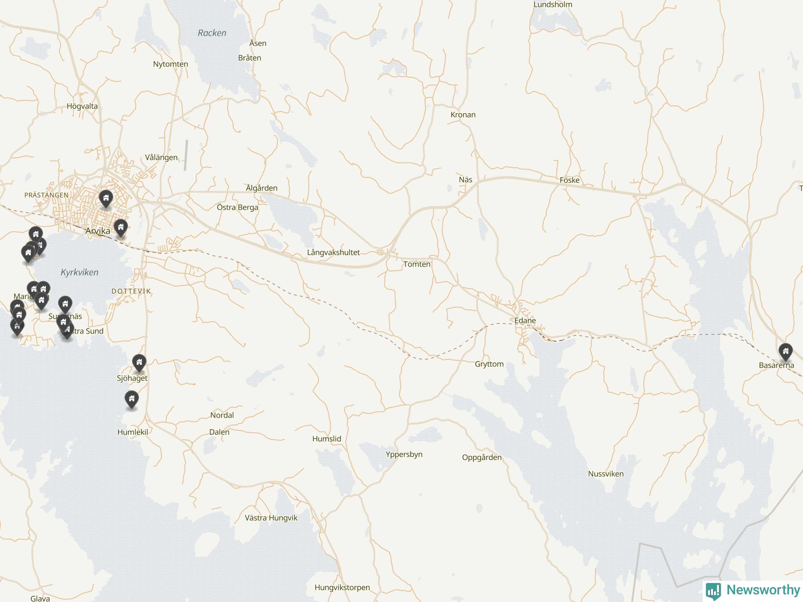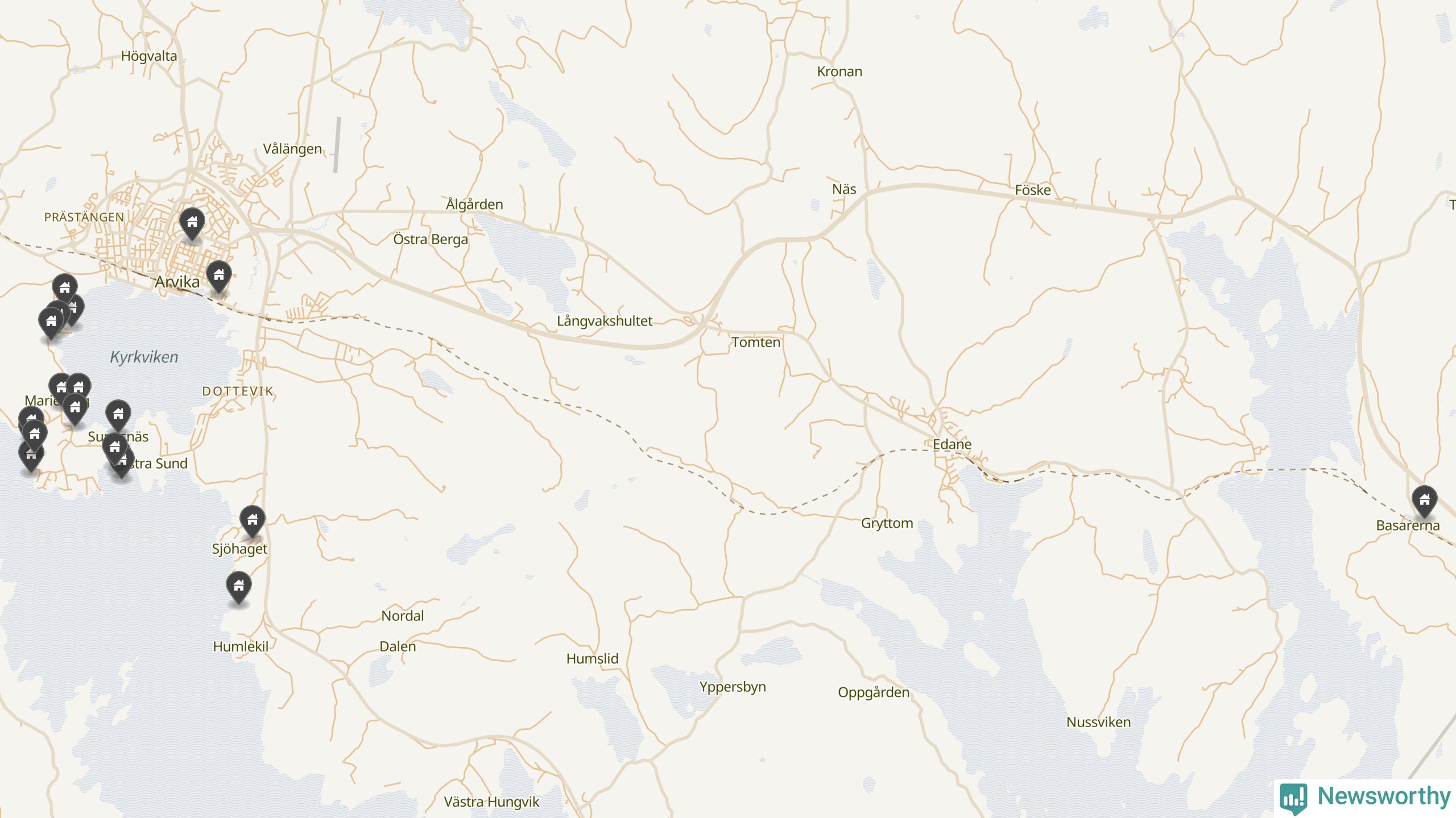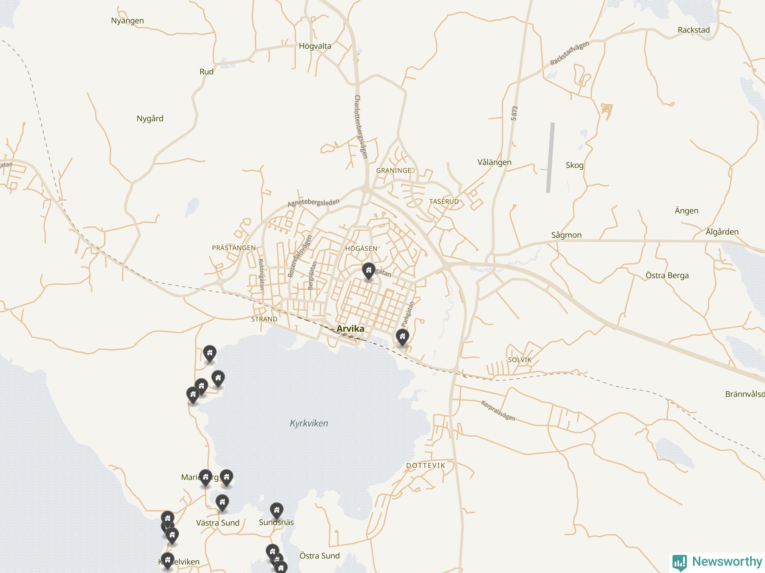 57 | Arvika Västra Sund 2:118 | Siri Rülckers Väg 4 | 3,8 miljoner | 1 177 m² | Visa |
