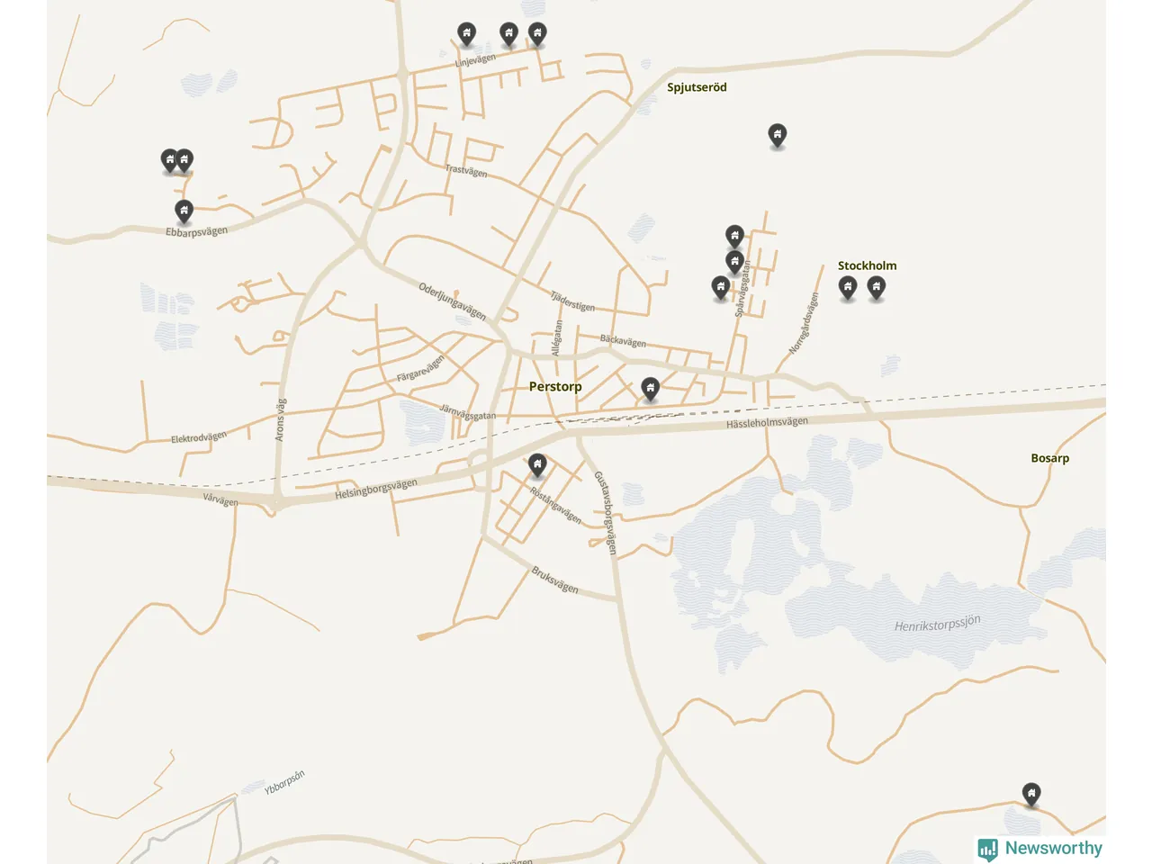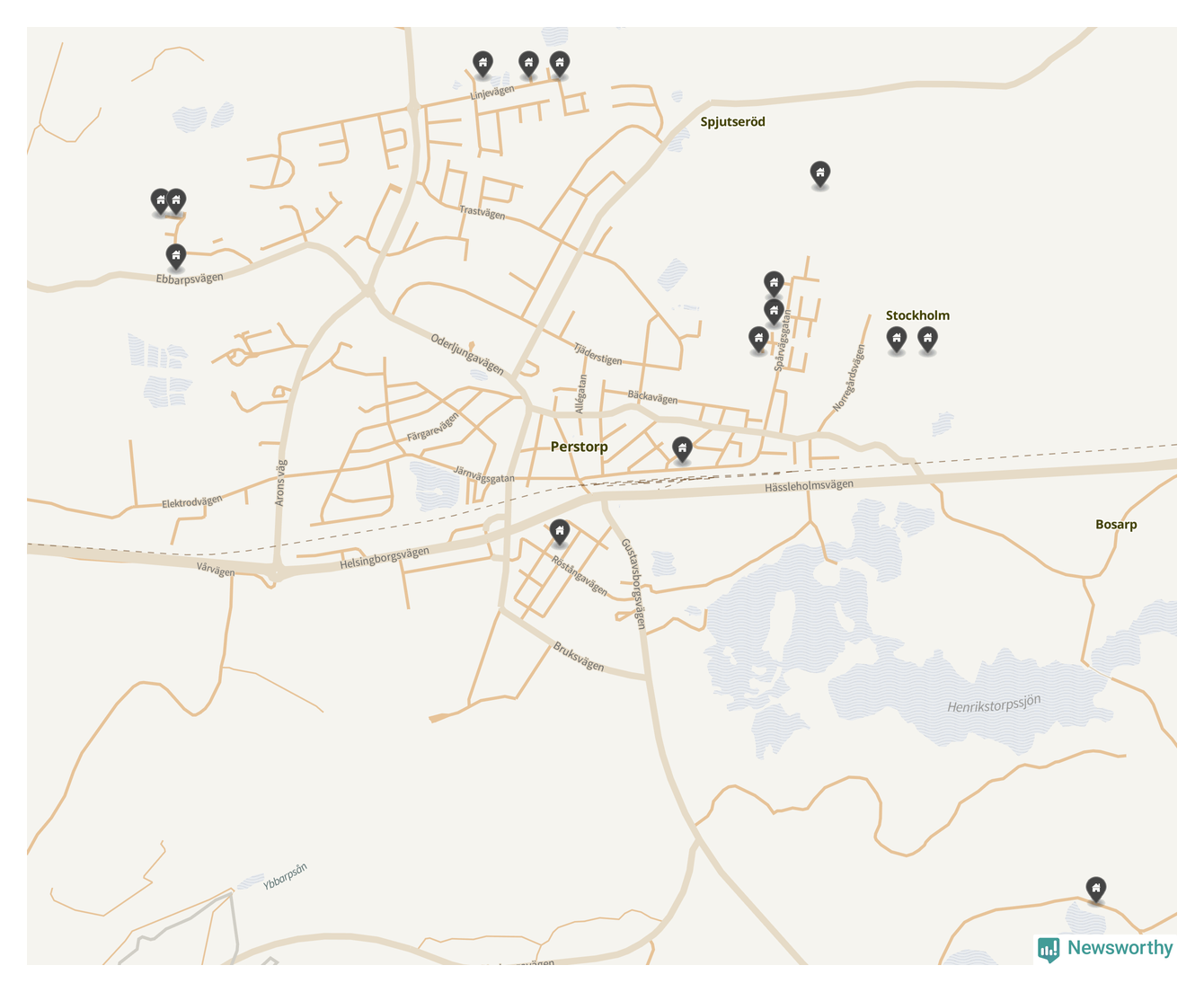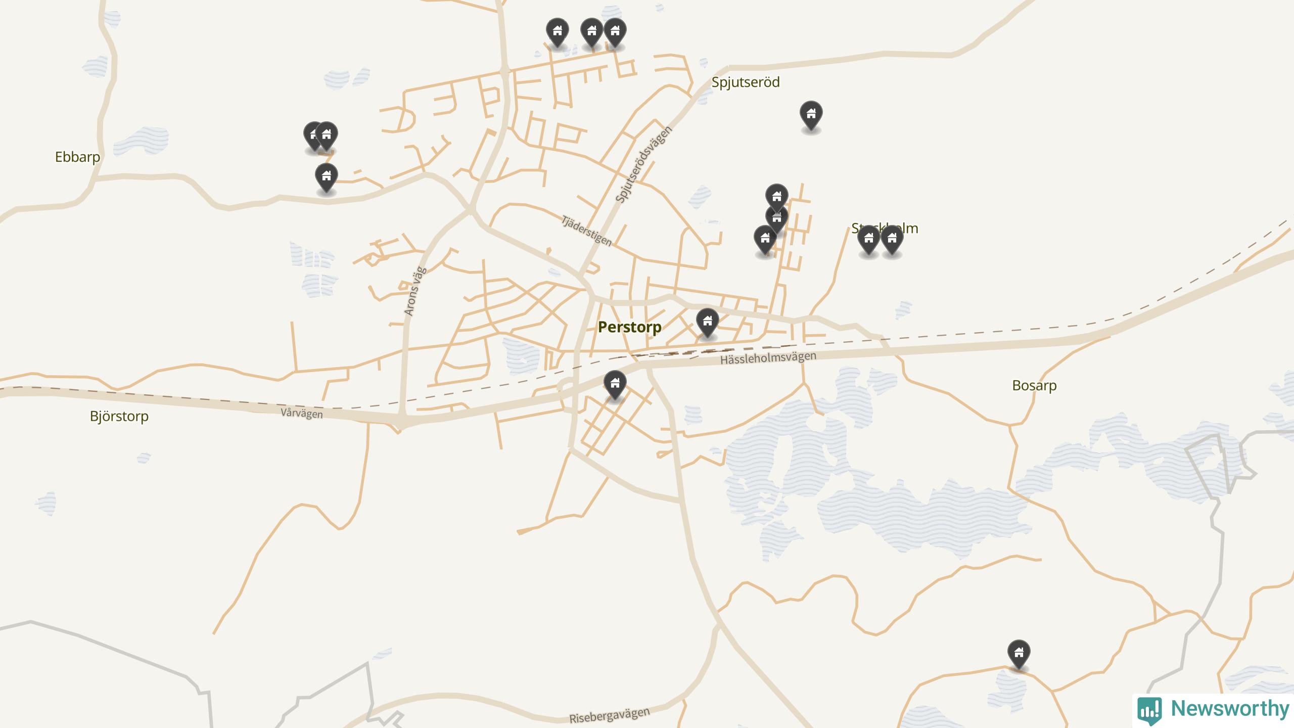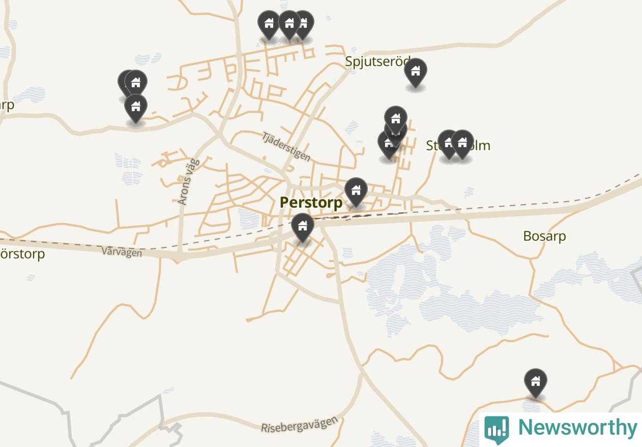De 100 högst taxerade småhusfastigheterna i Perstorp har ett snittvärde på 2,2 miljoner kronor, vilket är omkring fyra miljoner lägre än snittet för alla kommuners 100 högst taxerade småhus. Det visar Newsworthys genomgång av kommunernas högst taxerade småhusfastigheter, som sammanställts med hjälp av data från The intelligence company.