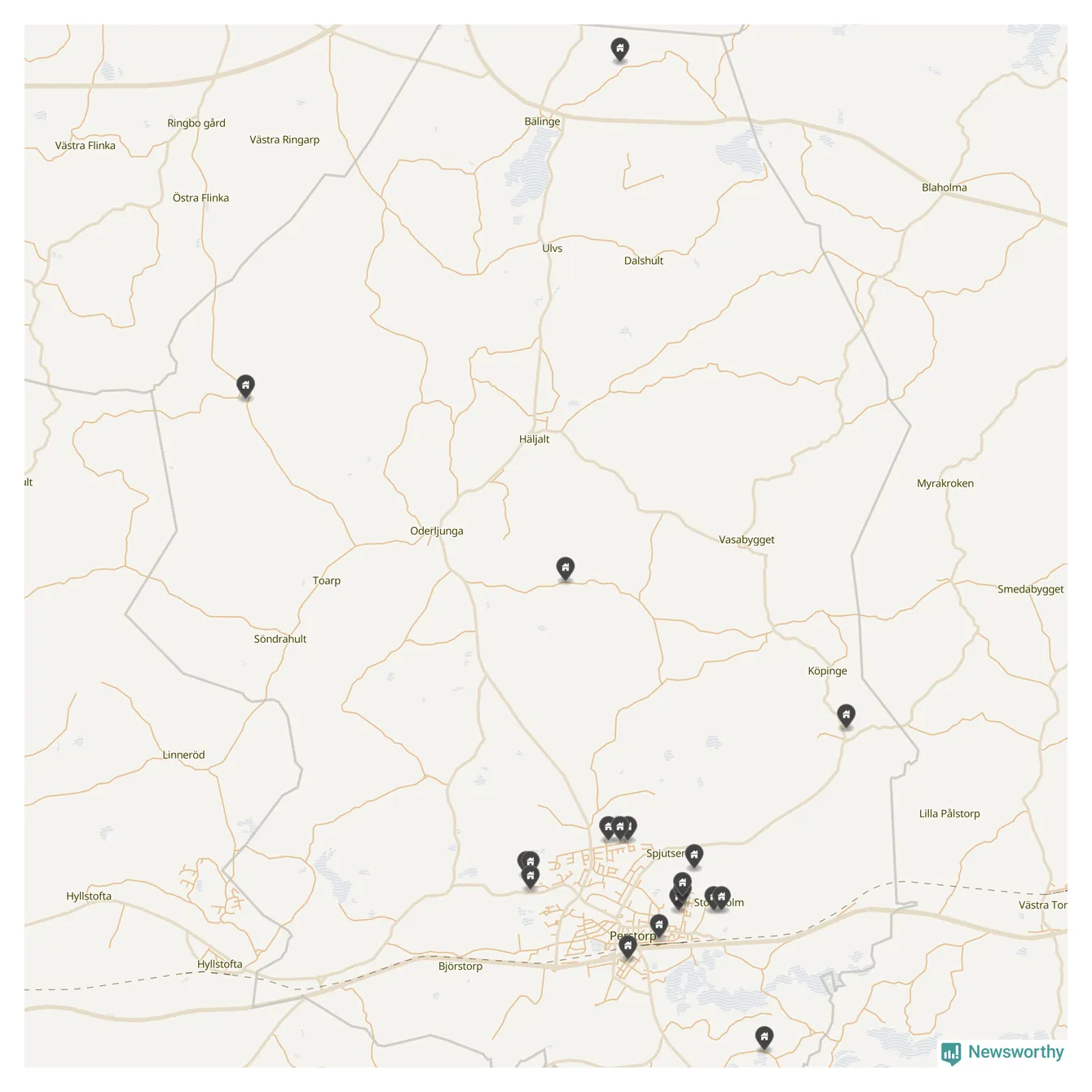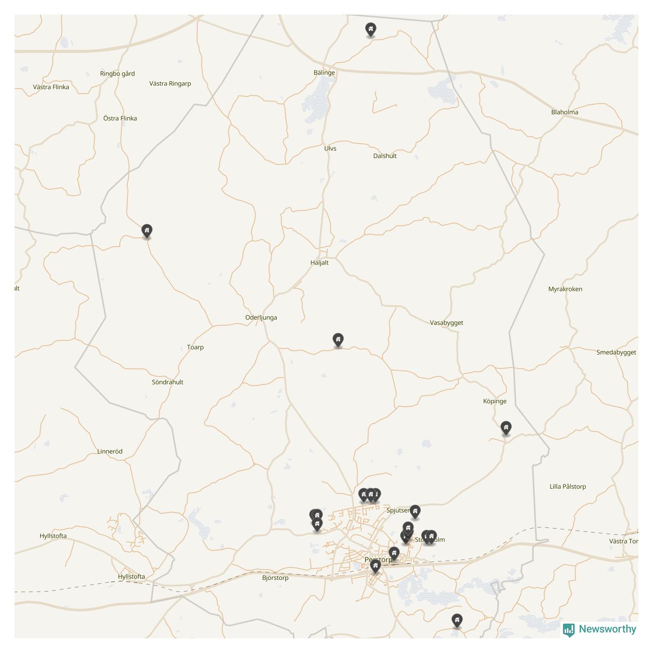 | 52 | Perstorp Oderljunga 5:98 | Oderljunga Krattvägen 6 | 2,1 miljoner | 925 m² | Visa |