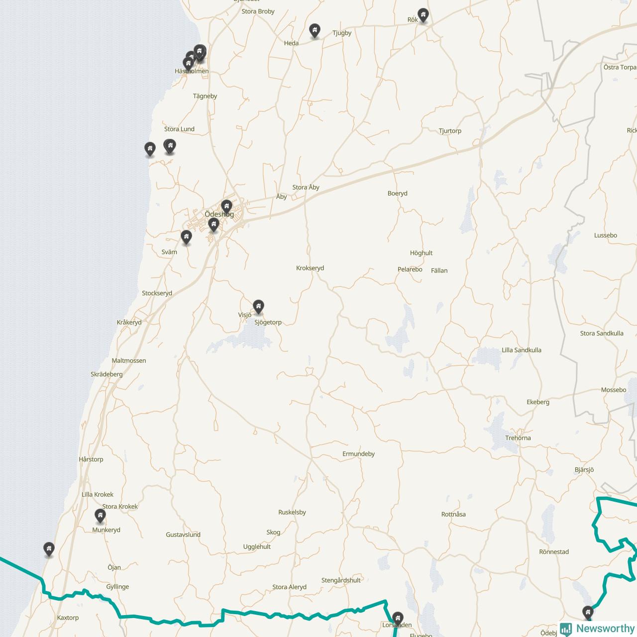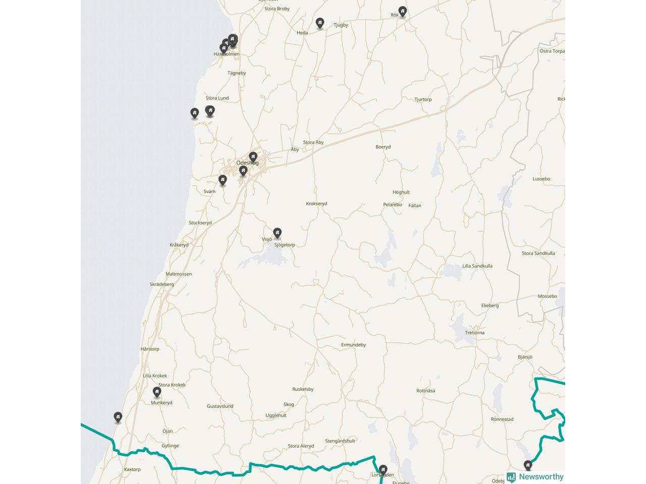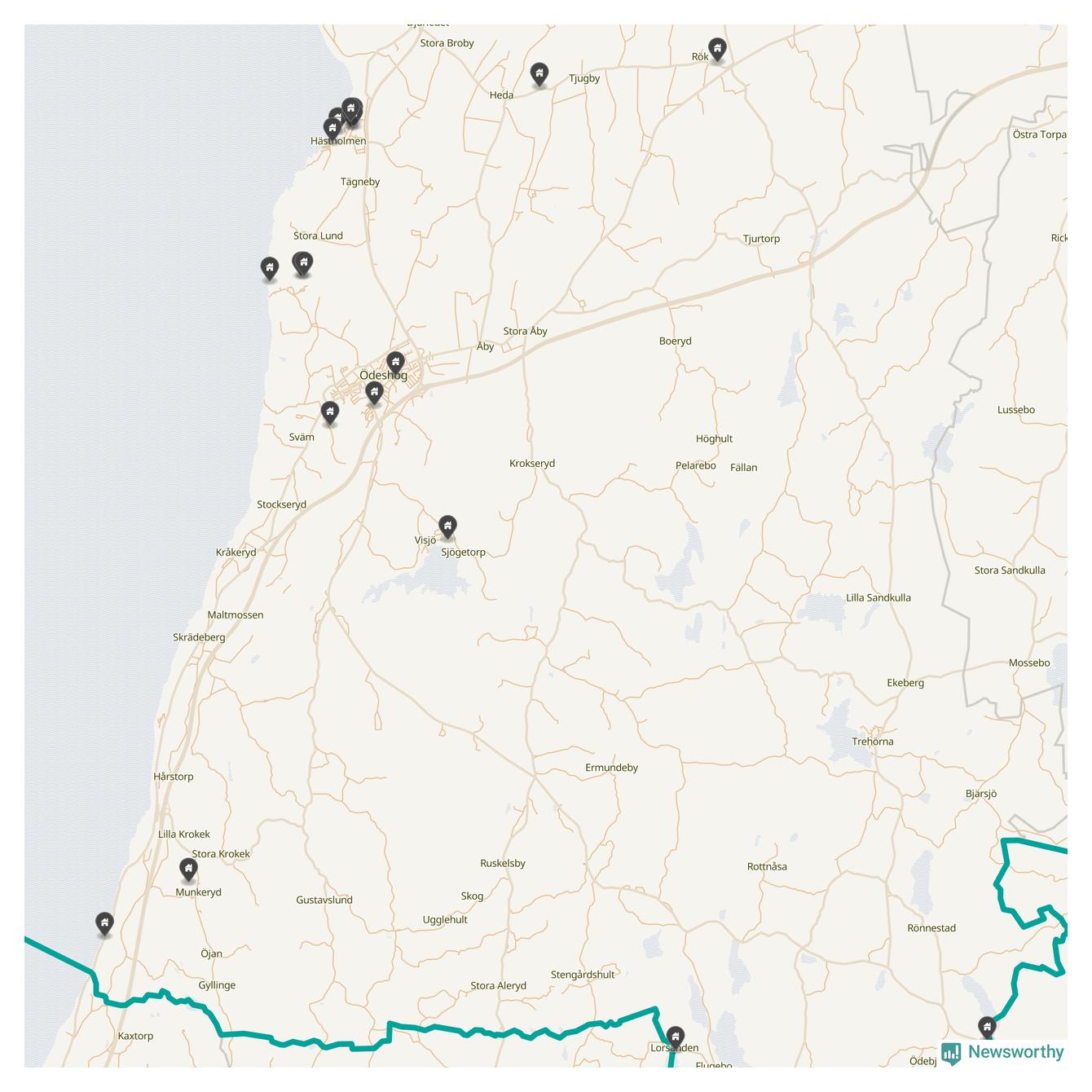 De 100 högst taxerade småhusfastigheterna i Ödeshög har ett snittvärde på 2,3 miljoner kronor, vilket är omkring fyra miljoner lägre än snittet för alla kommuners 100 högst taxerade småhus. Det visar Newsworthys genomgång av kommunernas högst taxerade småhusfastigheter, som sammanställts med hjälp av data från The intelligence company.