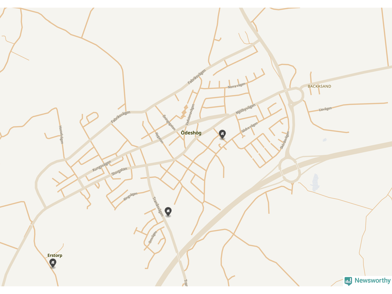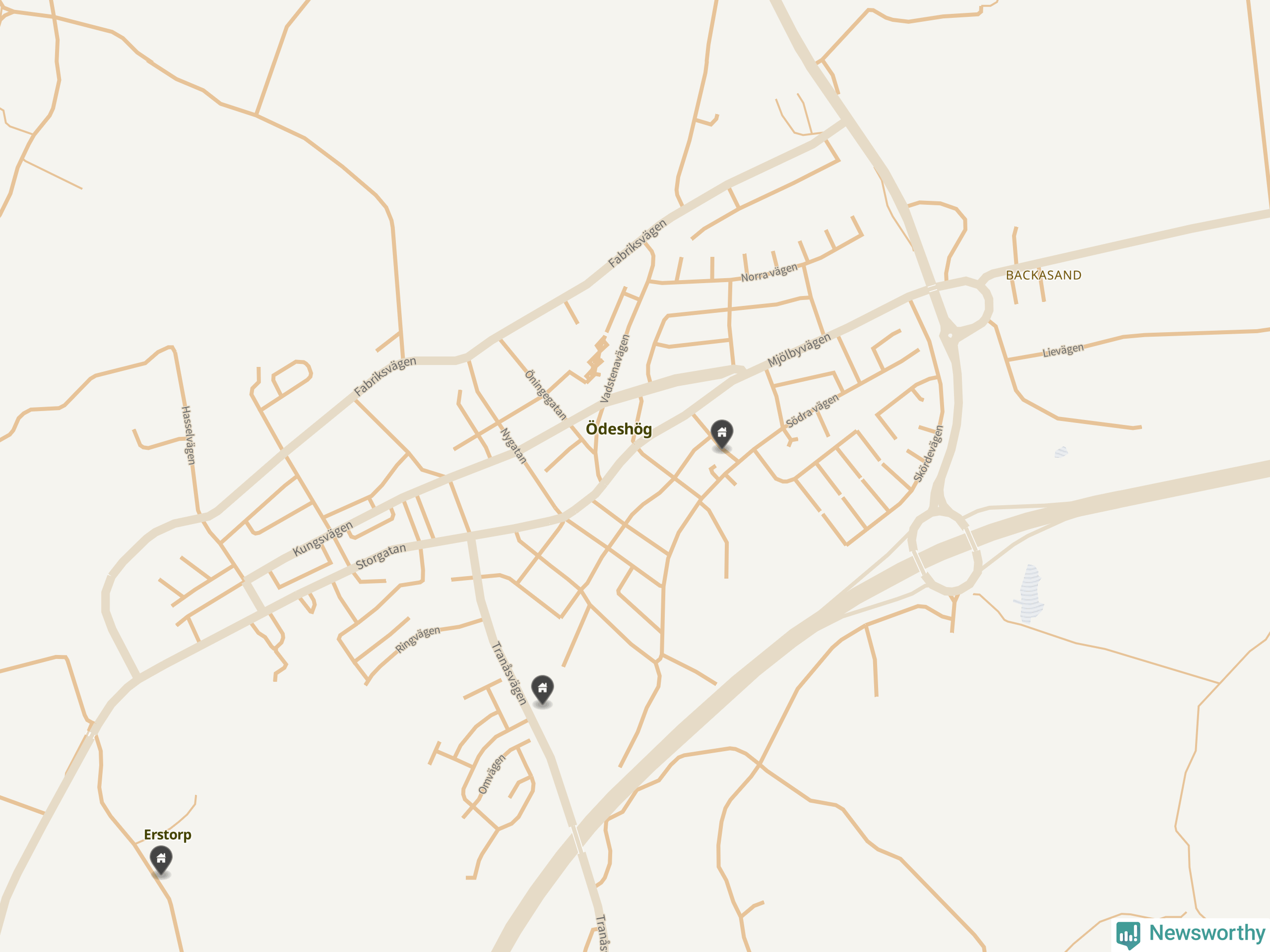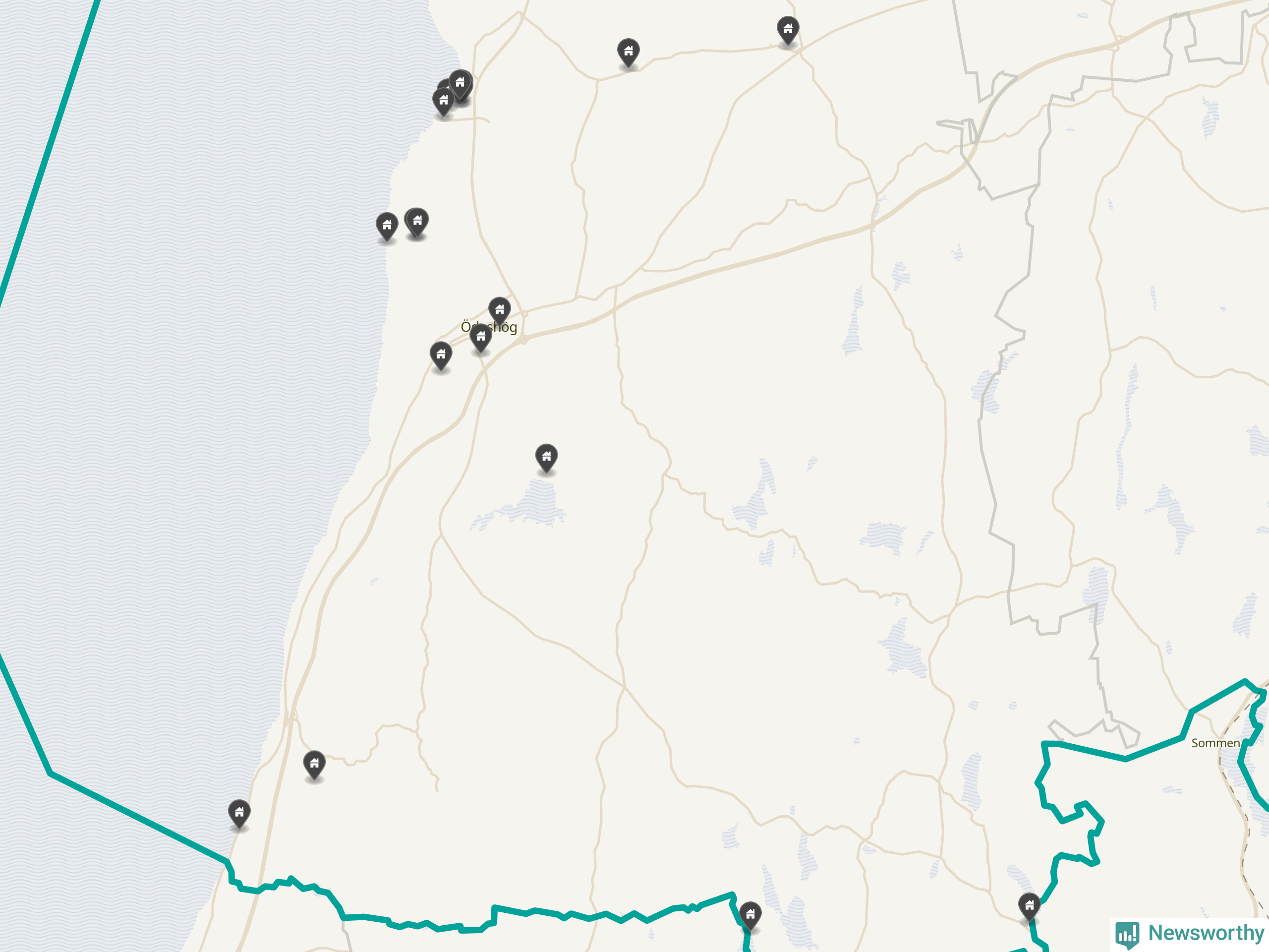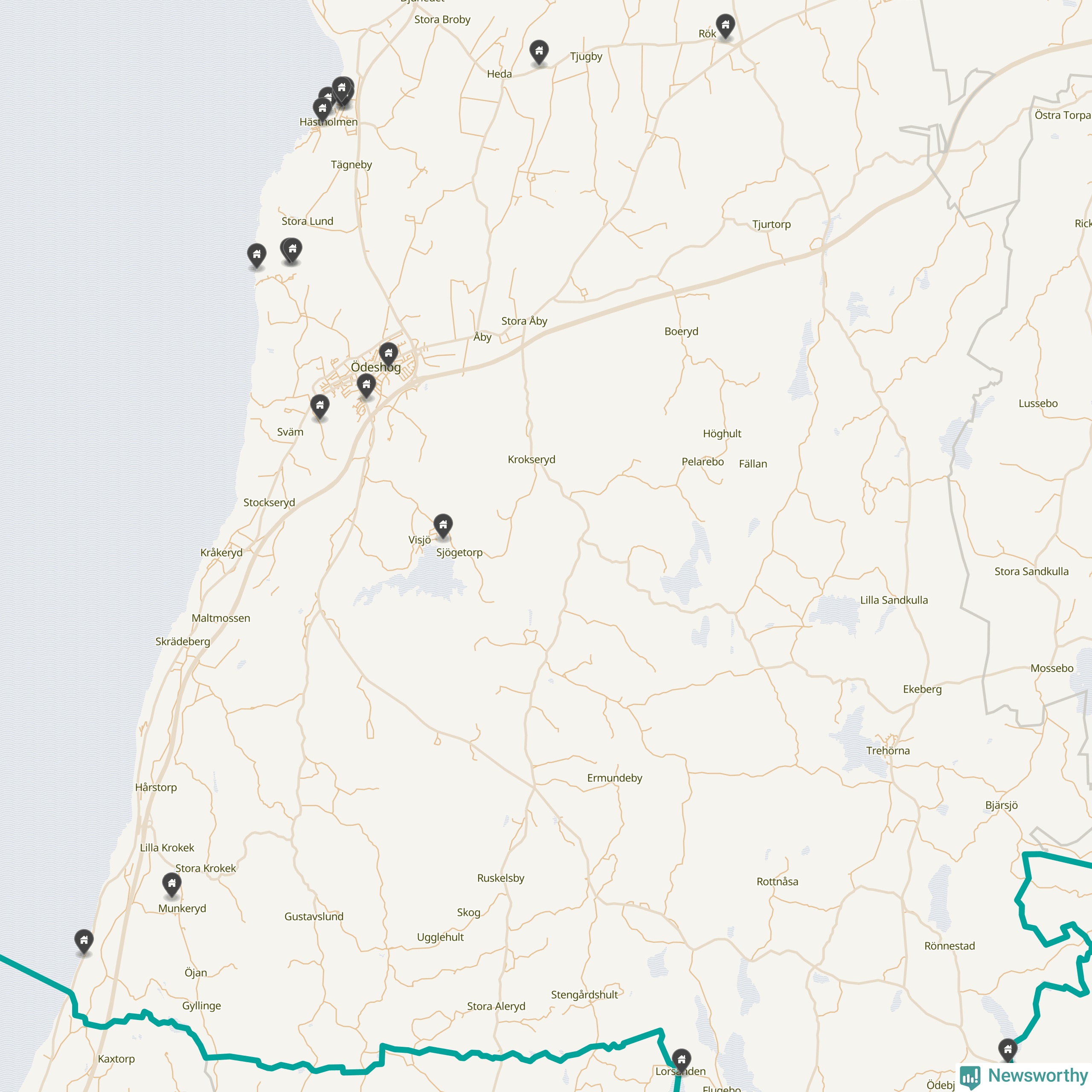 De 100 högst taxerade småhusfastigheterna i Ödeshög har ett snittvärde på 2,3 miljoner kronor, vilket är omkring fyra miljoner lägre än snittet för alla kommuners 100 högst taxerade småhus. Det visar Newsworthys genomgång av kommunernas högst taxerade småhusfastigheter, som sammanställts med hjälp av data från The intelligence company.