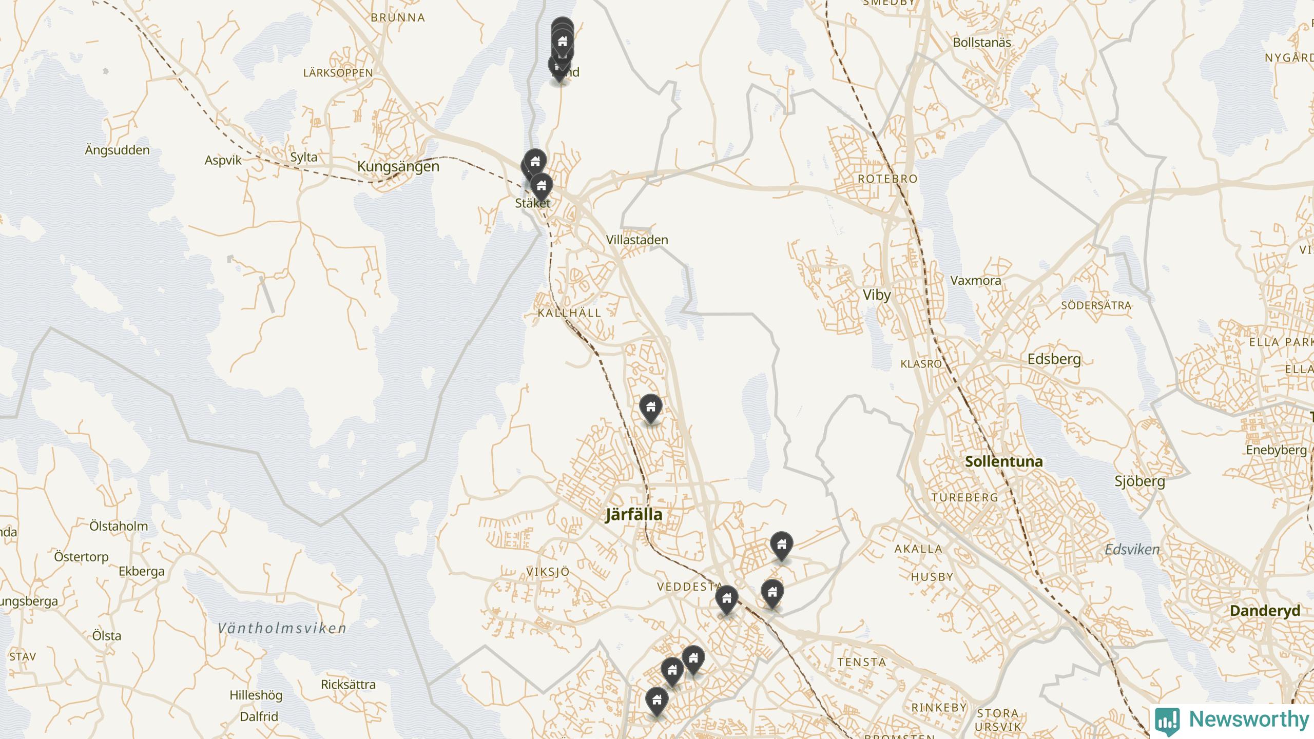 De 100 högst taxerade småhusfastigheterna i Järfälla har ett snittvärde på 9,3 miljoner kronor, vilket är omkring tre miljoner högre än snittet för alla kommuners 100 högst taxerade småhus. Det visar Newsworthys genomgång av kommunernas högst taxerade småhusfastigheter, som sammanställts med hjälp av data från The intelligence company.