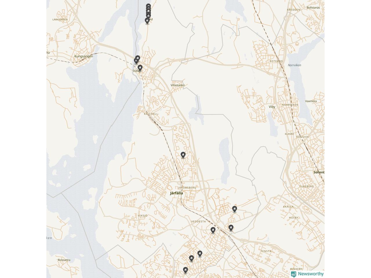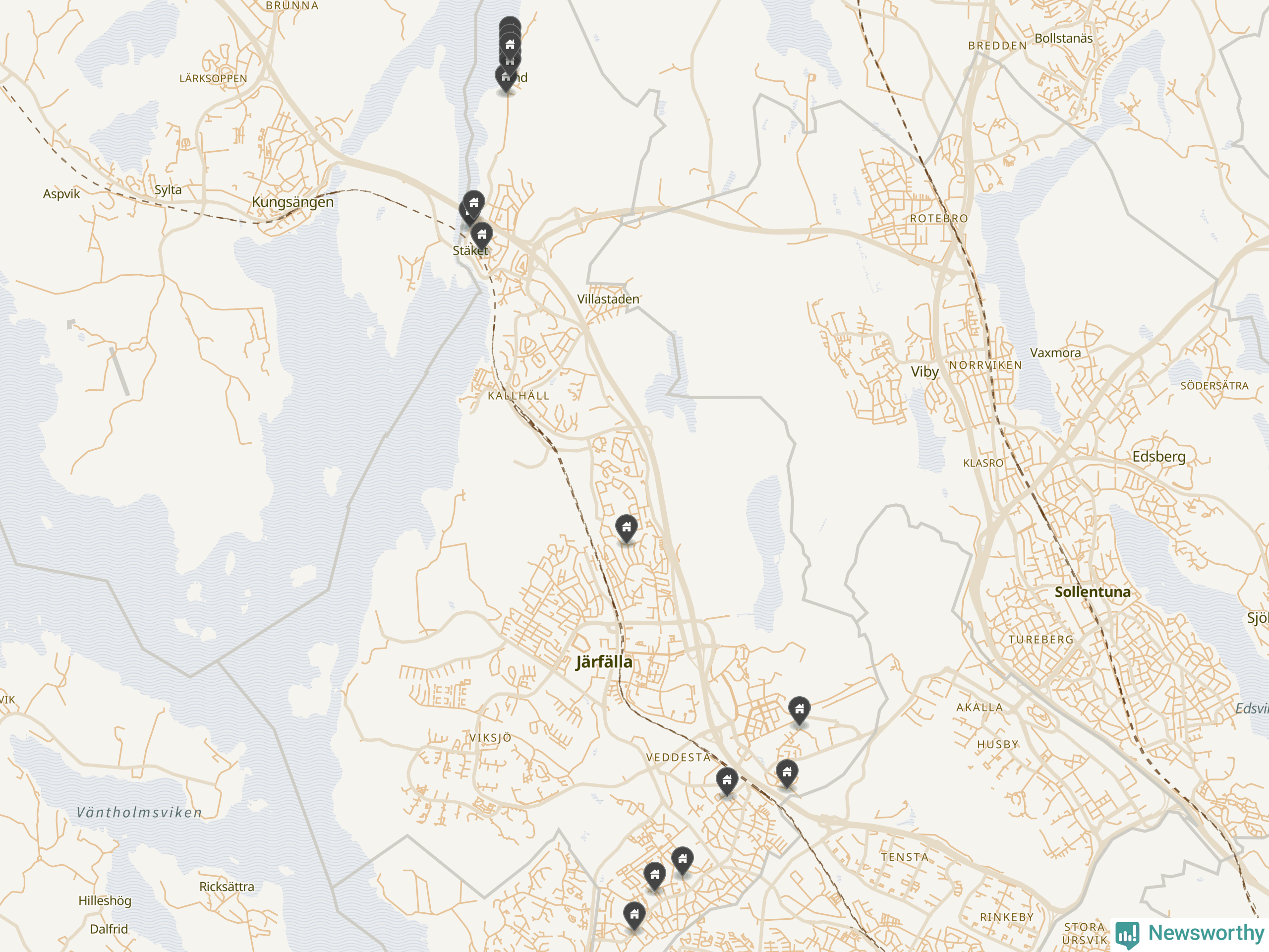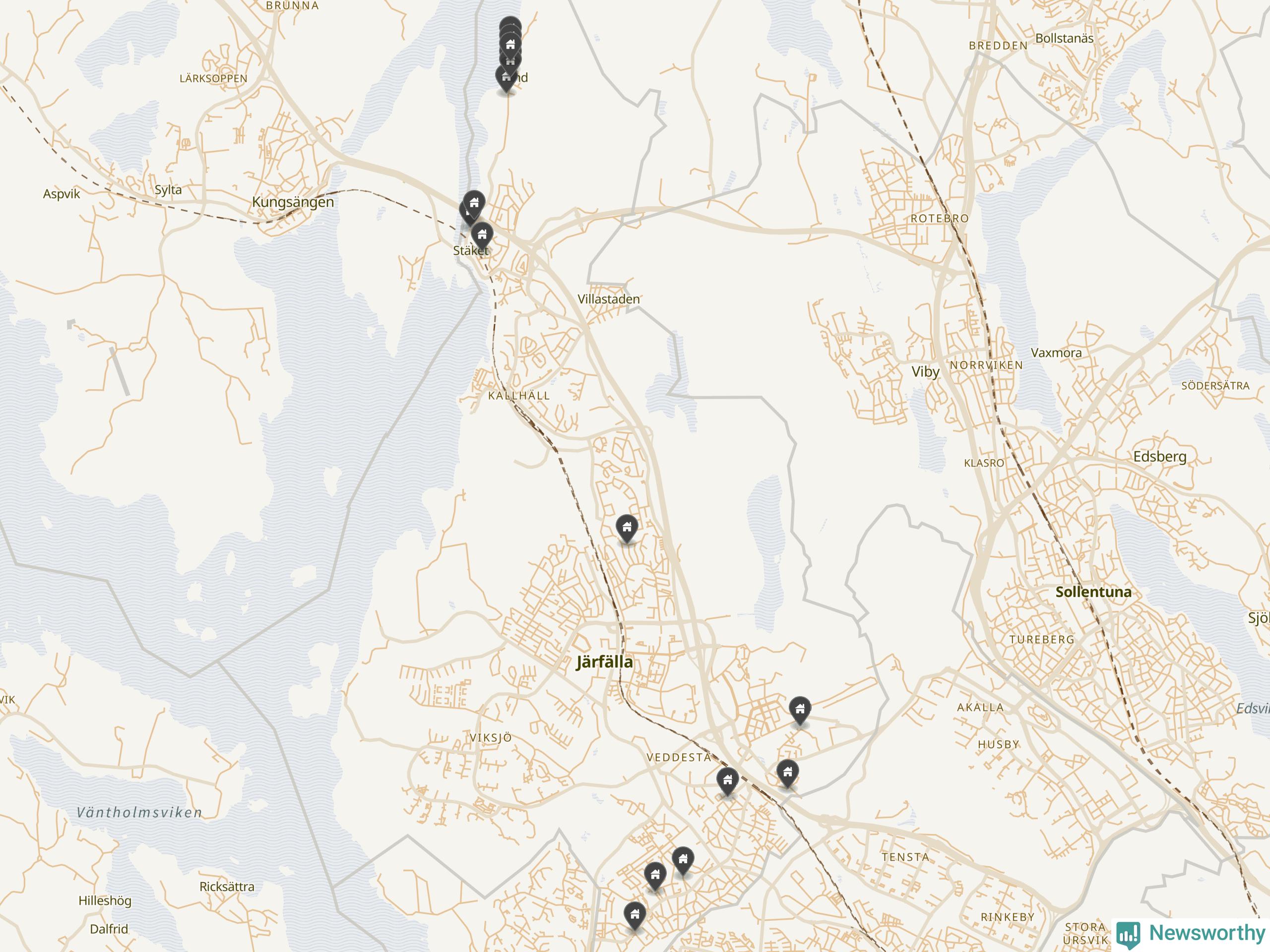 12 | Järfälla Jakobsberg 2:1133 | Fuxvägen 17 m.fl. | 11 miljoner | 1 238 m² | Visa |